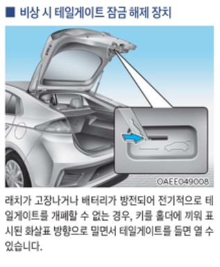 2. 뒷 트렁크 열림 버튼: 차박 키트 업체에서 알려주신 방법으로 차 트렁크 문을 열 수 있는 버튼이나 방법이 차마다 다르긴 하지만 비상상황을 대비해서 반드시 있다고 한다. 그래서 차 문이 모두 닫혀있을 때 필요에 따라 옆문으로 굳이 나오지 않더라도 트렁크 문을 열 수 있는 방법이 있다고 하니 차박을 떠나기 전 미리 확인해 알아두면 유용할 것 같다. 버튼이 따로 있으면 편하지만, 베뉴의 경우 트렁크 열림 버튼이 따로 없었다. 비상 탈출 장치는 2002년부터 설치 의무화가 되어 레버를 당기거나 밀면 트렁크가 열리도록 되어 있어 차종에 따라 방법은 다르겠지만 일단 모든 차량에 구비되어 있다고 한다. 어두운 트렁크 안에서도 찾을 수 있도록 야광으로 되어 있다고 하니 차박을 떠나기 전, 혹은 비상상황을 대비해 한번쯤 위치를 확인해 두자. 베뉴의 경우, 스마트키 열쇠로 홀더에 넣어 방향대로 밀면 트렁크 문이 열린다.
