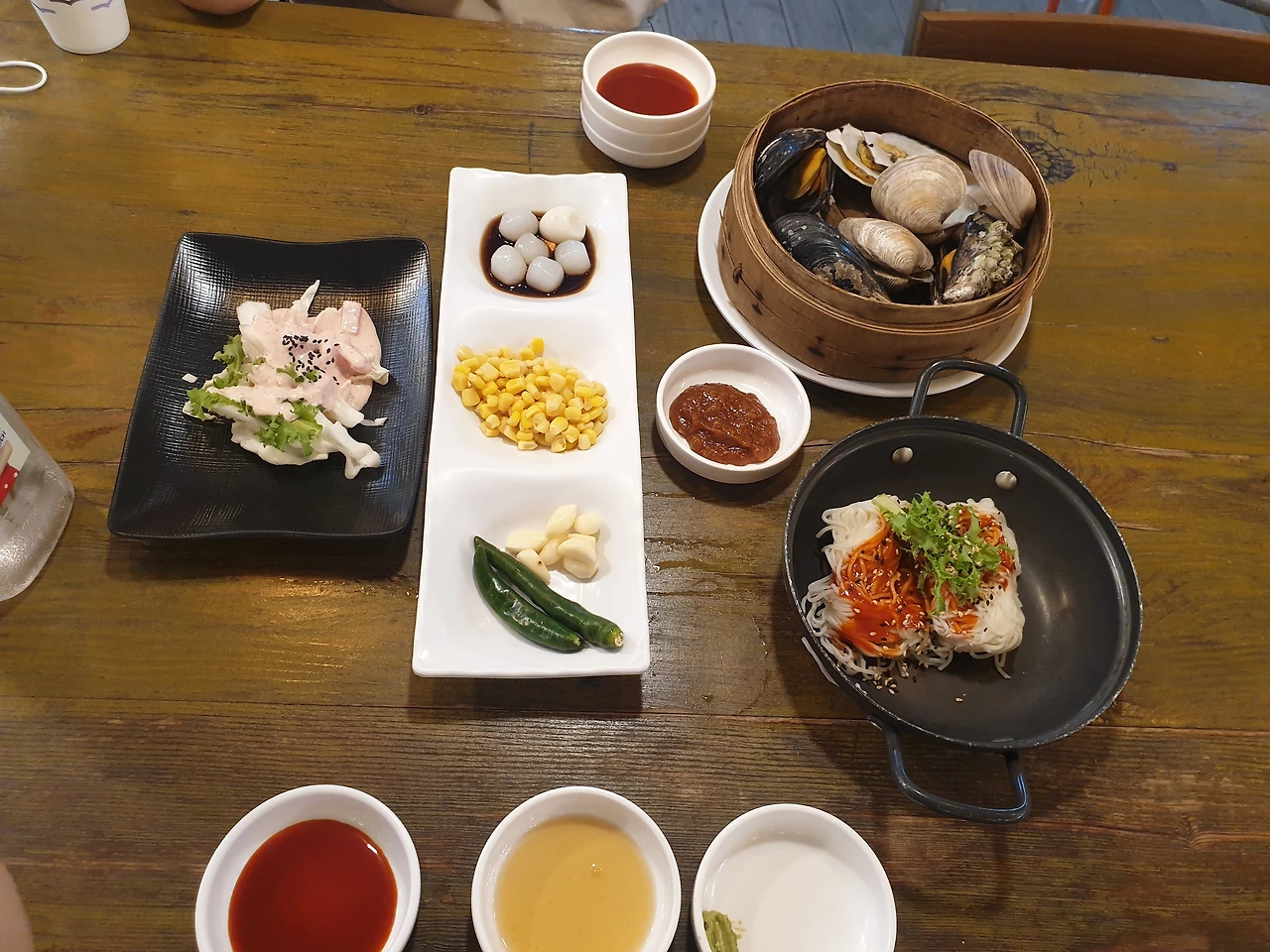 메인은 역시 얼큰한 해물 라면! 조개찜과 전복회, 산낙지는 그저 거들 뿐!