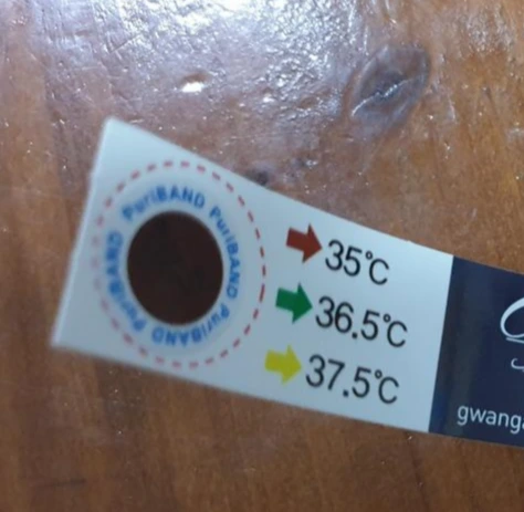 실시간 체온을 색깔로 보여주는 체험 동안 착용하는 팔찌.