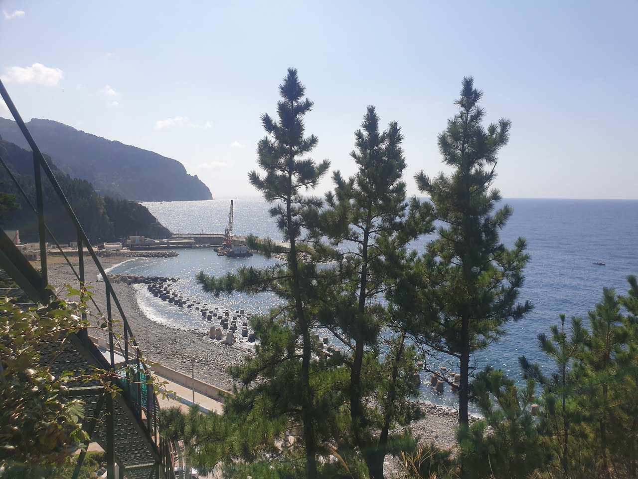 한식조리사 자격증을 보유하고, 학교에서 영양 선생님을 맡고 있는 뒤태부터 요리 만렙 주부의 포스마저 느껴지던 동생이 콩나물국 밥상으로 아침부터 감동을 선사했다. 늘 인스턴트 조리식, 라면 혹은 공복으로 맞이하던 여행지 아침을 햇반도 아닌 밥솥에 갓지어 고슬한 밥과 얼큰한 콩나물 해장국이 어우러진 손수 차려진 밥상이라니! 든든해진 배를 두드리며 우리는 오후 독도 일정 전 오전 일정을 꽉 채우기 위해 숙소 가까운 곳을 돌아보기 위해 길을 나선다.