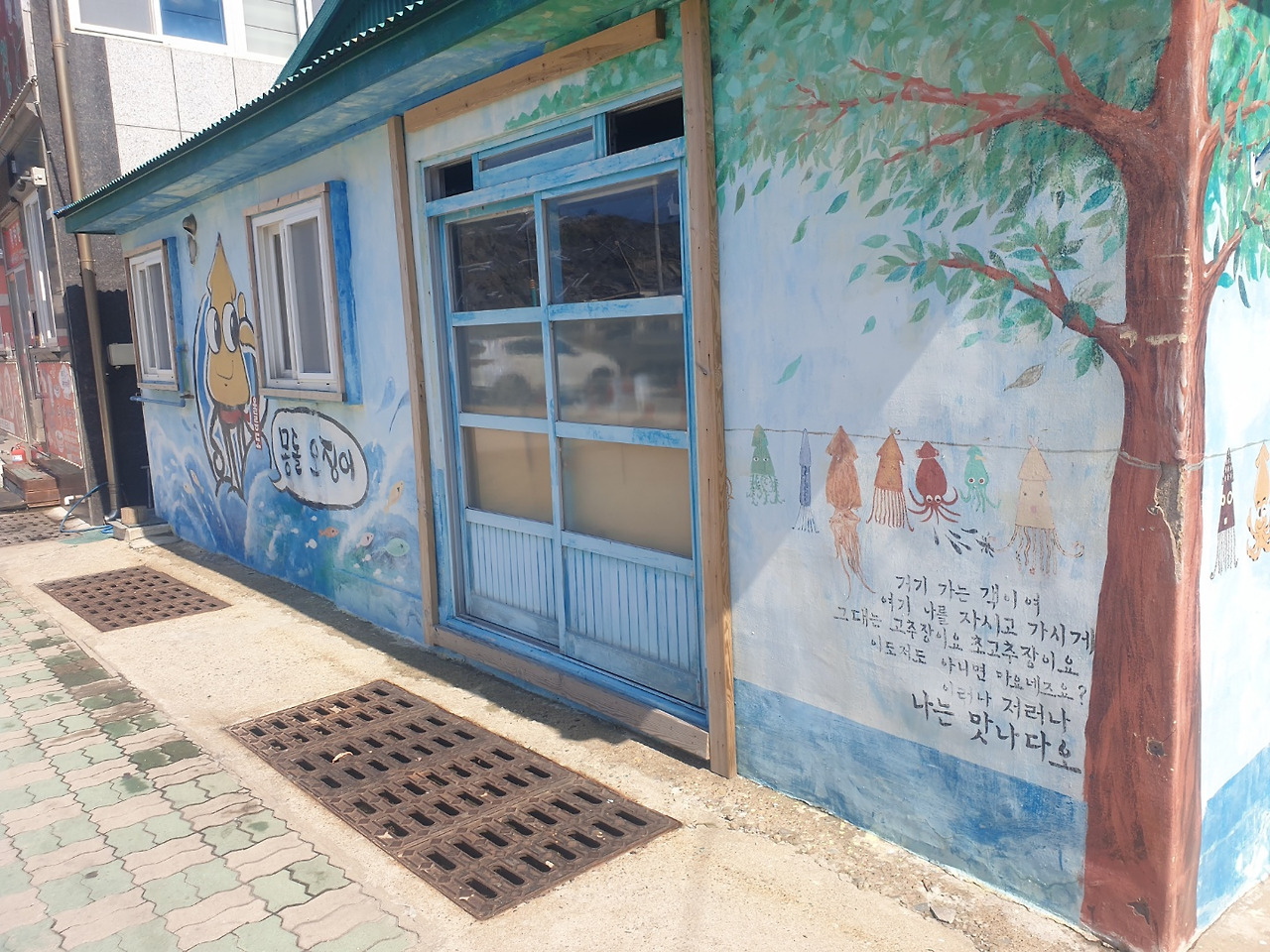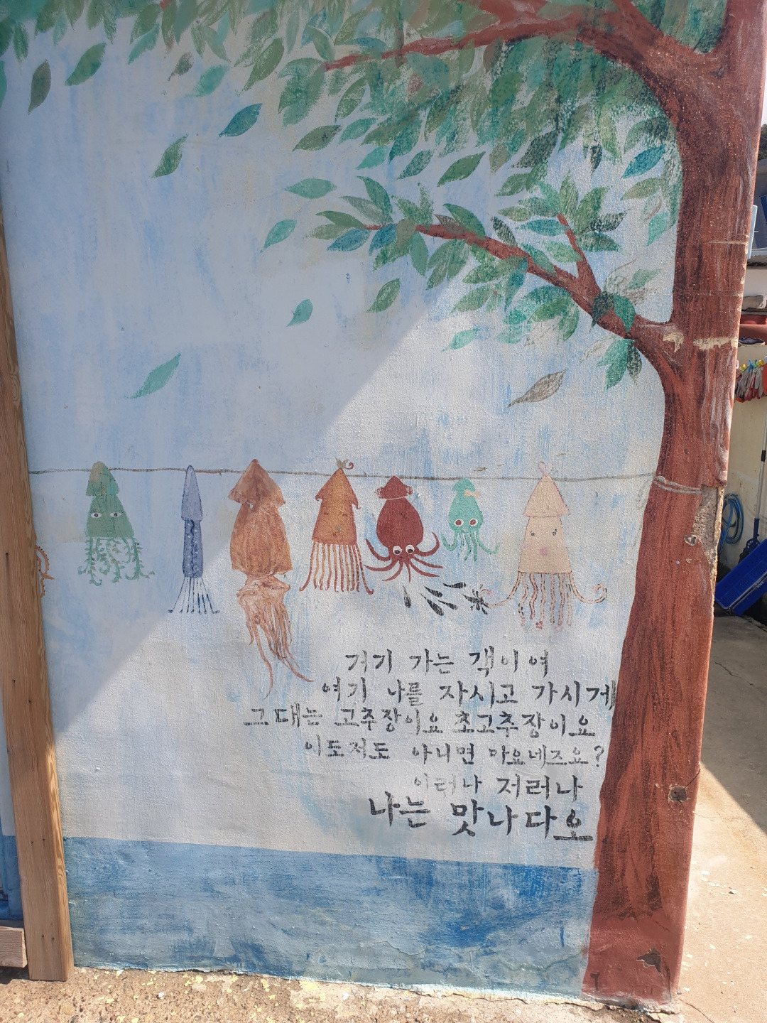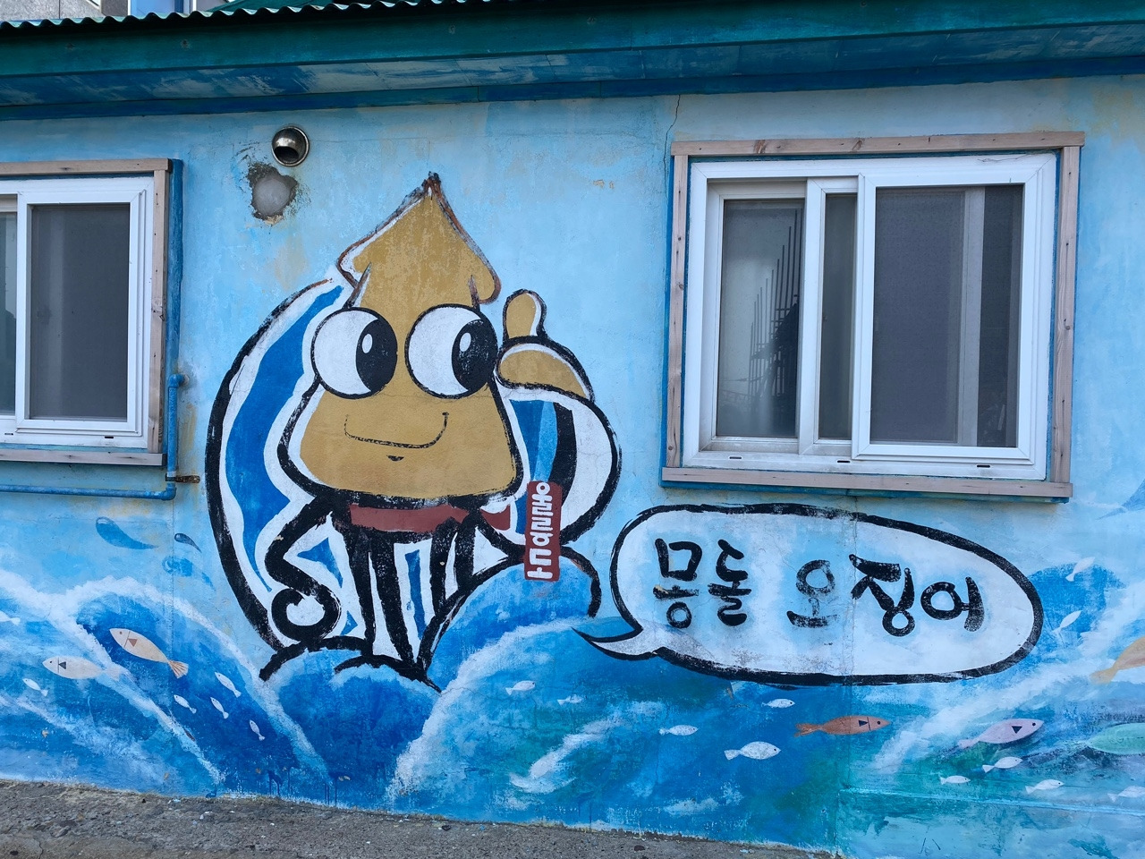 대풍감 올라가는 길 만날 수 있는 귀여운 오징어 벽화. 나는 고추장이요!