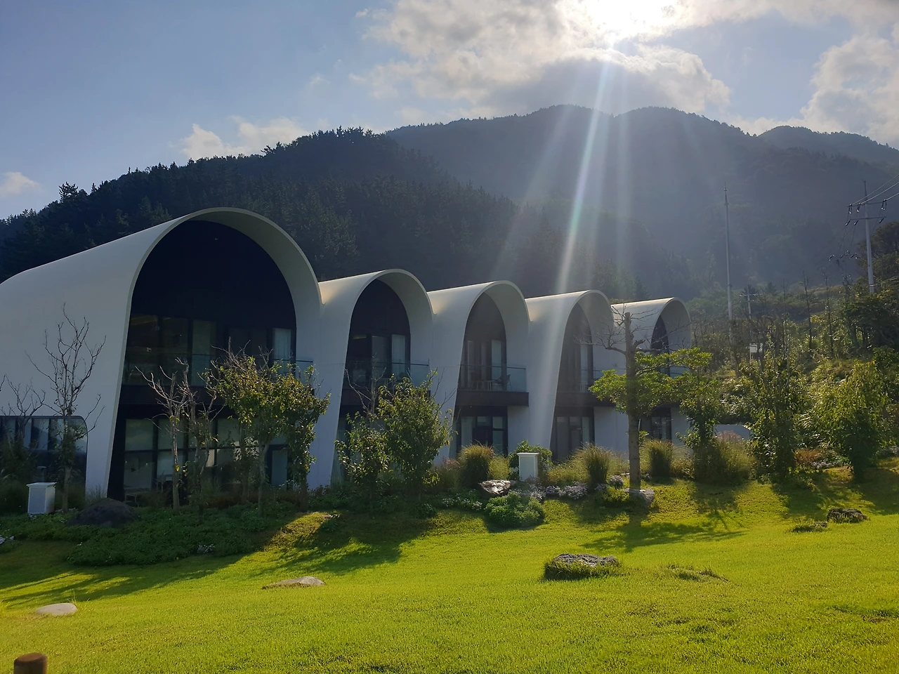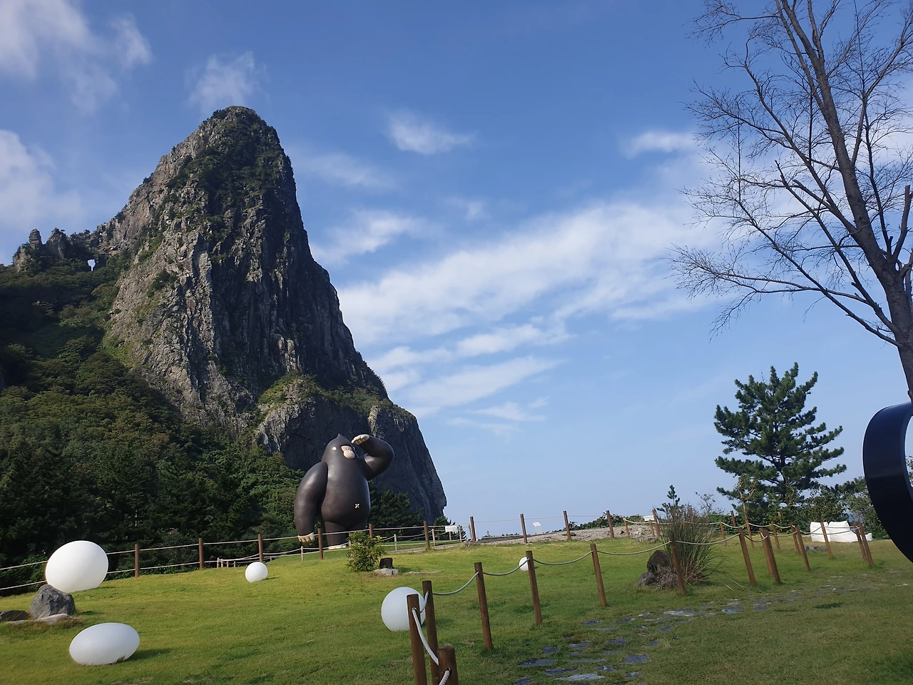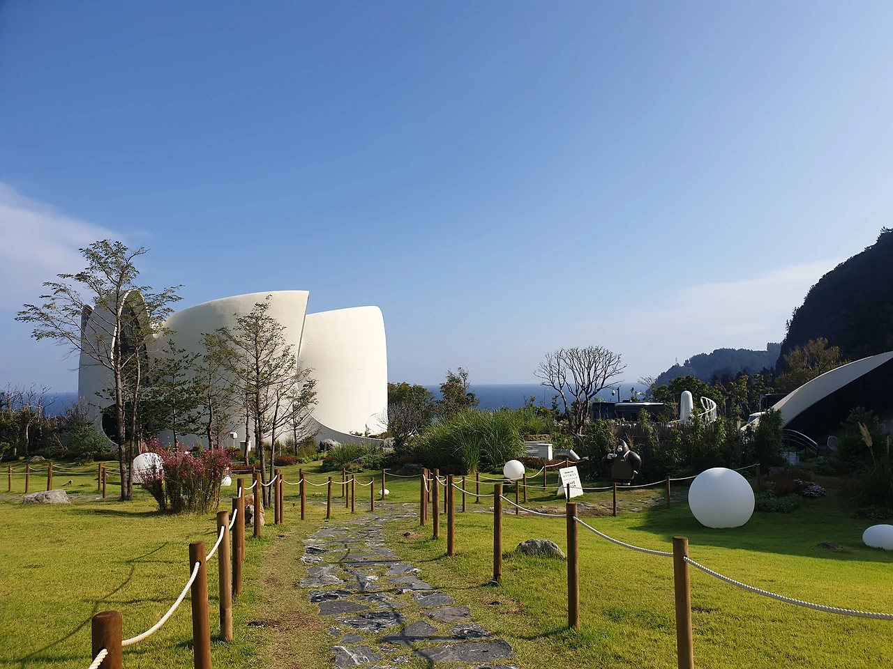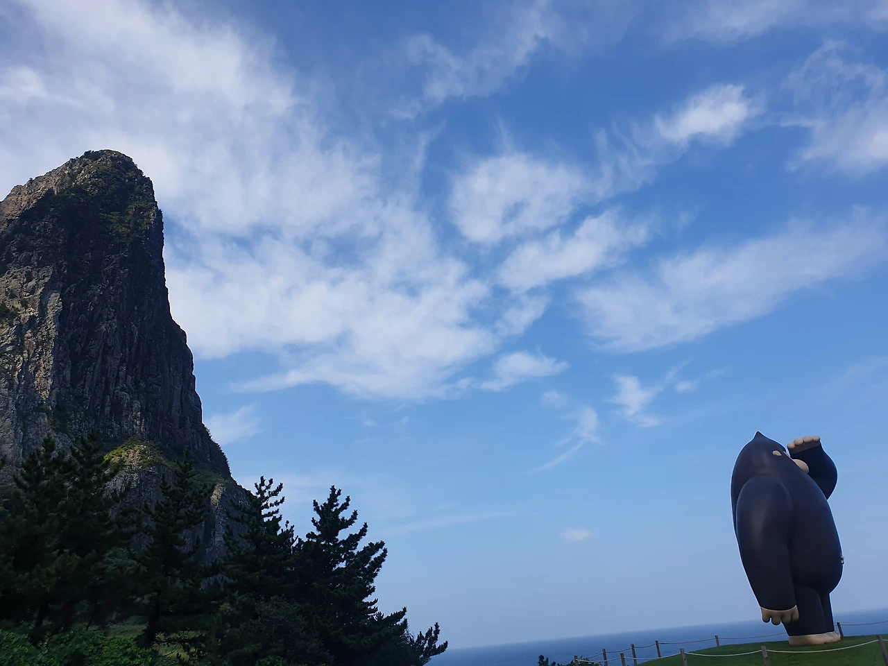 울릉도 '울'에 고릴라 '라'의 일명 카페 울라에서는 마치 제인이 타잔이 아닌 고릴라와 사랑에 빠질 것만 같은 사랑스러운 비주얼의 고릴라와 같은 포즈로 한컷 사진을 찍을 수 있다. 바로 옆은 건축상을 수상한 멋진 외관에 추산의 기를 받을 수 있다는 1박에 1천만 원 이상을 호가하는 코스모스 리조트가 자리 잡고 있다. '음'을 뜻하는 검은색 링과 '양'을 뜻하는 하얀색 링에서 음양의 조화를 이룰 사진도 찍고, 탁 트인 바다를 바라보고 있는 추산의 멋스러움을 즐기다 보니, 어느새 멀리서부터 사람들이 여럿 몰려오는 게 보여 번잡함을 피해 자리를 이동한다.
