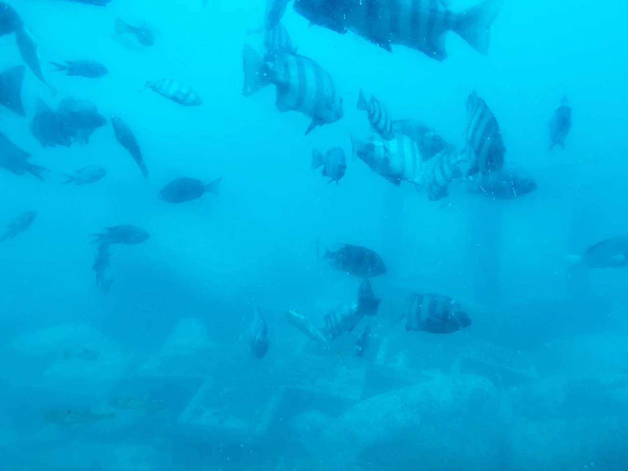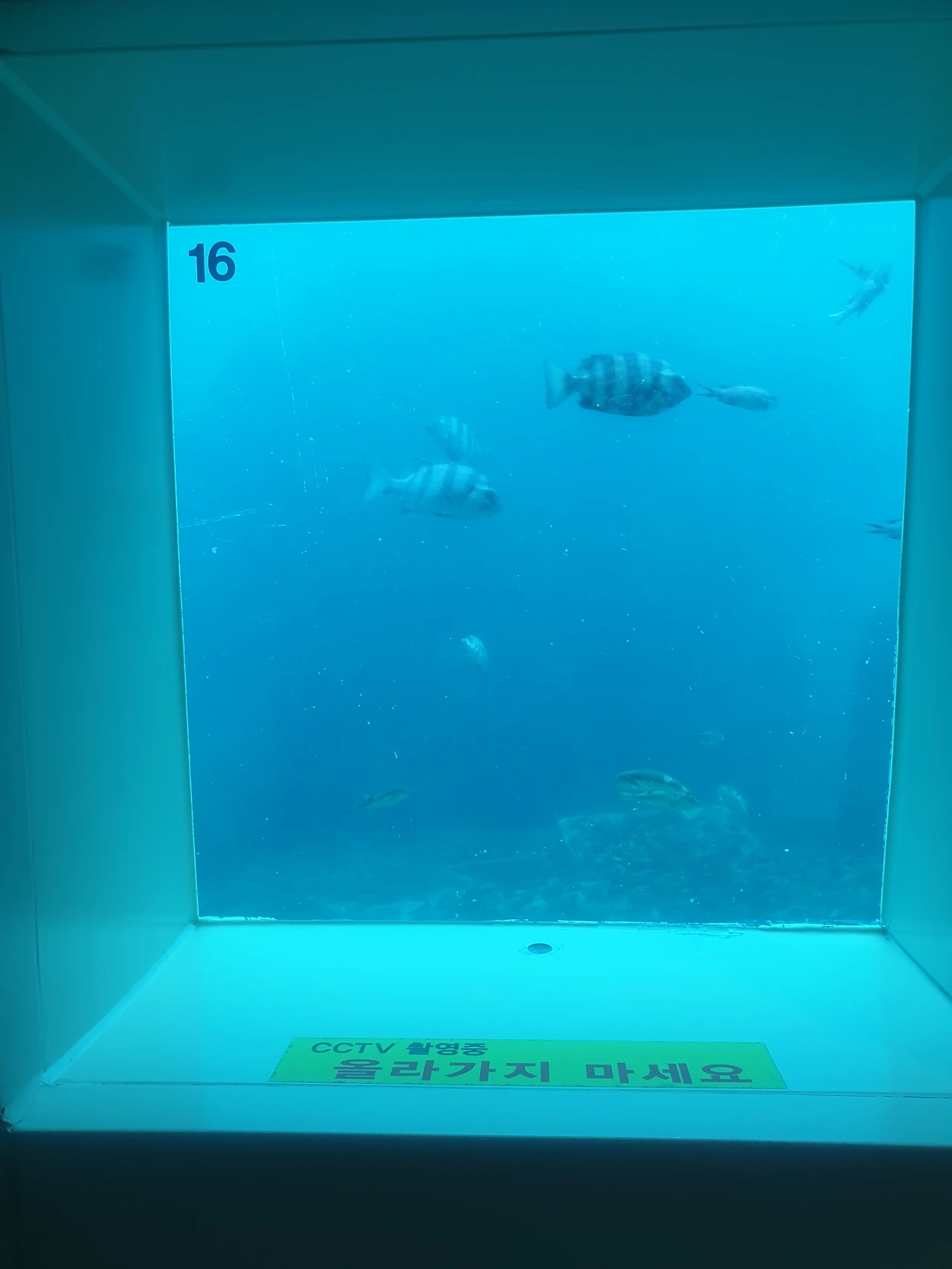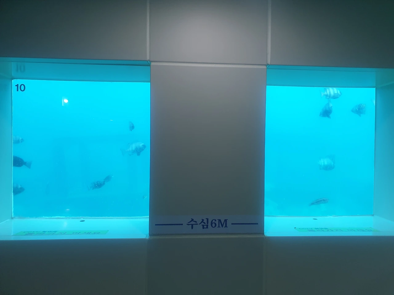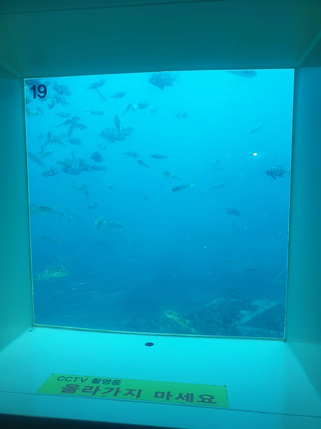 다음 코스는 아침의 일용의 양식을 마련해 주신 기특한 동생이 가고 싶어 하던 천부 해중전망대이다. 국내 유일의 해중 전망대로 수중 6m에서 바닷속을 들여다볼 수 있다. 이곳에서 울릉도 명물 투명 빛깔 오징어 떼도 코 앞 바로 가까이서 함께하는 바다 빛 풍경을 볼 수 있다.