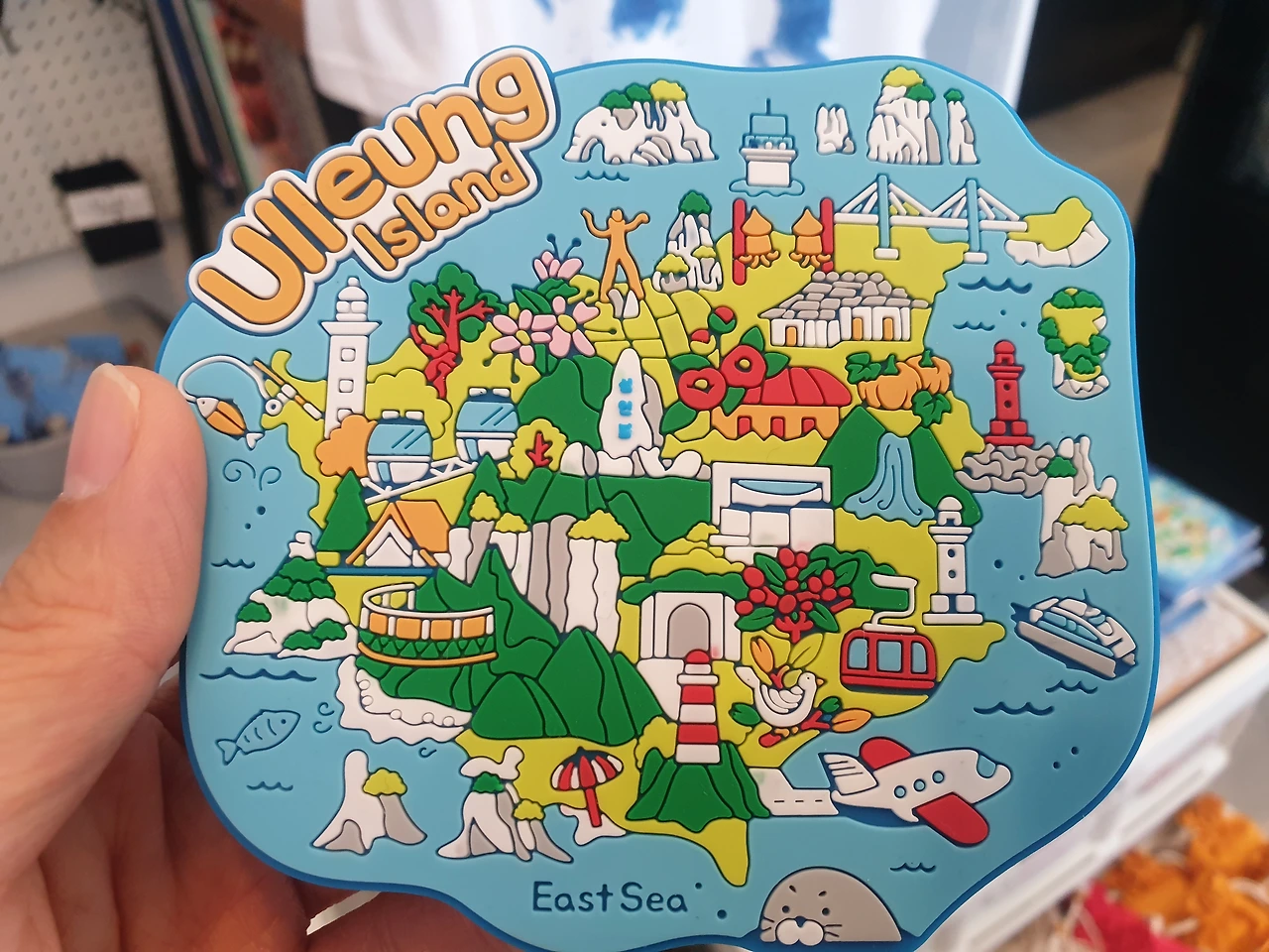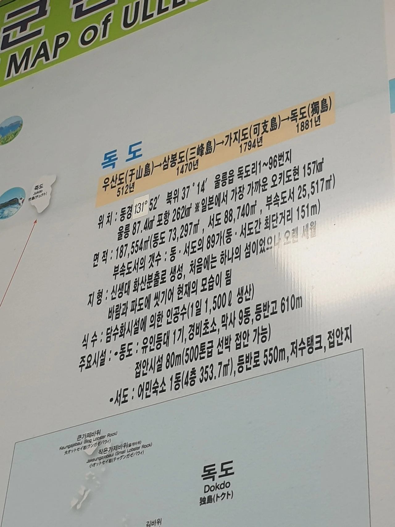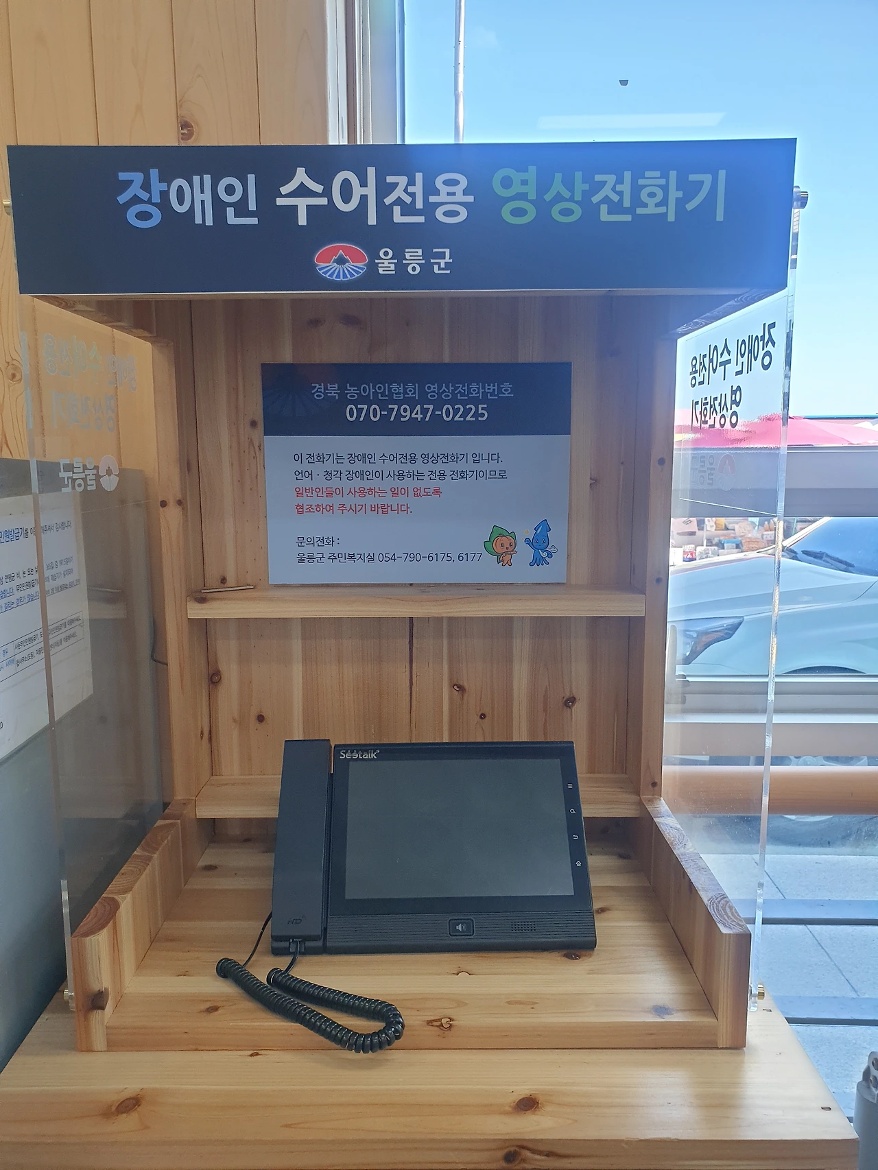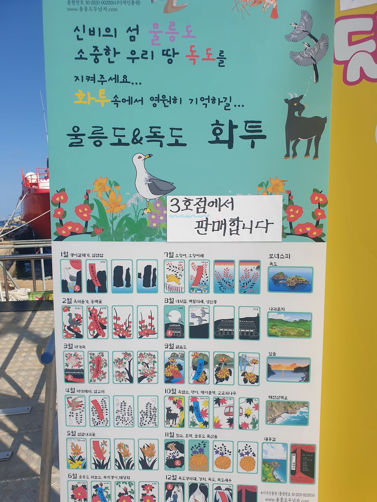 도동항에 있는 관광안내도와 울릉도 & 기념품점에서 독도 화투를 판매하는 모습. 장애인 수어전용 영상 전화기도 신기하다.
