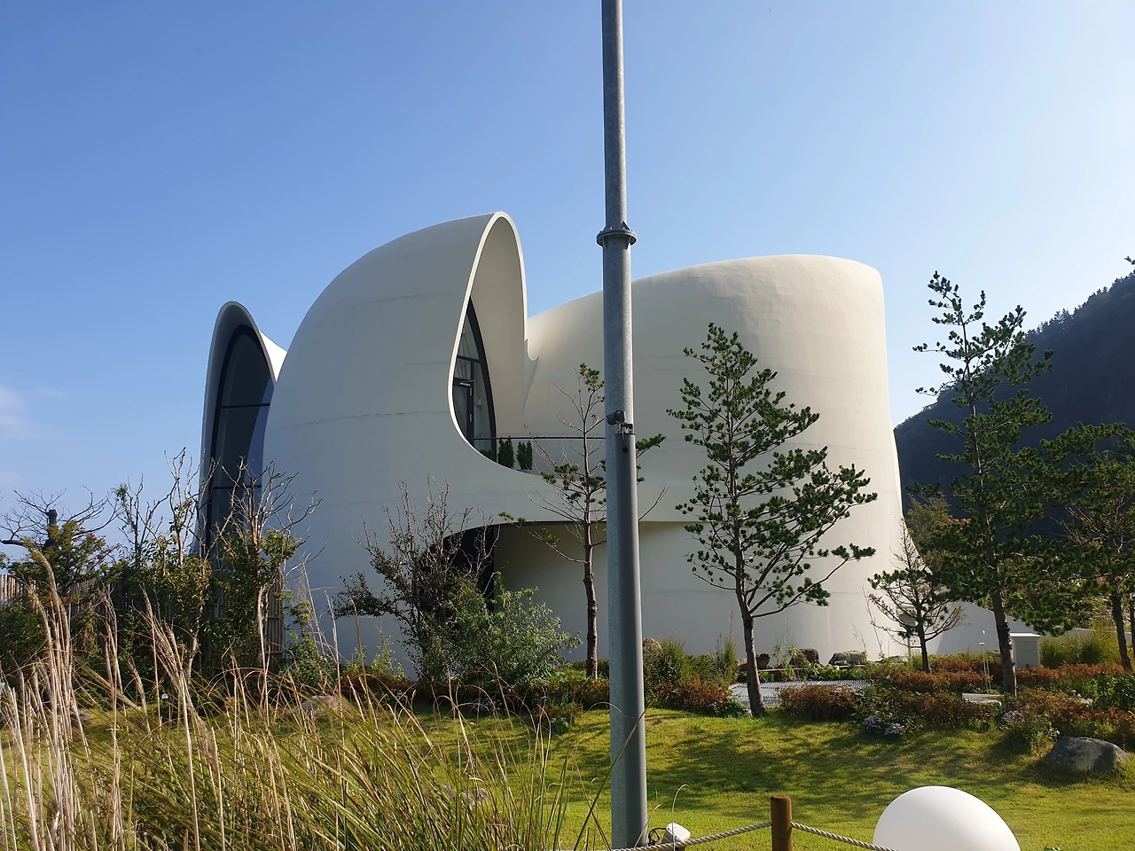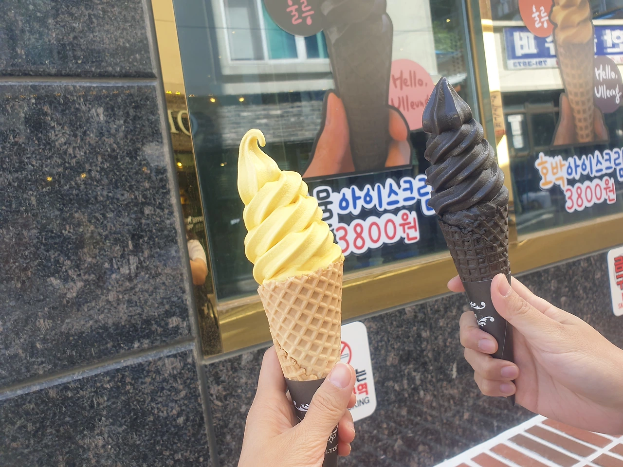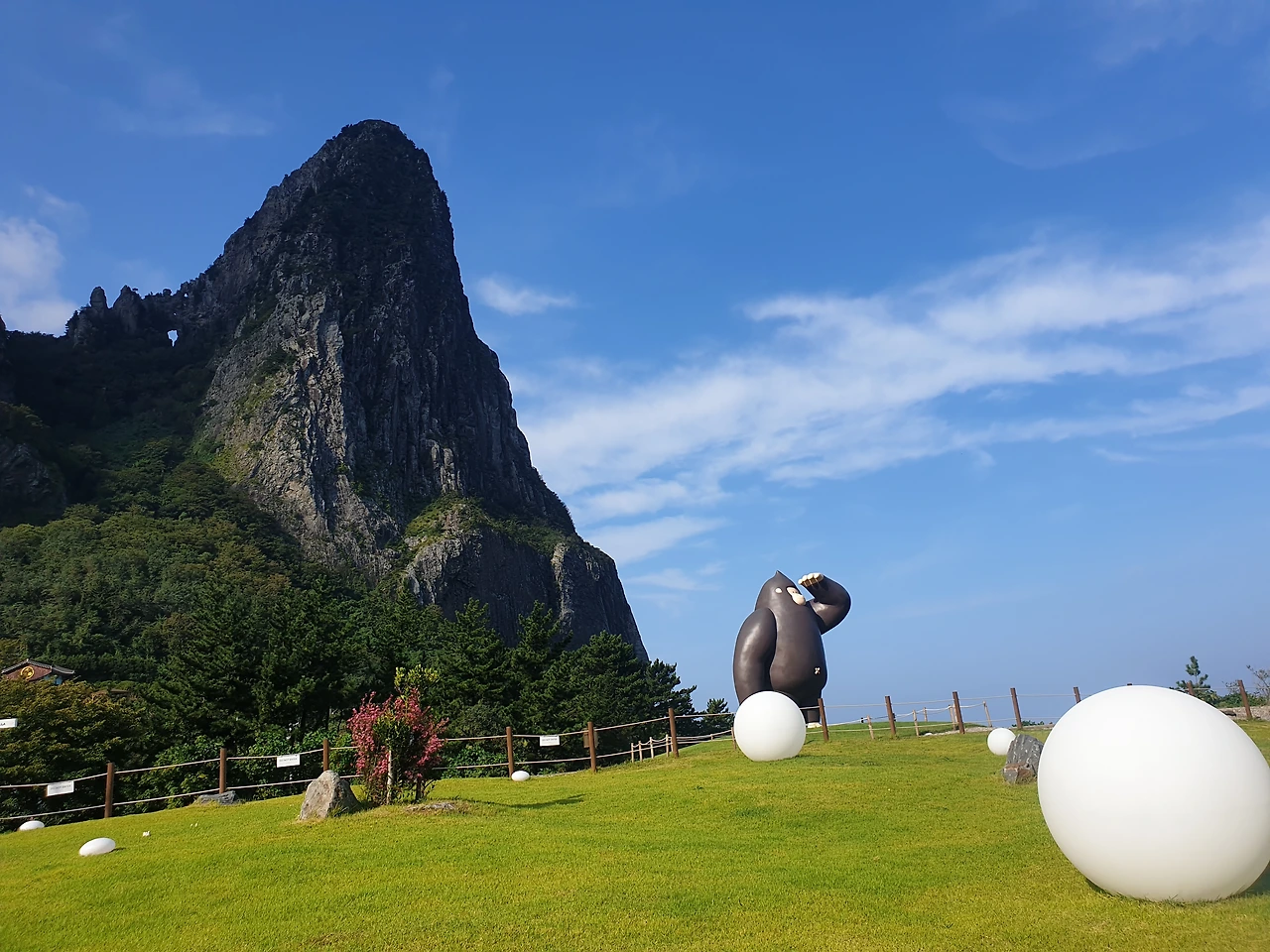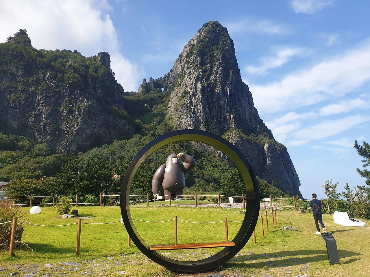2) 울릉도 '울'에 고릴라 '라'의 일명 카페 울라에서는 제인이 타잔이 아닌 고릴라와 사랑에 빠질 것만 같은 사랑스런 비쥬얼의 고릴라와 같은 포즈로 한컷 사진을 찍을 수 있다. 옆에 추산의 기를 받아 건축상을 수상한 1박에 1천만원이상인 코스모스 리조트의 외관도 힐끔 보고, '음'을 뜻하는 검은 색 링과 '양'을 뜻하는 하얀색 링에서 음양의 조화를 이룰 사진도 찍고, 탁트인 바다를 바라보고 있는 추산의 멋스러움도 만끽해보자.