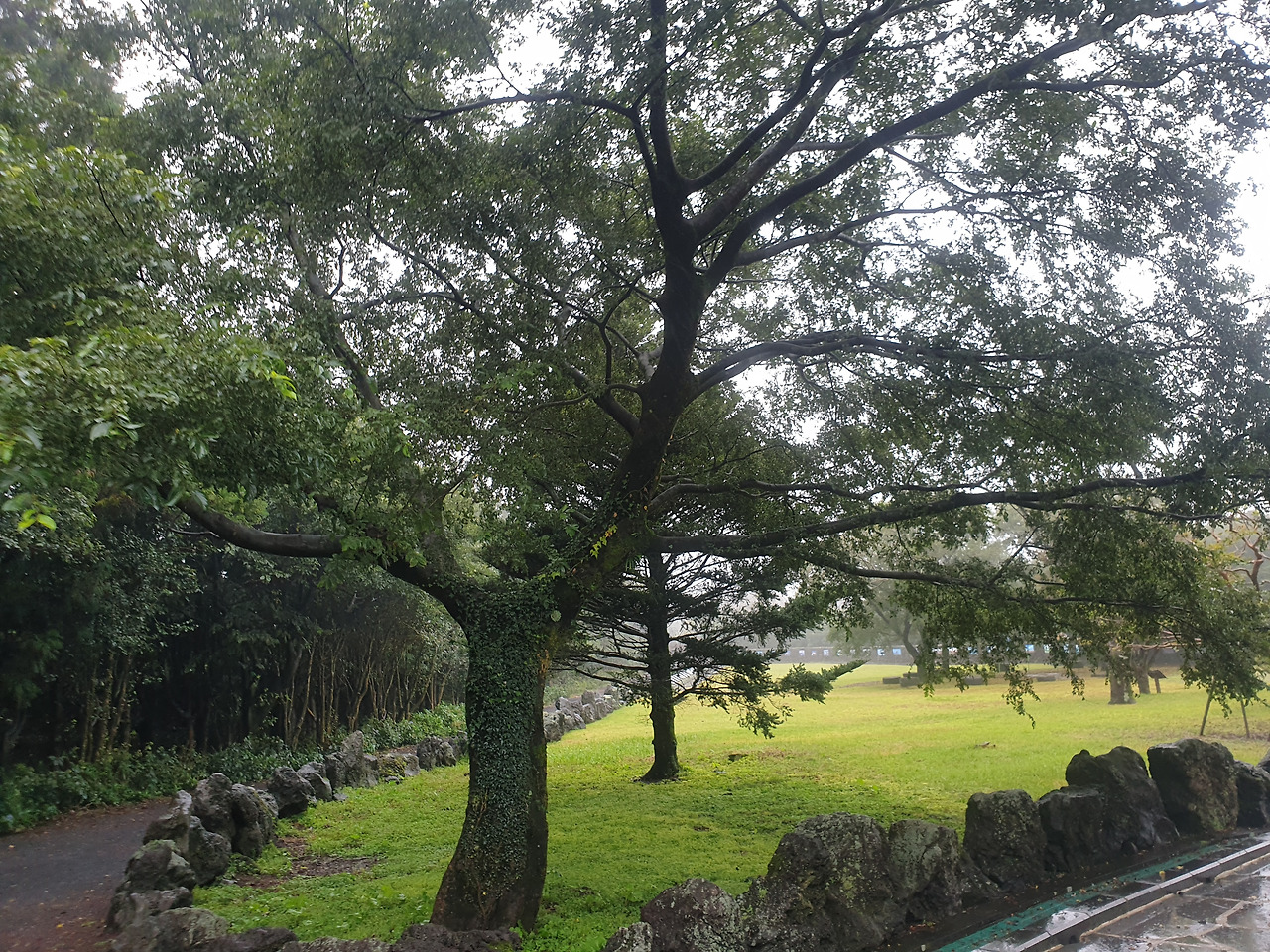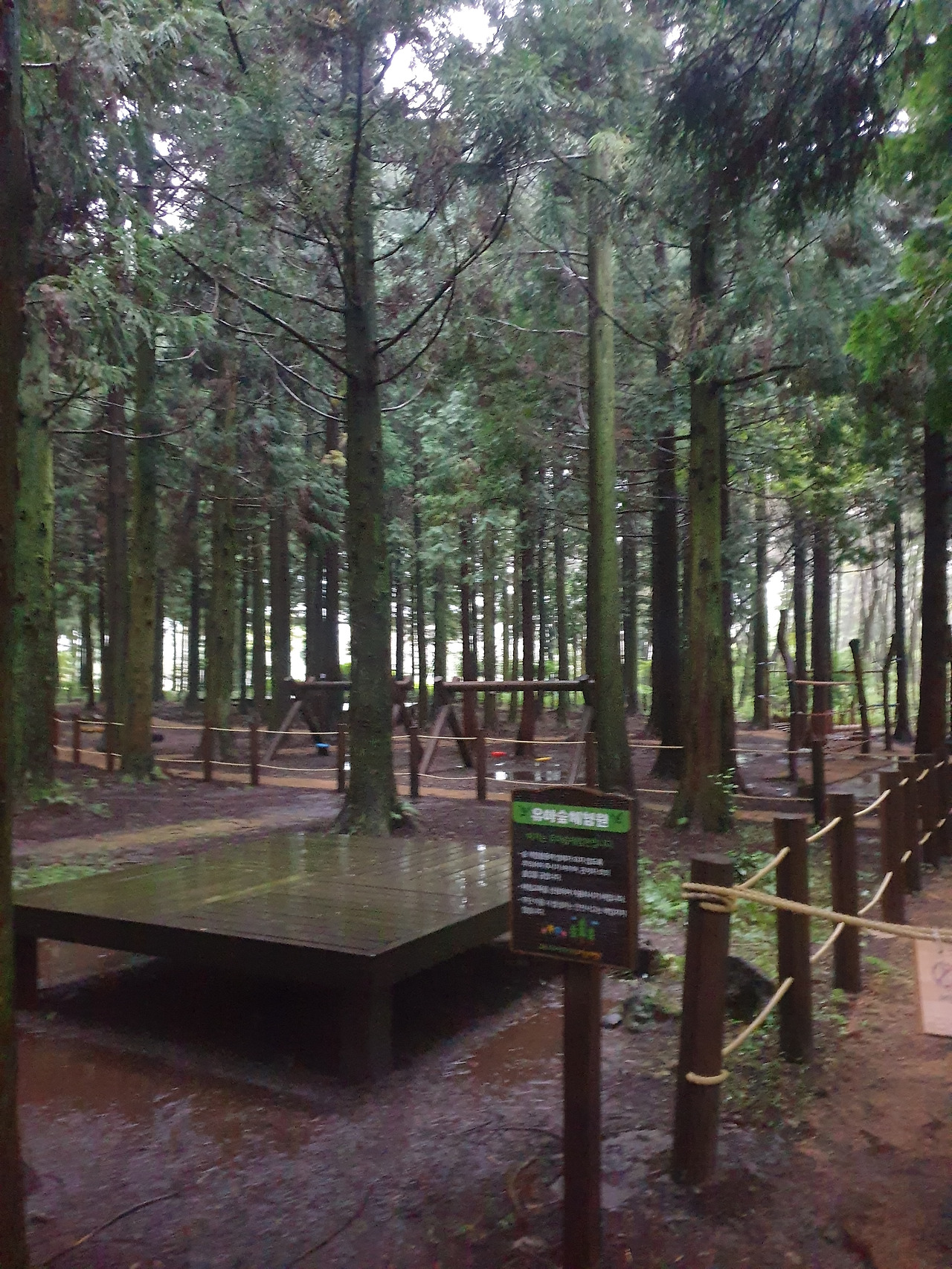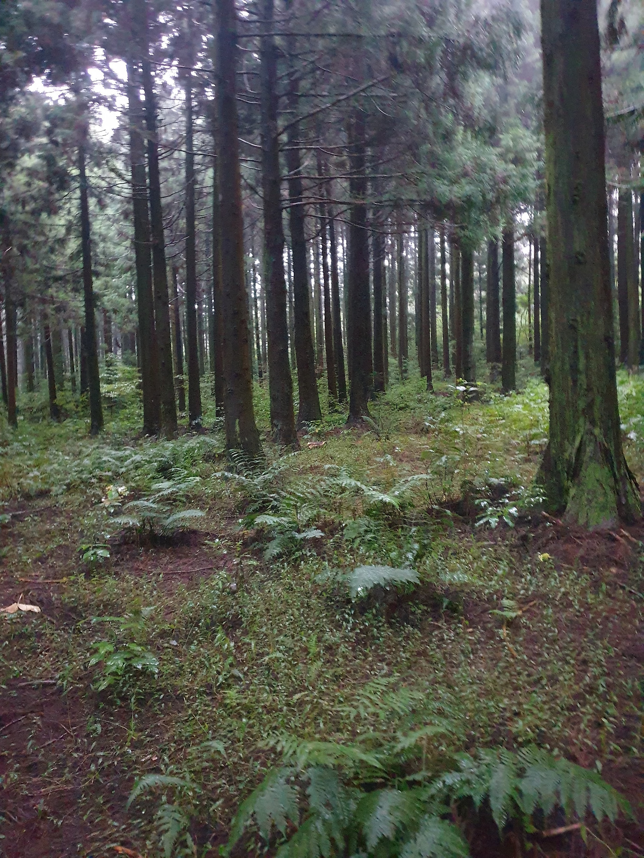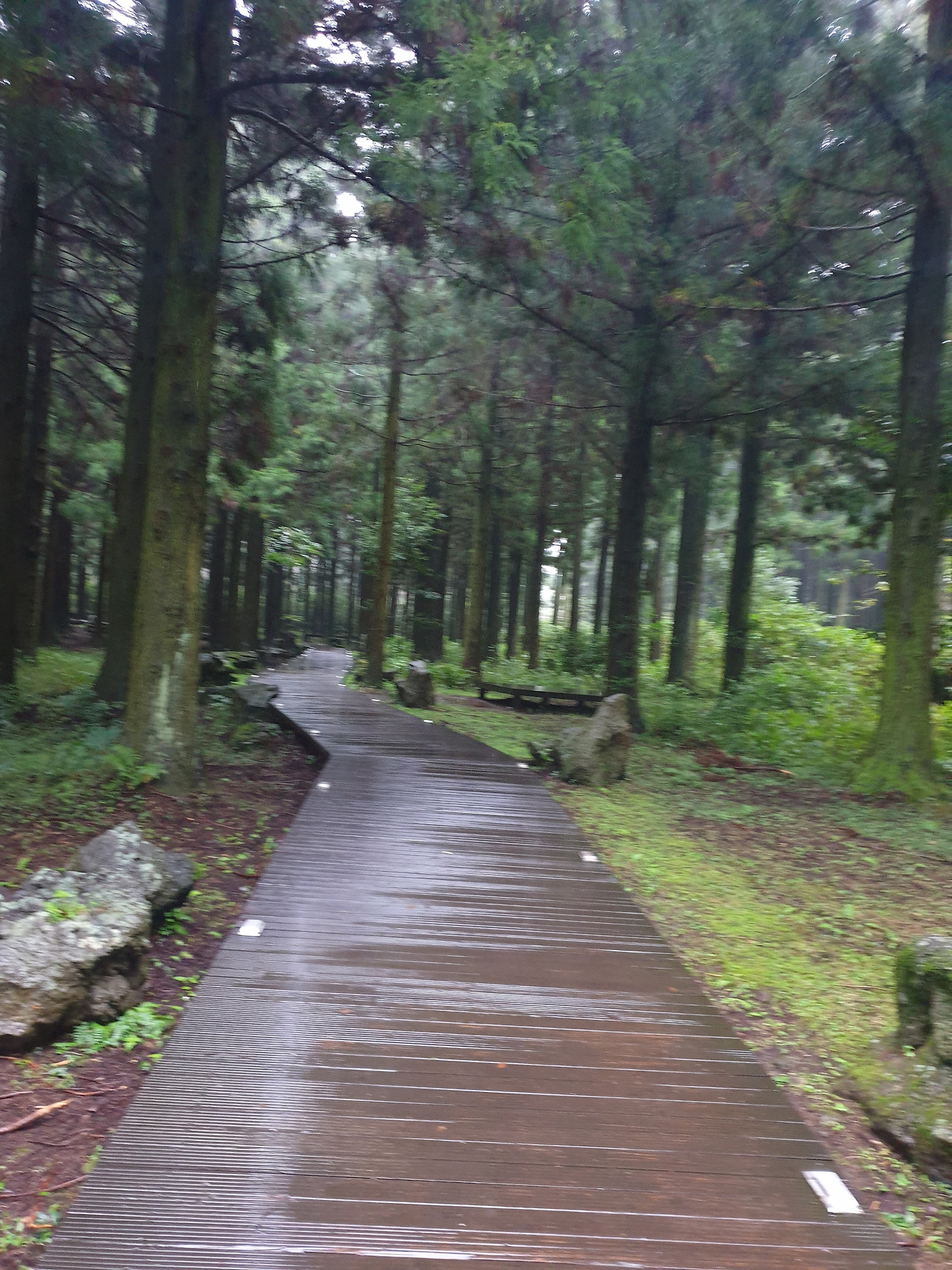 그런데 휴양림에서의 1박 2일, 이틀 내내 비가 와서 안개 자욱한 운치 있는 산책길을 사람들이 많은 번잡스러움과 무더운 햇볕을 피해 걸을 수 있게 되었다. 아마 비가 오지 않았더라면 숲길보다 더 화려한 바다와 꽃에 발길이 쏠려 엄마에게 필요한 피톤치드의 맑은 공기를 충분히 마쉬지 못했을지도...또, 이 날 비가 아니라 다른 바다를 보러 간 날 비가 왔더라면 모든 일정이 망가져 버렸을 수도 있다. 다행히 비가 오는 날 만난 숲길과 오름은 숲의 고유의 빛깔을 더 짙게 만들고, 뽀얀 안개빛이 더해져 맑은 날보다 더 운치가 있었다. 또, 일정 중 침대가 아닌 유일하게 뜨끈한 바닥이었던 휴양림은 비가 와서 쌀랑해진 날씨에 여행의 노곤함과 차가운 몸을 녹이기에 안성 맞춤이었다.