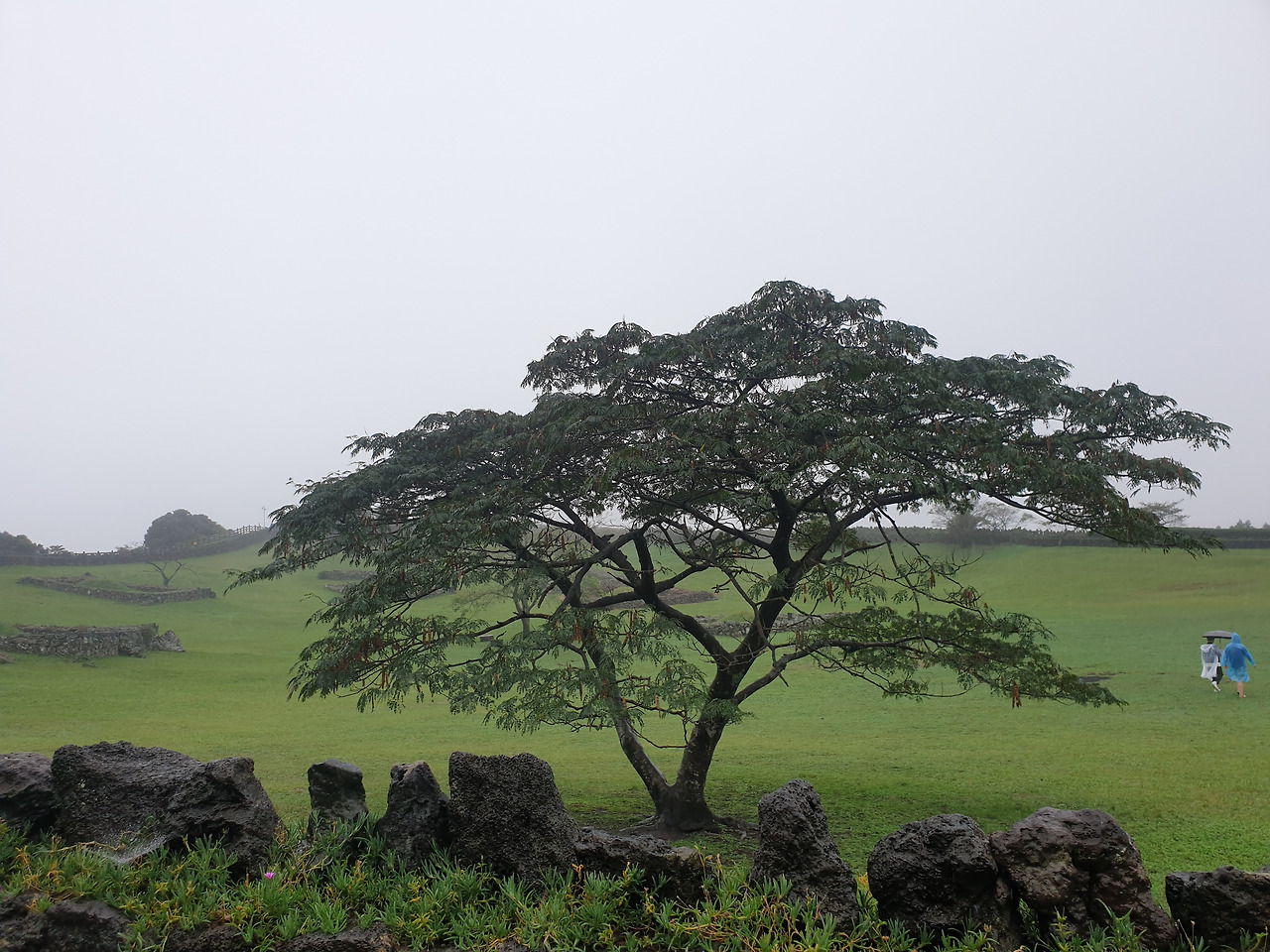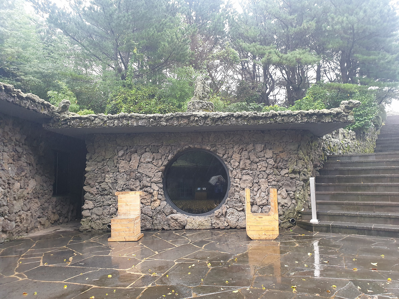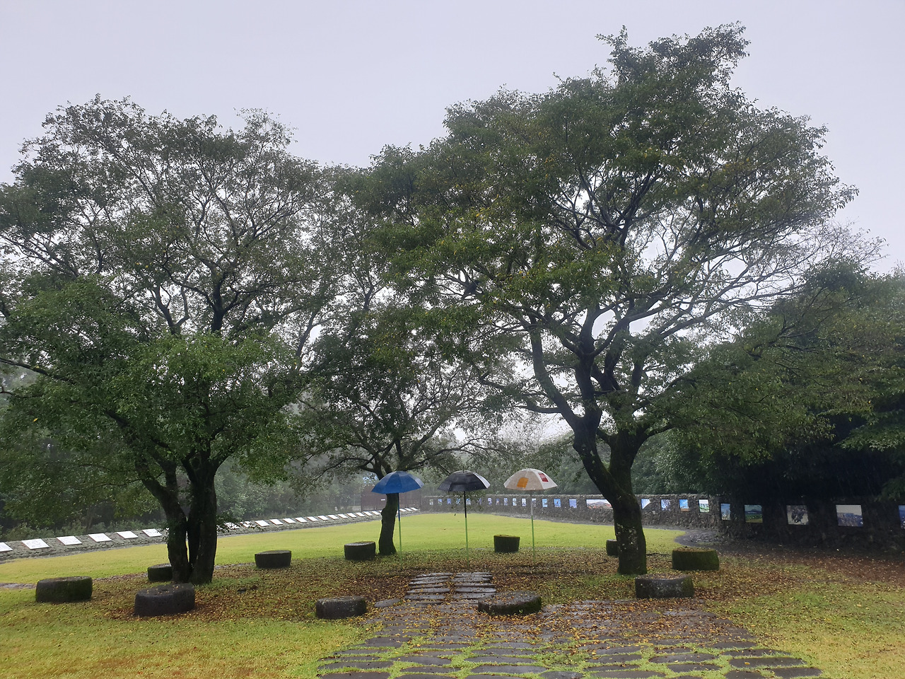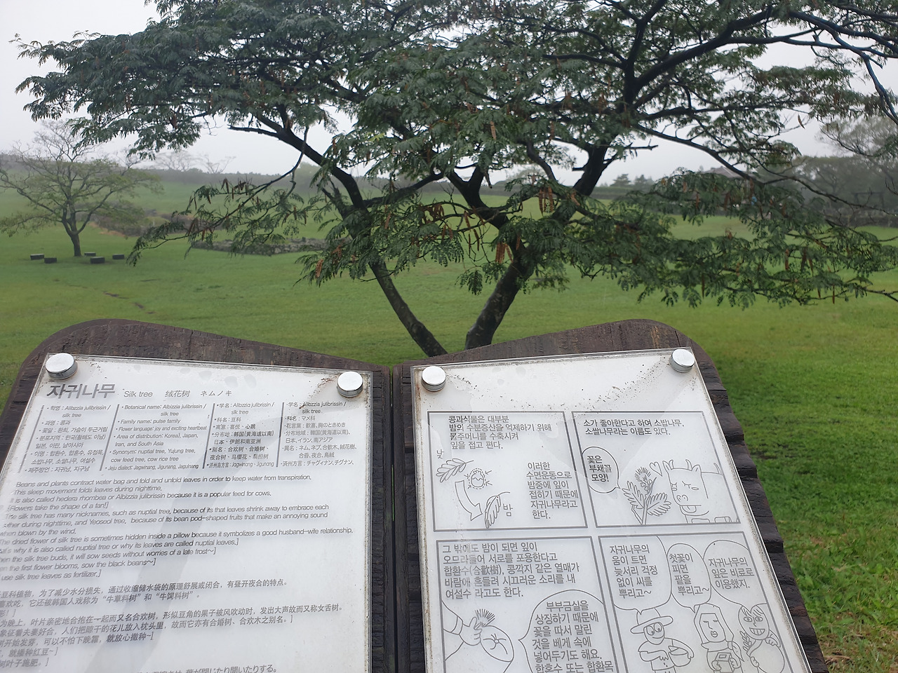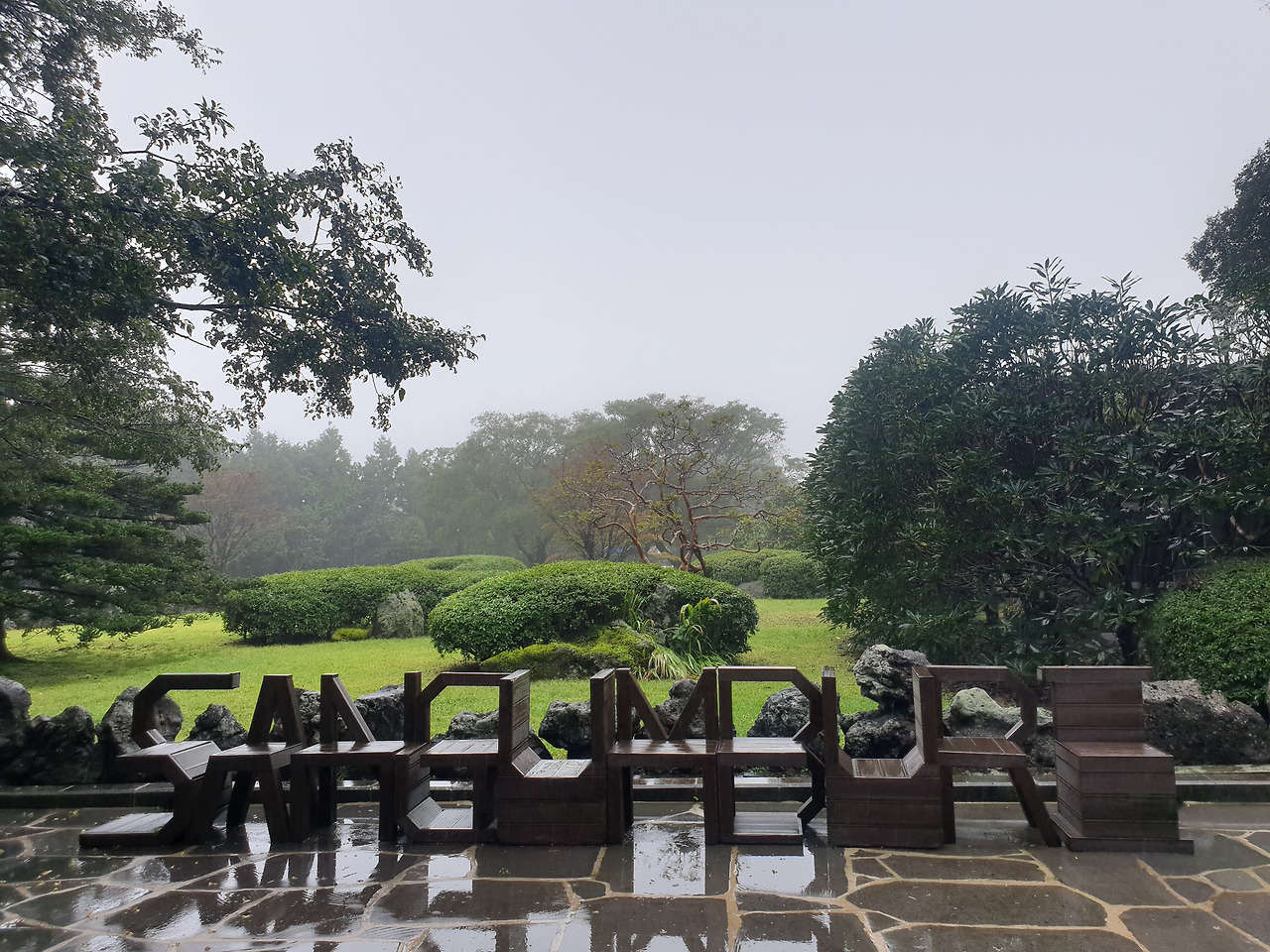 그런데 휴양림에서의 1박 2일, 이틀 내내 비가 와서 안개 자욱한 운치 있는 산책길을 사람들이 많은 번잡스러움과 무더운 햇볕을 피해 걸을 수 있게 되었다. 아마 비가 오지 않았더라면 숲길보다 더 화려한 바다와 꽃에 발길이 쏠려 엄마에게 필요한 피톤치드의 맑은 공기를 충분히 마쉬지 못했을지도...또, 이 날 비가 아니라 다른 바다를 보러 간 날 비가 왔더라면 모든 일정이 망가져 버렸을 수도 있다. 다행히 비가 오는 날 만난 숲길과 오름은 숲의 고유의 빛깔을 더 짙게 만들고, 뽀얀 안개빛이 더해져 맑은 날보다 더 운치가 있었다. 또, 일정 중 침대가 아닌 유일하게 뜨끈한 바닥이었던 휴양림은 비가 와서 쌀랑해진 날씨에 여행의 노곤함과 차가운 몸을 녹이기에 안성 맞춤이었다.
