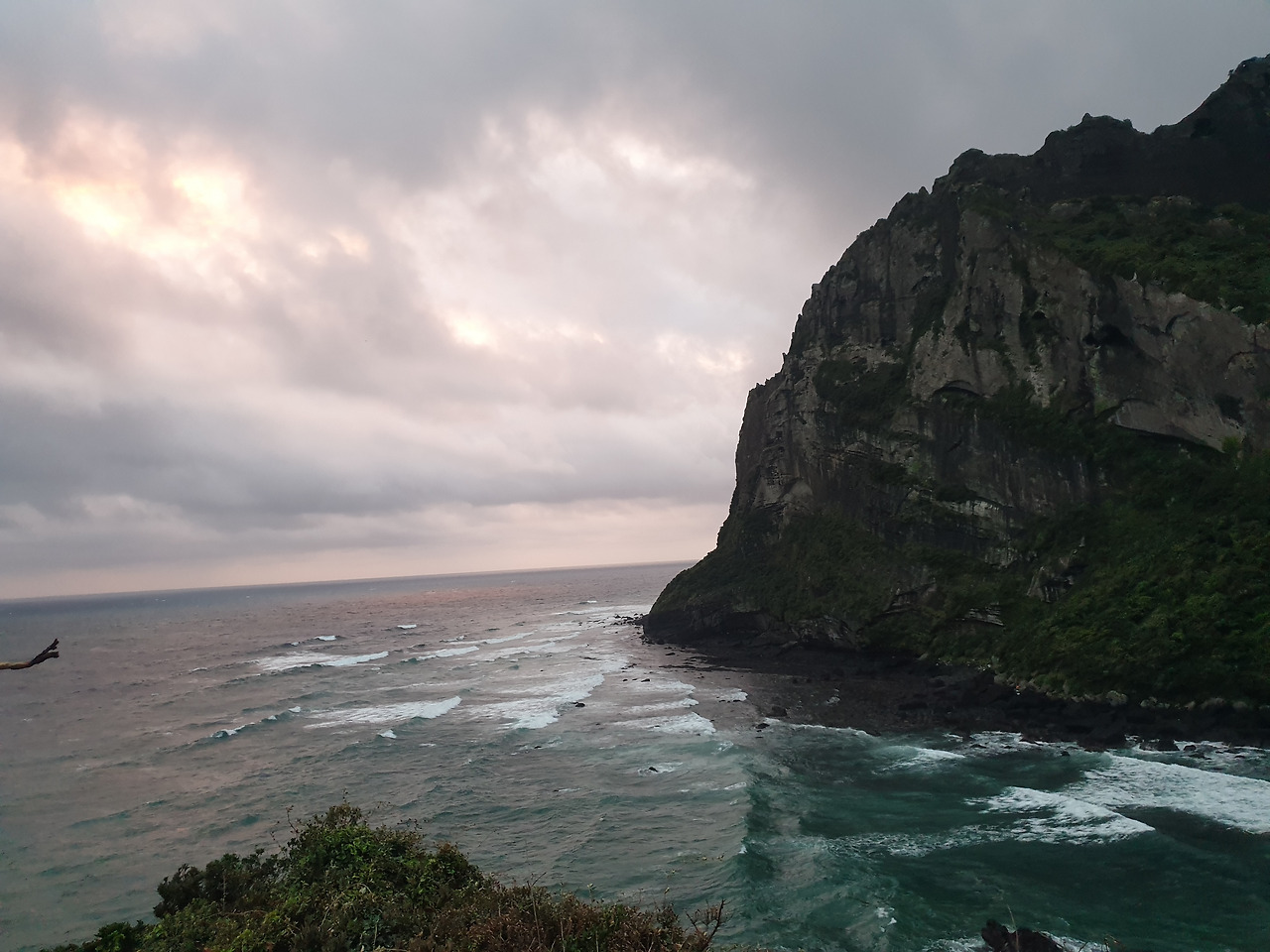성산봉 일출. 날씨가 흐려 해를 보지 못해도 좋다. 흐린 구름들이 아무리 가려도 장렬히 뿜어내는 강렬한 태양의 붉은빛을 미처 다 가려내지는 못해 그레이 빛 틈 사이로 삐져나온 태양의 붉은빛이 바다의 푸른빛과 만나자 바다는 빛의 조합으로 도자기를 굽듯 라벤더 빛깔을 고요히 빚어낸다.