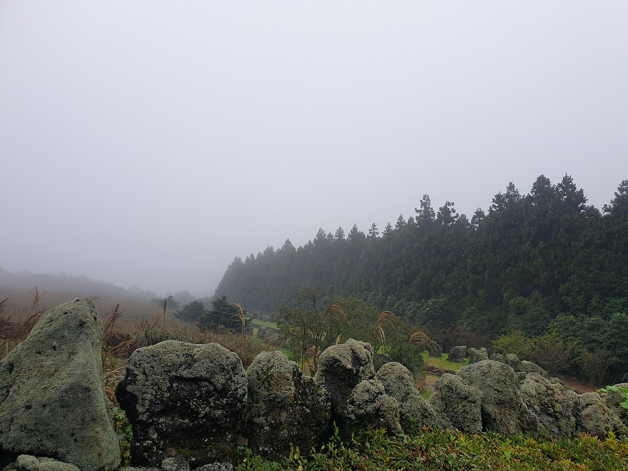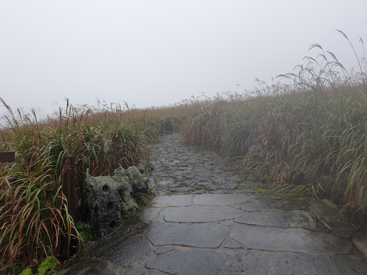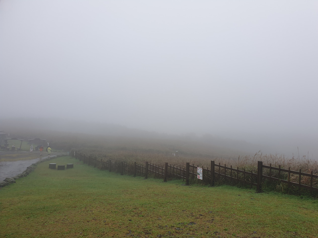 비록 안개가 자욱해 오름을 볼 수는 없었지만, 안개 낀 산굼부리는 갈대와 어우려져 나름 운치가 있었다.