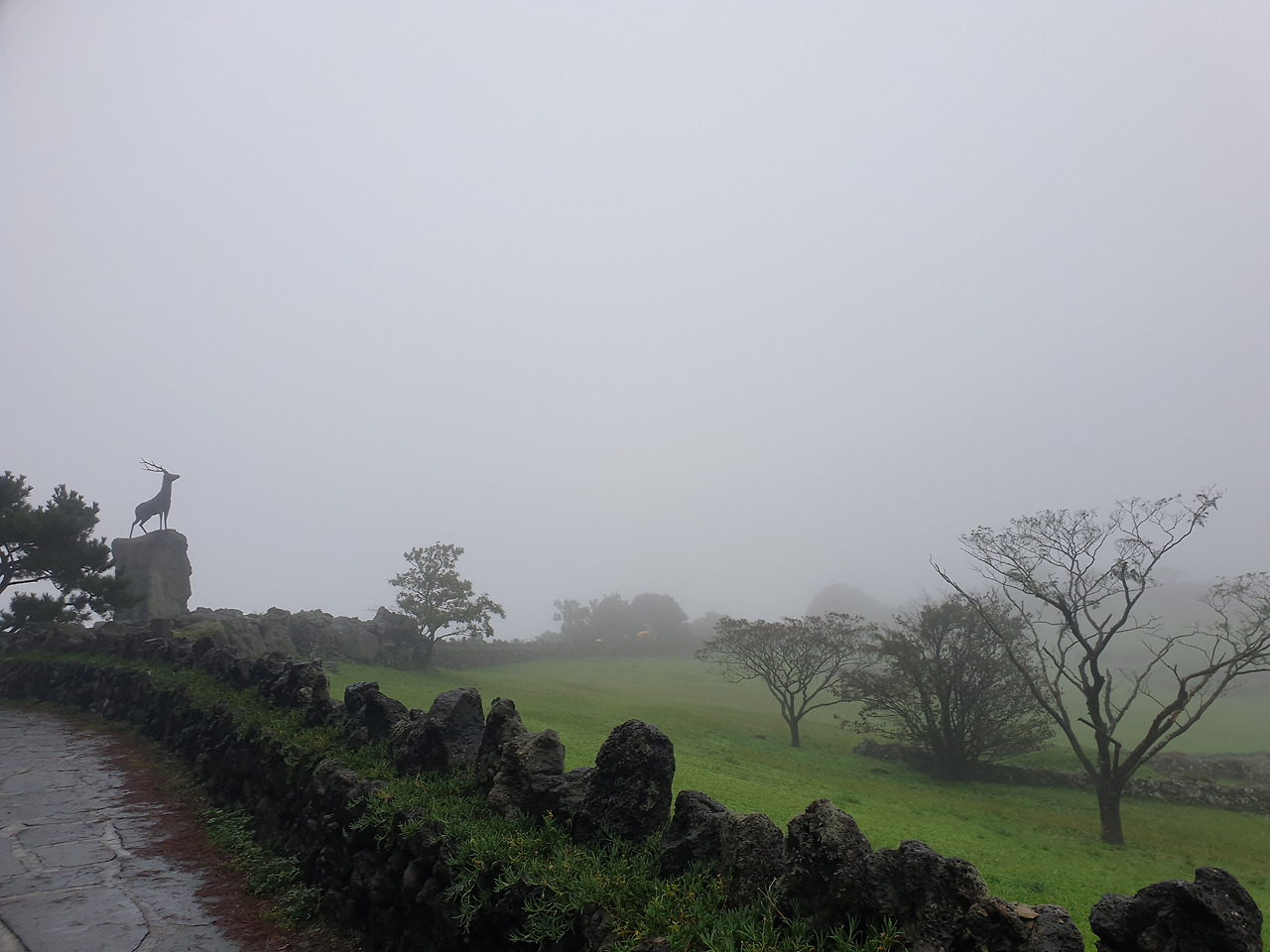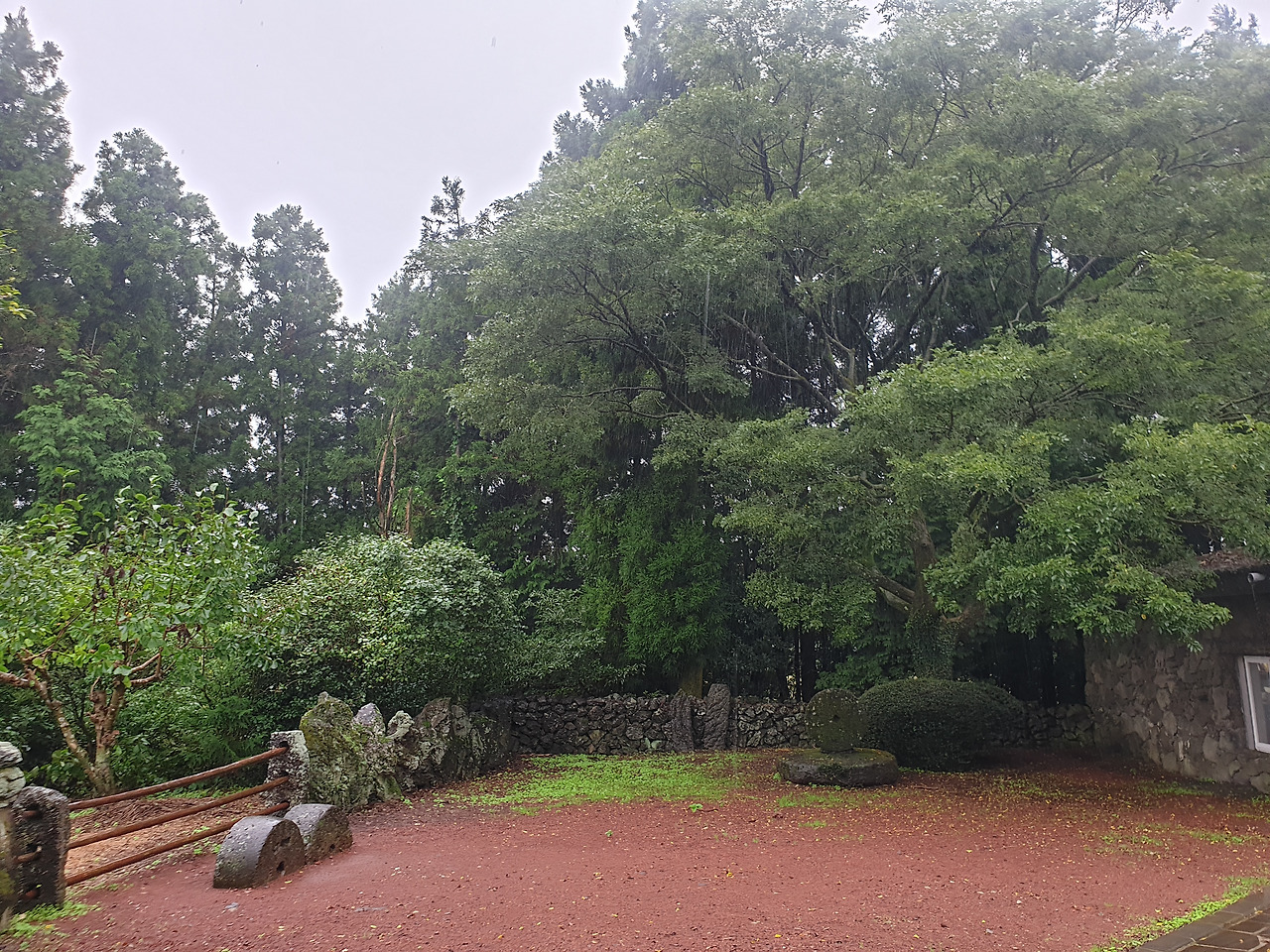 울릉도의 5다였던 바람과 돌은 오히려 제주도에 더 적합해 보인다 생각이 들 정도로 오늘 날씨는 바람 일색이다. 흐린 곧 비가 올 것 같은 날씨에 원래 예정이던 우도를 가뿐히 접어두고 오늘은 숙소로 잡은 붉은 노을 휴양림 근처 산 뷰를 감상하기로 한다.