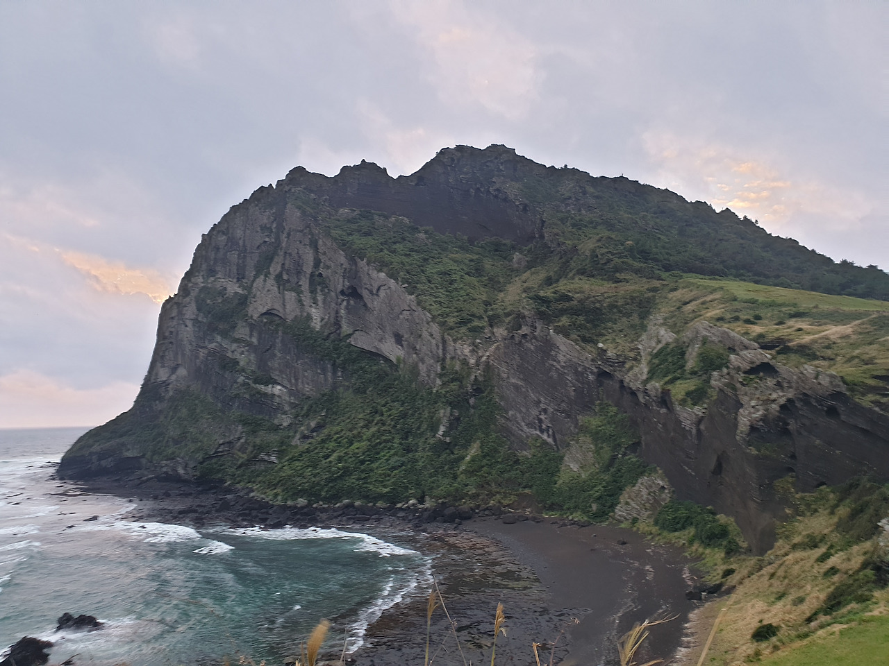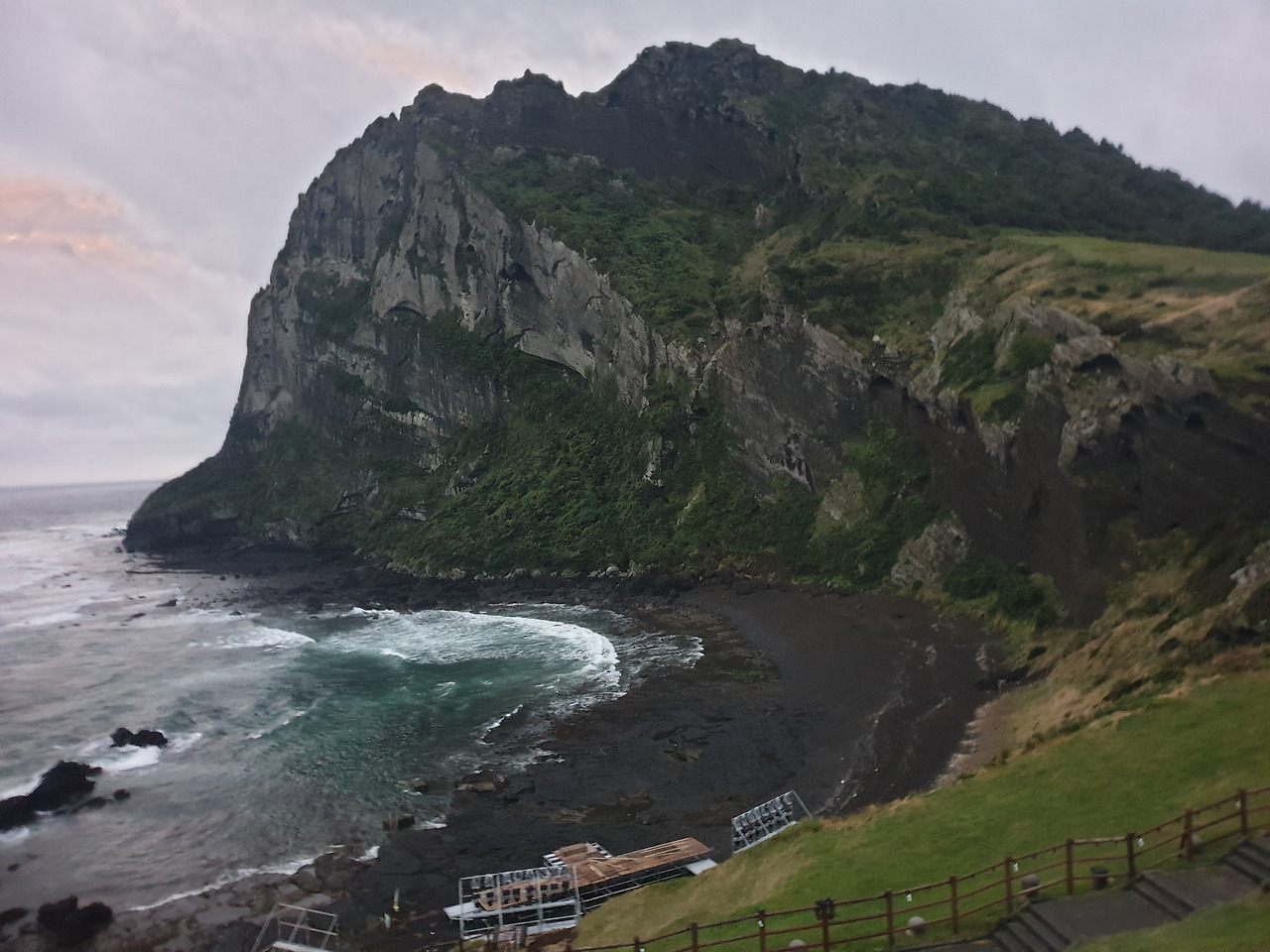 항상 새벽 기상을 하는 엄마 덕에 눈떠 보니 마침 아침 6시 즈음이다. 날씨가 흐릴 것 같아 일출은 보지 못할 것 같지만, 숙소가 성산일출봉 코 앞이니 어제 미처 둘러보지 못한 가벼운 무료 올레길을 한번 걸어보자고 츄리닝에 윗 옷만 걸쳐 입고 숙소를 나선다.