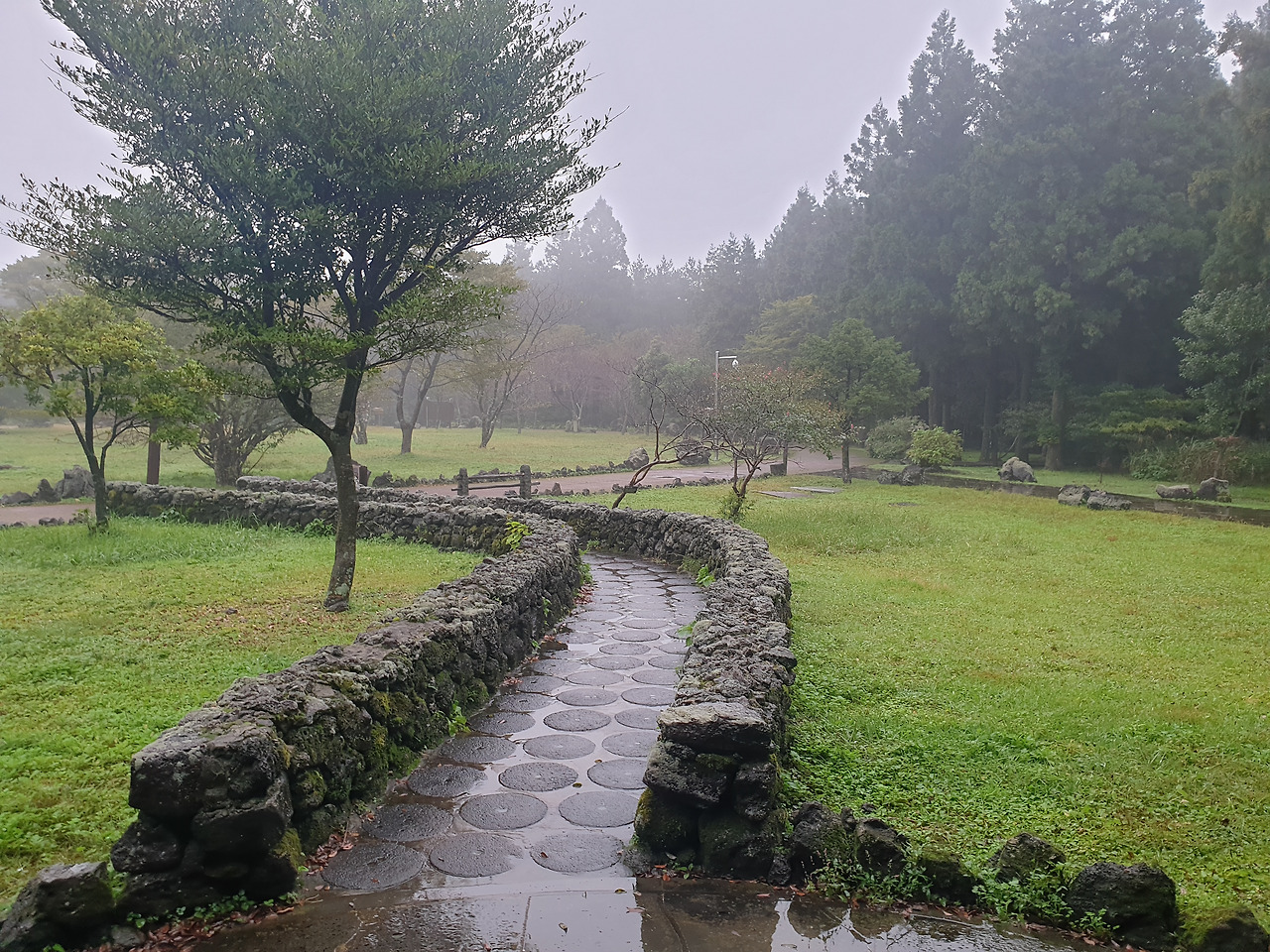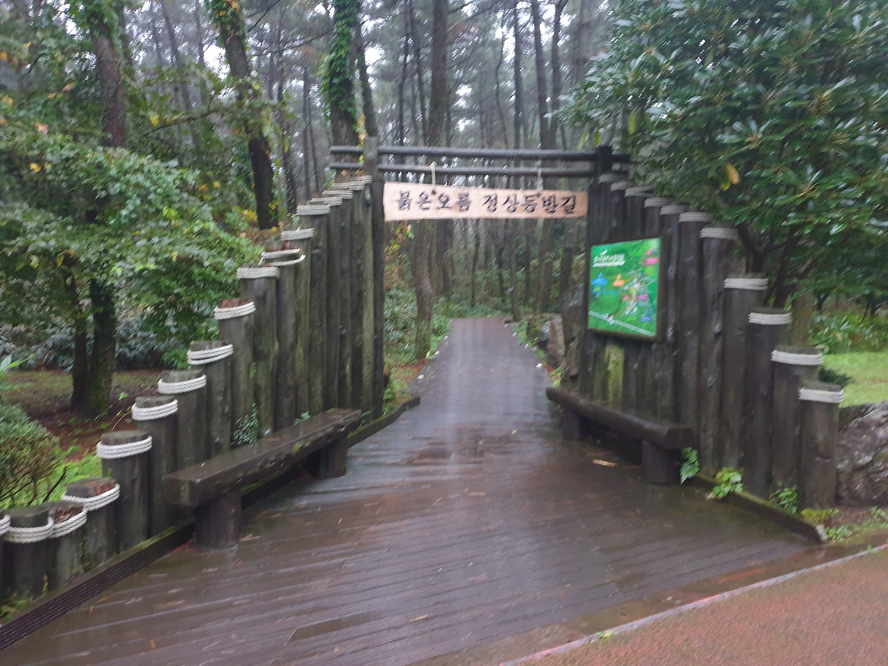 카페가 문이 닫겨 중간 휴식을 못하기도 했고, 내리는 비 때문에 춥기도 하고 사람들도 붐벼, 우린 곧 붉은오름 휴양림으로 향했다. 숙소는 미리 보일러로 바닥을 뜨끈하게 해 두셔서 오자마자 바닥에 누우니, 비로 한기가 들려던 차에 몸이 녹아내릴 것만 같았다. 꿀맛 같은 휴식 뒤 우린 붉은오름 산책 길을 한번 걷고 저녁 식사를 하러 가기로 한다.