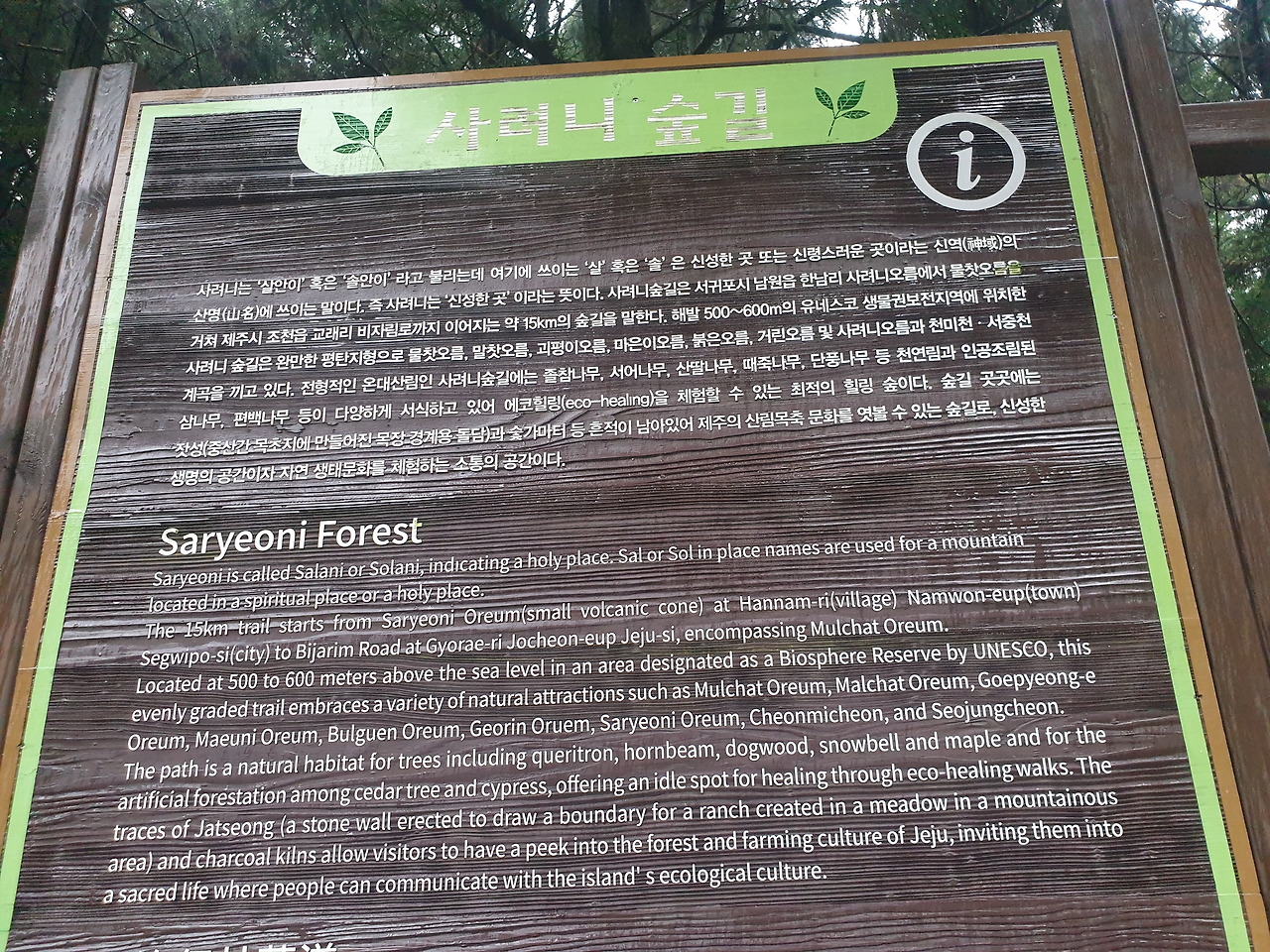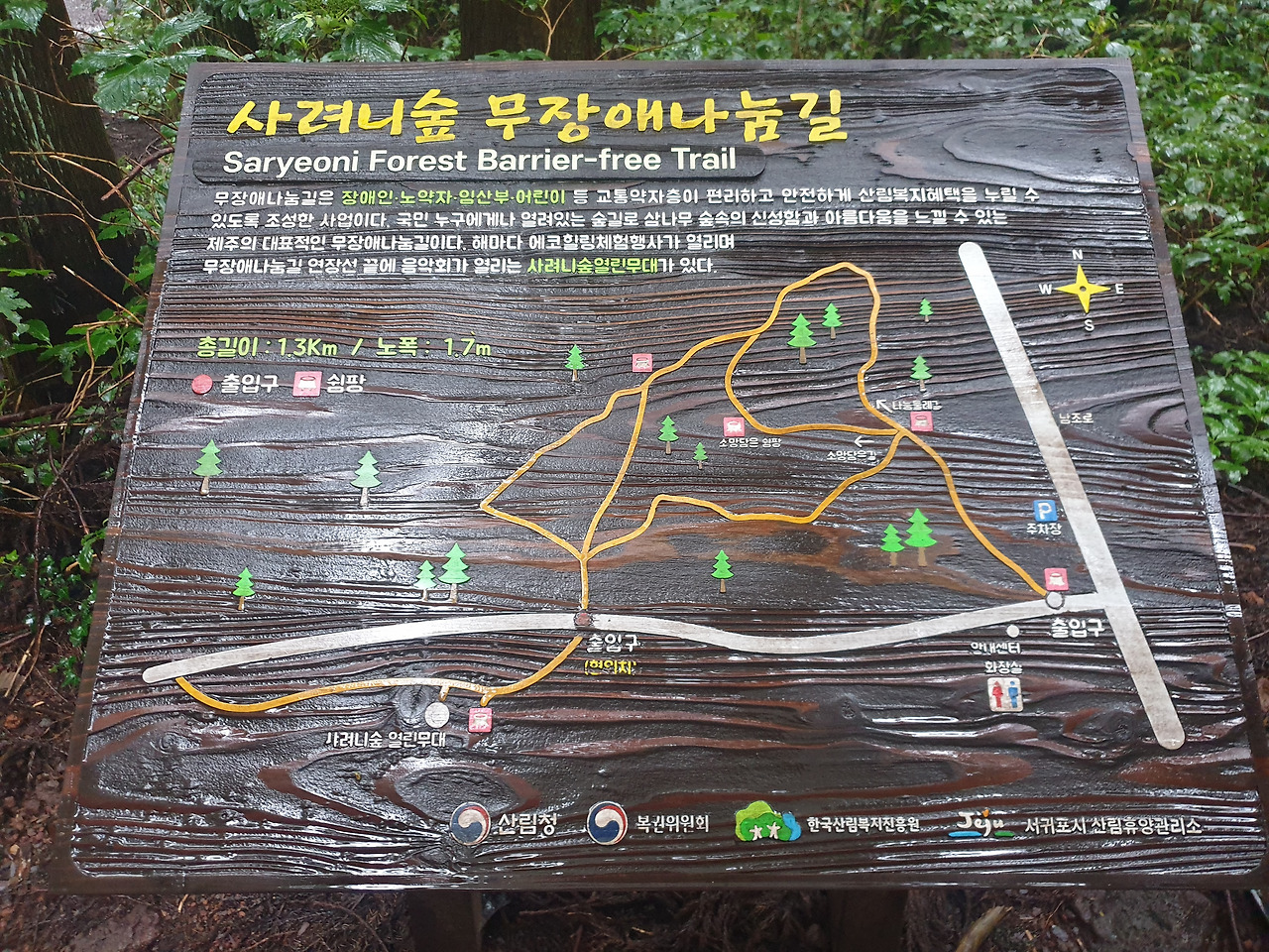 그리고 찾아간 '신성한 곳'을 뜻한다는 이름도 예쁜 사려니 숲길. 휠체어를 타고도 숲길을 걸을 수 있도록 만들어 놓은 점이 인상 깊다. 빼곡한 나무 숲길을 편하게 걸으니 좋았지만, 유명세만큼이나 붐비는 사람 때문에 마스크를 줄곧 쓰고 있다 보니 마음 놓고 맑은 공기를 마시지 못해 아쉬웠다.