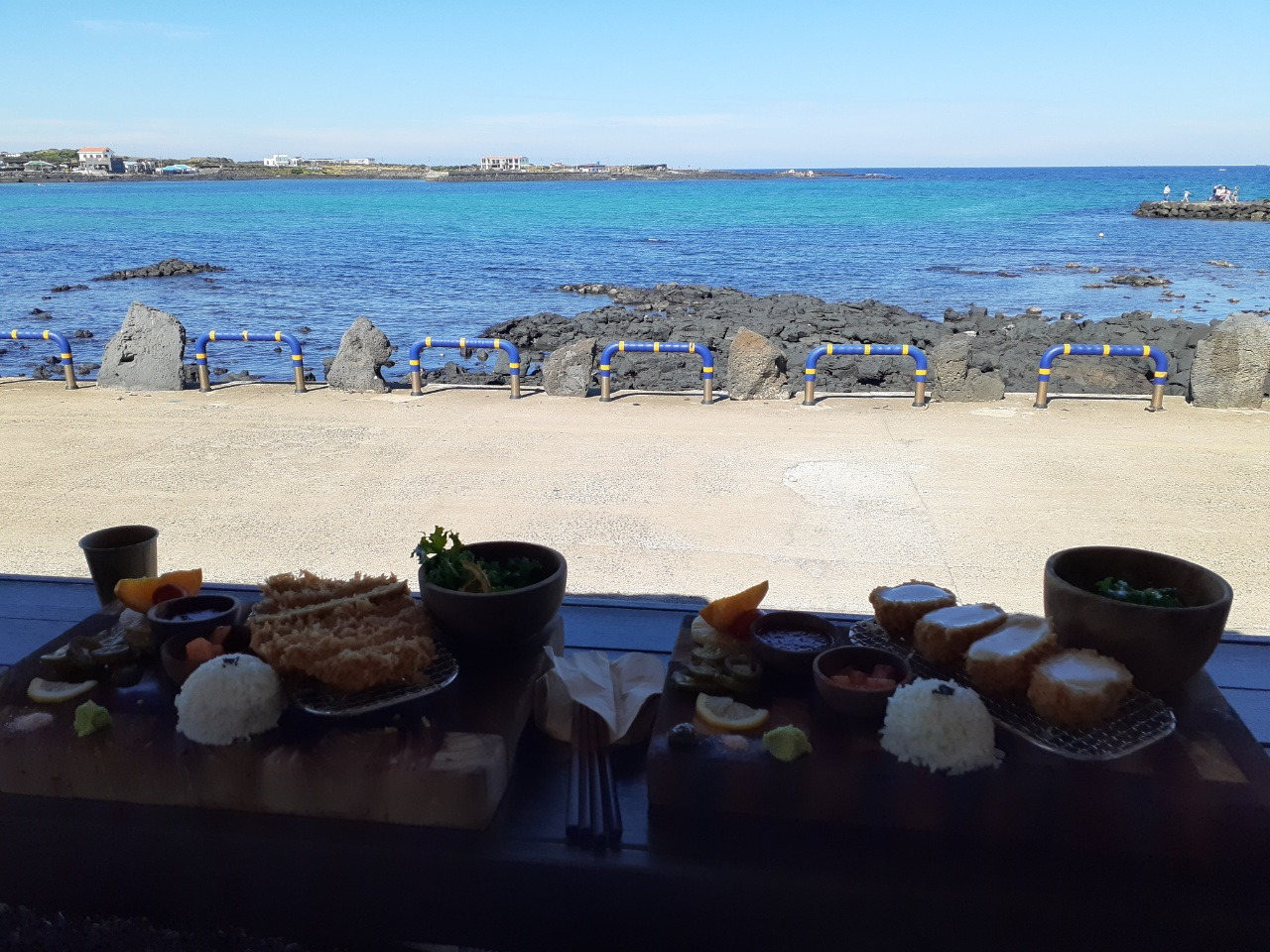 점심으로 들른 핫플 돈가스. 유명 맛집의 명성답게 바깥 좌석은 대기가 길고, 옆자리에서는 오백 만뷰를 찍었다는 유튜브의 대화 소리도 들려온다. 바다 풍경 한 모금, 바싹한 돈가스 한 입으로 어느새 접시의 바닥을 비워낸다. 앉은 자리 앞 도로에는 관광객들의 전기 오토바이 행렬이 줄을 잇는데, 우리는 오토바이를, 오토바이에 탄 사람들은 맛집을 바라보며 서로가 서로를 구경하듯 지나간다.