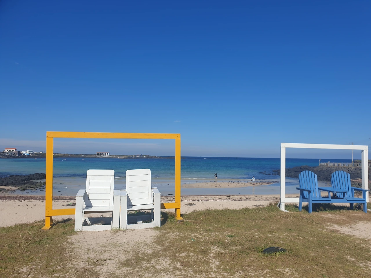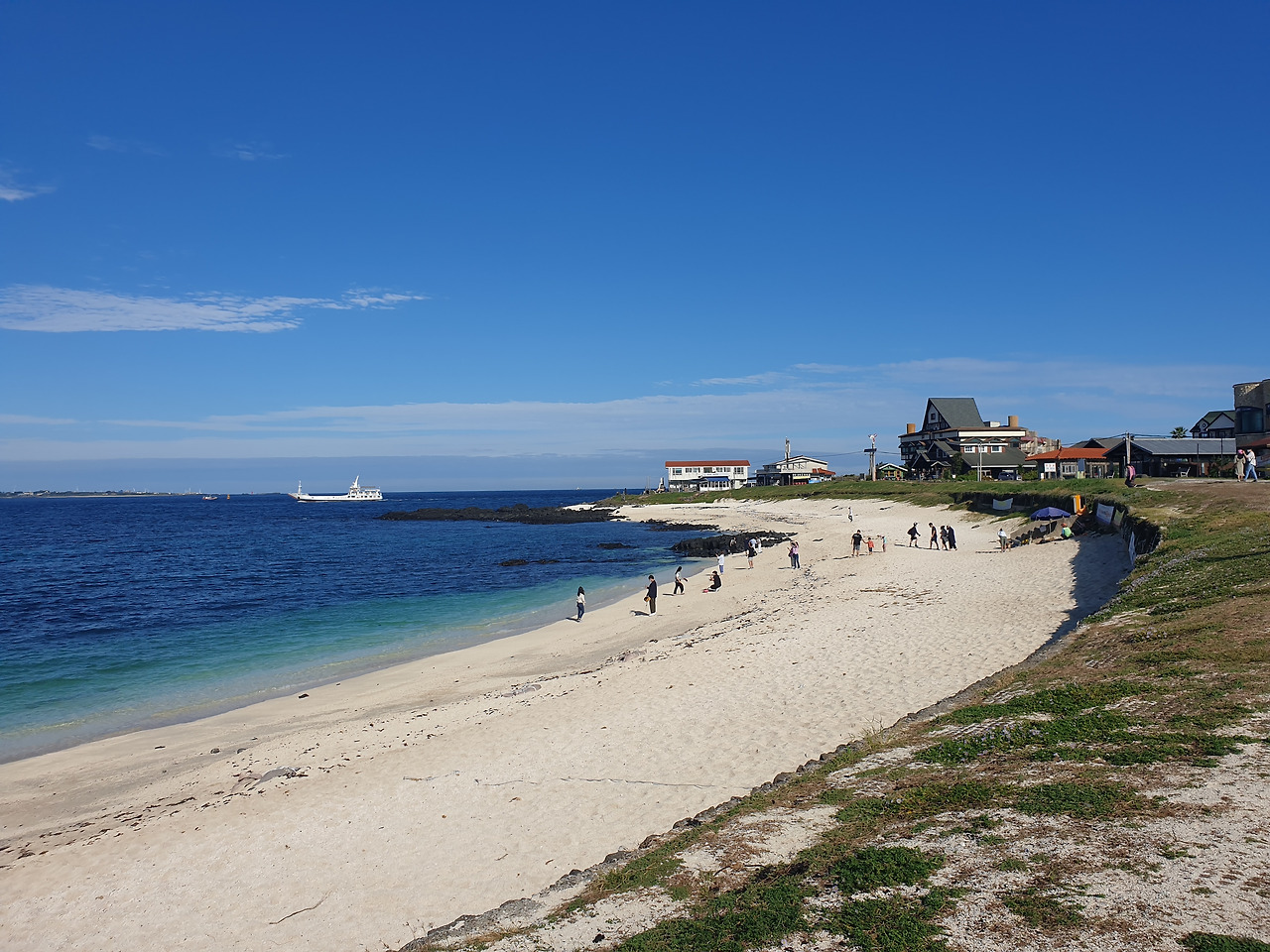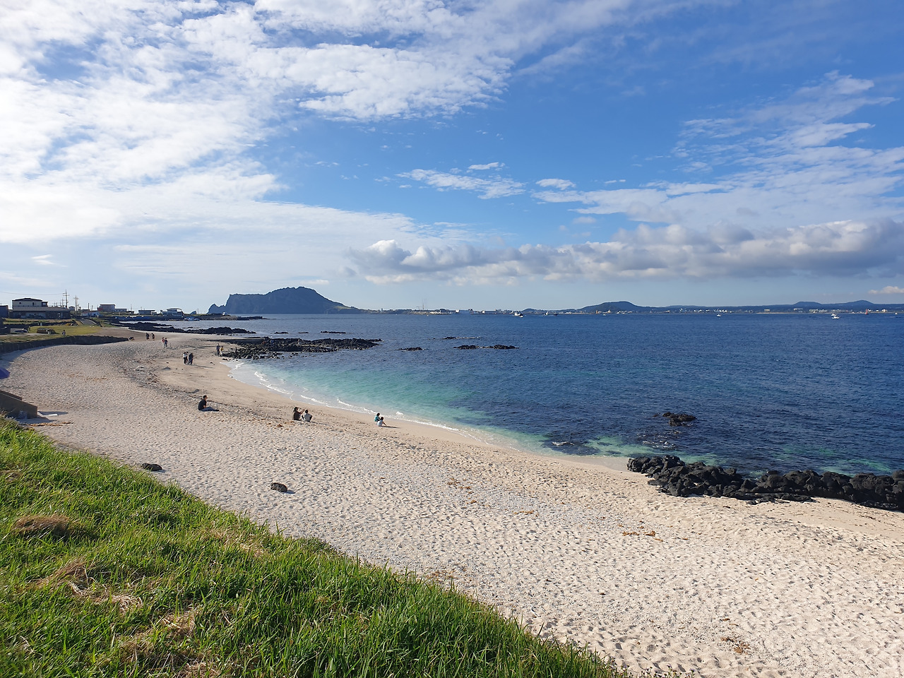 난 우도의 한산함이 첫눈에 마음에 들었다. 도착하자마자, 제일 먼저 가보고 싶었던 서빈백사로 달려간다. '이게 바로 제주지'하고 뽐내는 듯한, 대조적인 색채들이 아이러니하게도 찰지게 어우러는 조화를 이루는 까만 현무암, 하얀 모래사장, 에메랄드 물빛, 금빛 물결과 푸른 잔디... 어디선가 밀려오는 진한 미역 내음까지도 사랑스러운 우도.
