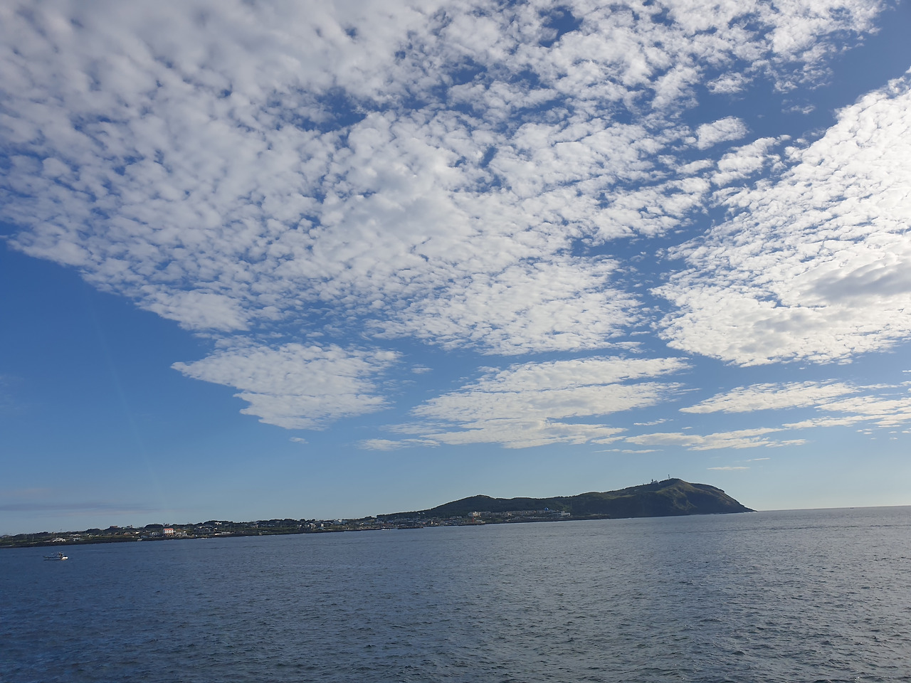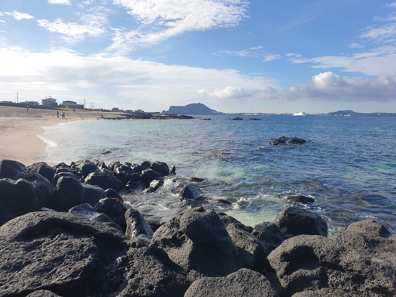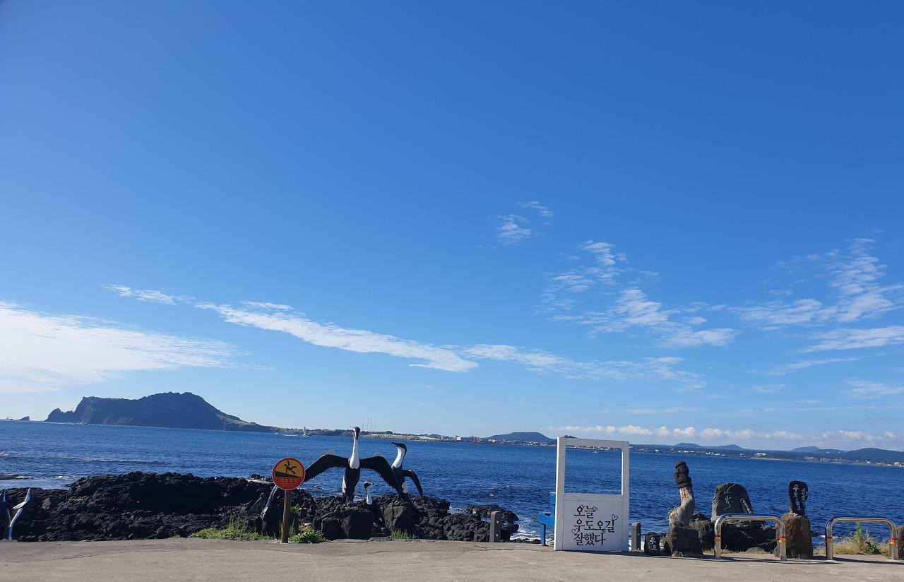 해가 떠오르자, 바람이 시원하게 느껴질 우도 가기 딱 알맞은 날씨다. 이틀 전까지만 해도 잔뜩 심술부리던 하늘이 오늘은 딱 예쁜 하늘빛 옷감에 눈부시게 반짝이는 햇빛 브로치에 하얀 구름 깃털로 포인트를 준 옷을 차려 입고 한껏 멋을 뽐낸다. 변덕스러운 날씨 덕에 제주도 일주하려던 완벽한 동선이 마구 꼬여 버려 서쪽 제주도는 포기해야 했지만, 오늘과 같은 날씨라면 왠지 용서해줄 수 있을 것 같다.