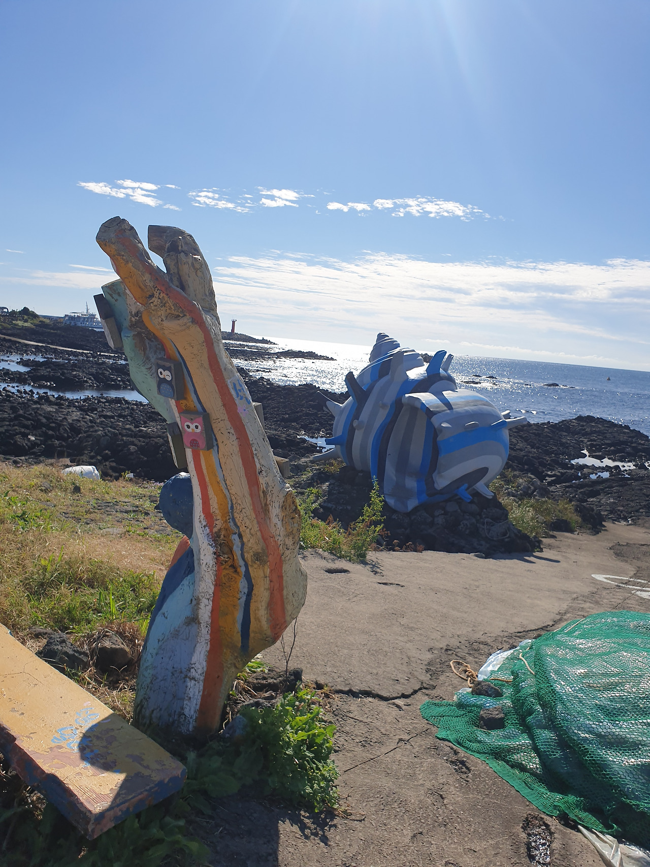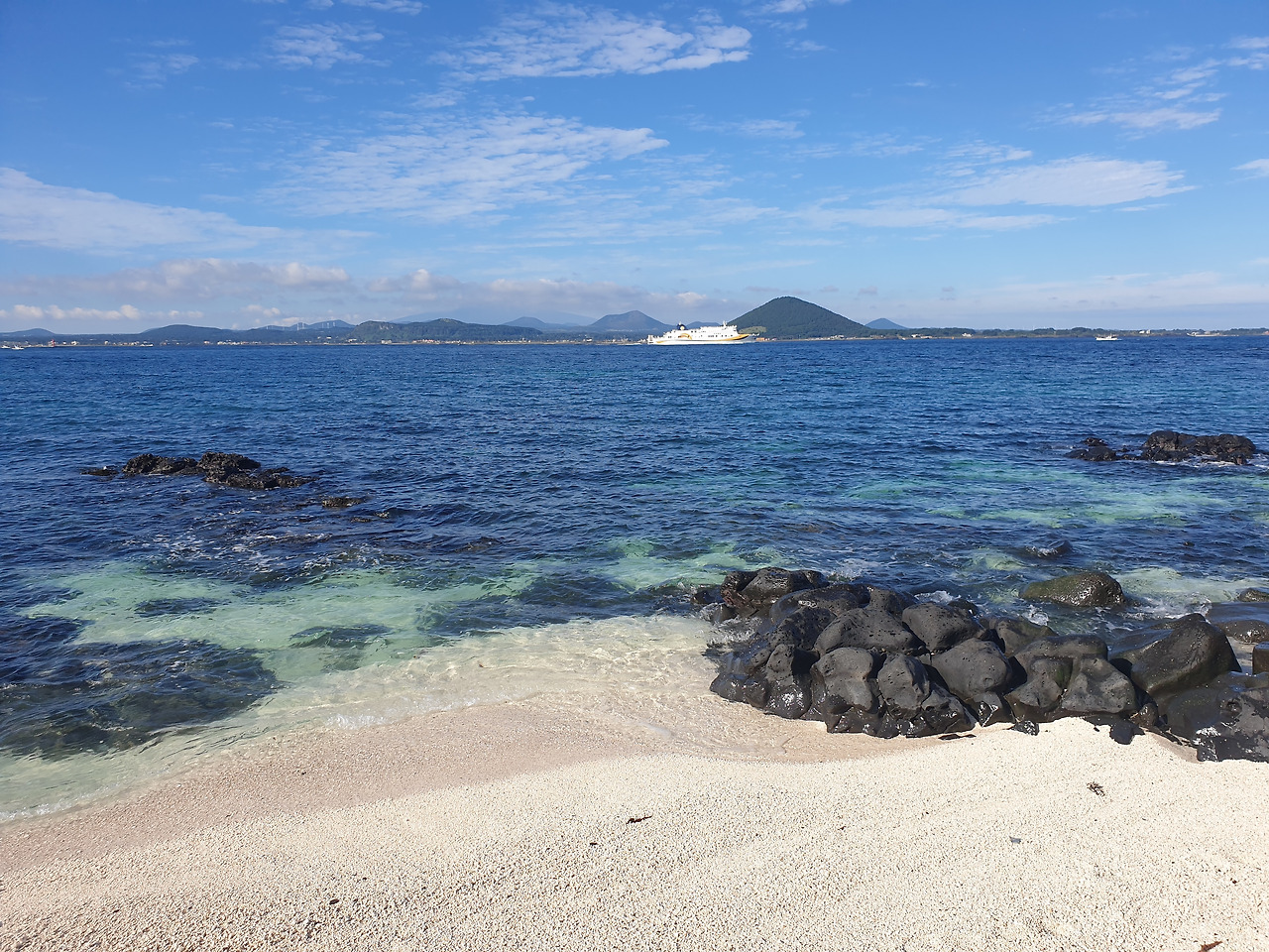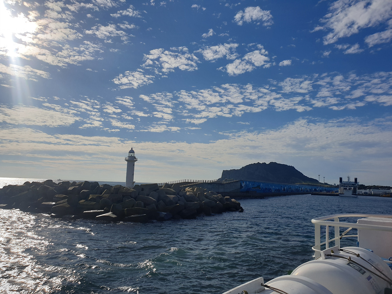 해가 떠오르자, 바람이 시원하게 느껴질 우도 가기 딱 알맞은 날씨다. 이틀 전까지만 해도 잔뜩 심술부리던 하늘이 오늘은 딱 예쁜 하늘빛 옷감에 눈부시게 반짝이는 햇빛 브로치에 하얀 구름 깃털로 포인트를 준 옷을 차려 입고 한껏 멋을 뽐낸다. 변덕스러운 날씨 덕에 제주도 일주하려던 완벽한 동선이 마구 꼬여 버려 서쪽 제주도는 포기해야 했지만, 오늘과 같은 날씨라면 왠지 용서해줄 수 있을 것 같다.