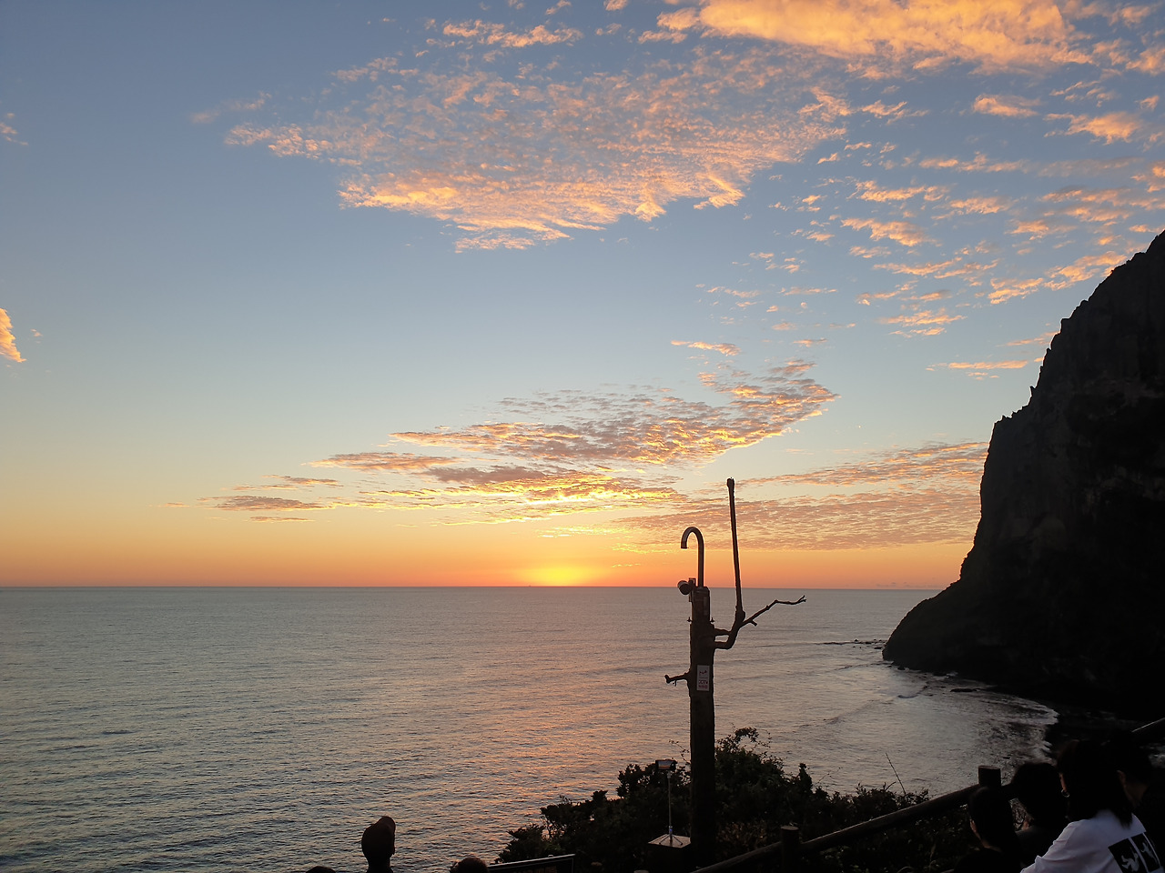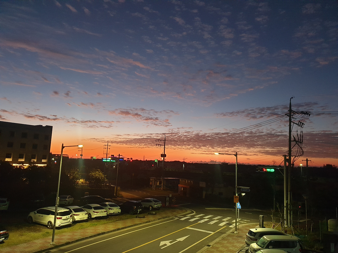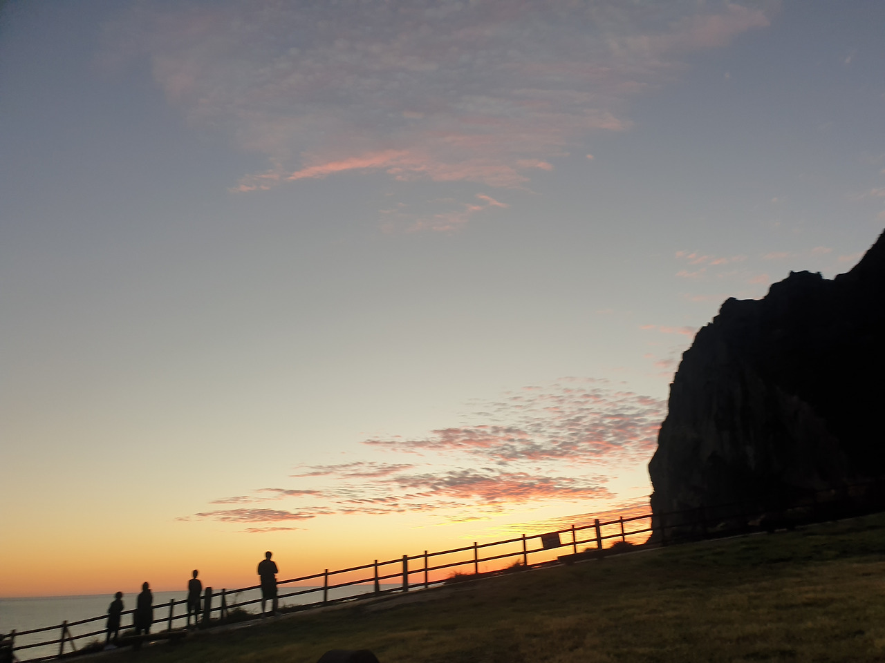 눈 떠보니 아침 6시다. 제주도 일출이 6시 반쯤인데, 바깥 풍경을 힐끔 보니 거리는 새벽 어스름에 붉은빛이 감 싸돌며, 위로 펼쳐진 맑은 하늘에 오늘은 일출이 제대로 보일 것 같았다. 성산 일출봉에서 5분 거리인 숙소를 잡았던 터라 세수만 하고 나와 다시 일출봉으로 향한다.