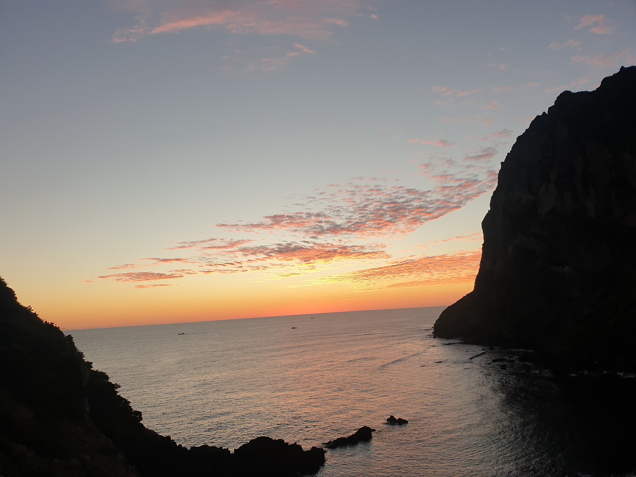 태양의 부재로 고요한 연 보랏빛 하늘과 맞닿아 밤새 내려앉은 어둠으로 짙은 남색으로 변한 바다와의 경계가 어디라는 것을 햇님이 알려주기라도 하려는 듯, 실오라기 같던 붉은 실선이 점점 굵게 짙어지기 시작한다.