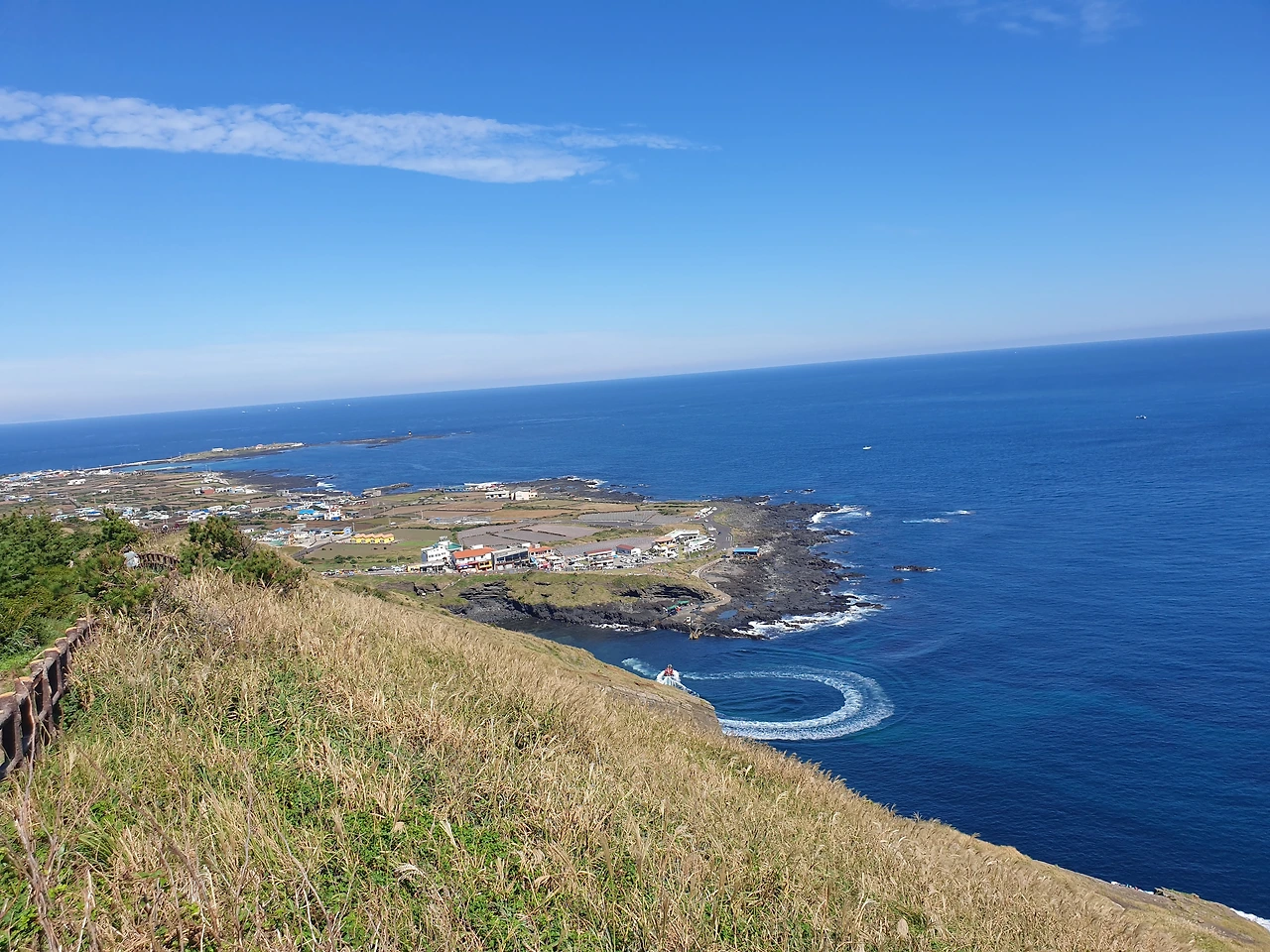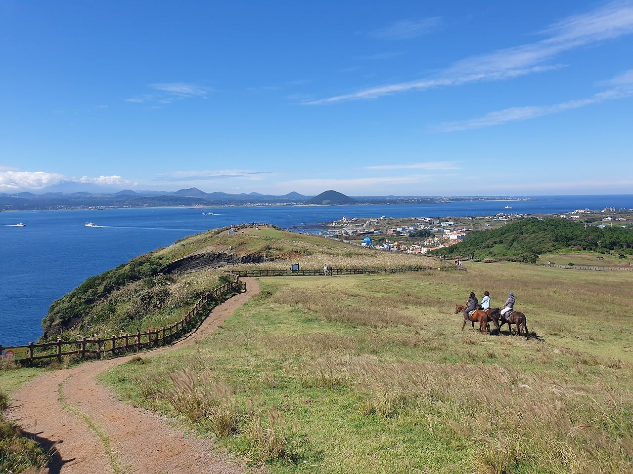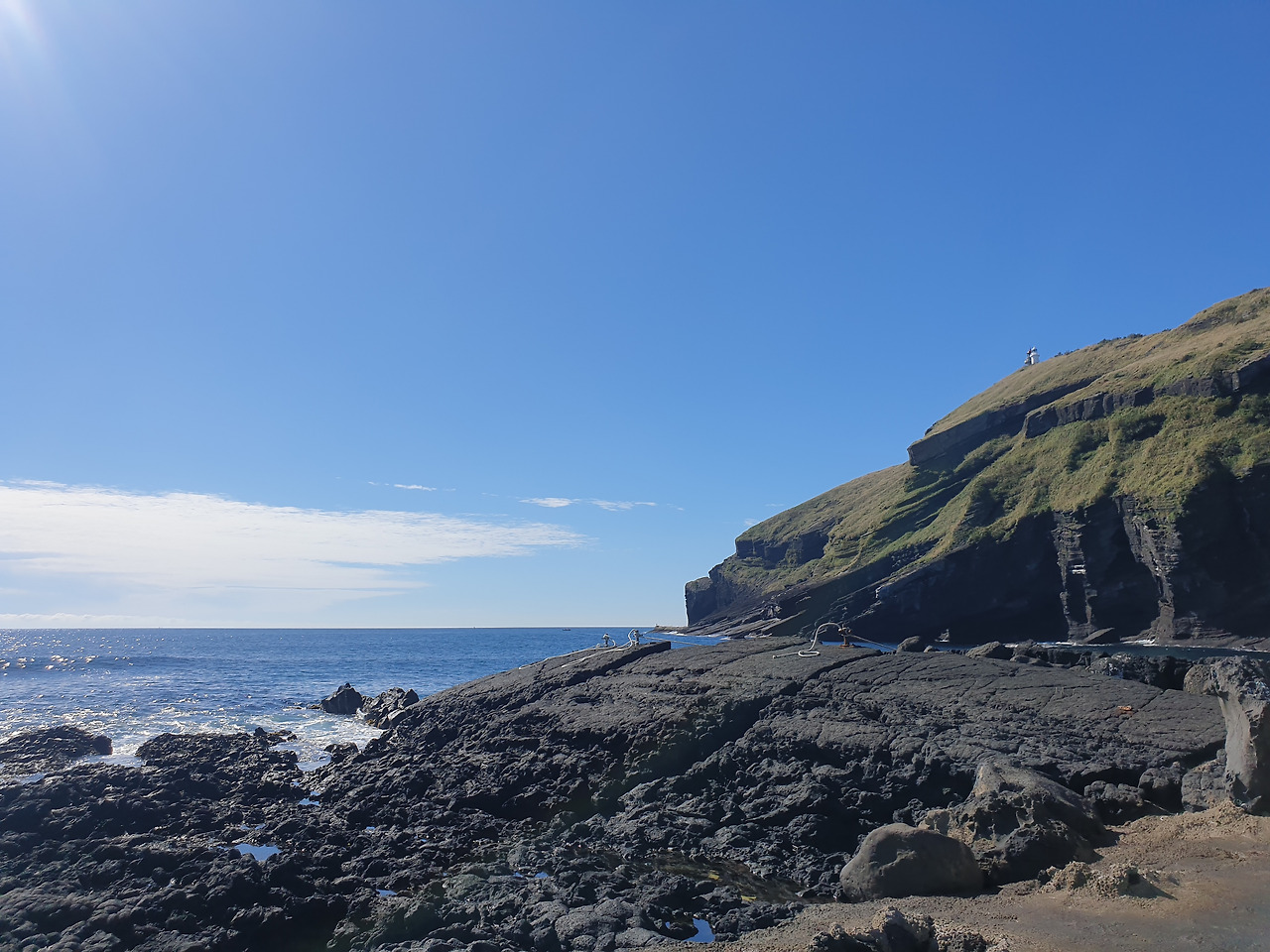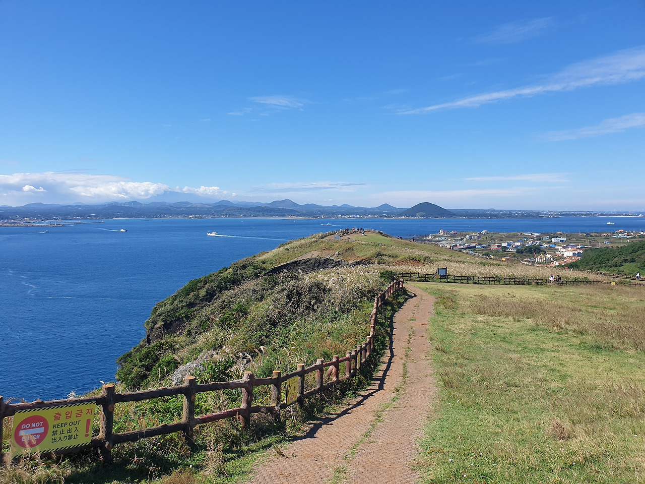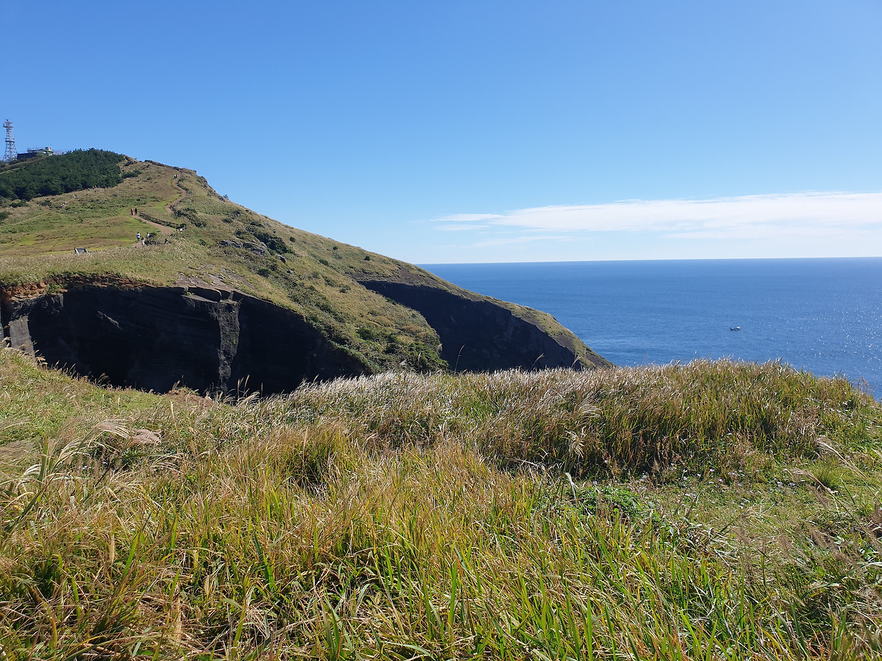 한참 펼쳐진 길을 따라 오르다 보면, 검붉은 암석, 푸른 바다, 아이보리빛 갈대와 초록빛 초원... 펼쳐진 절경이 아름답고, 깨끗한 공기에 기분이 상쾌하다. 나는 마지막 날, 폐에 우도의 맑은 공기라도 잔뜩 담아가기라도 하려는 듯 깊은 숨을 들이쉰다.