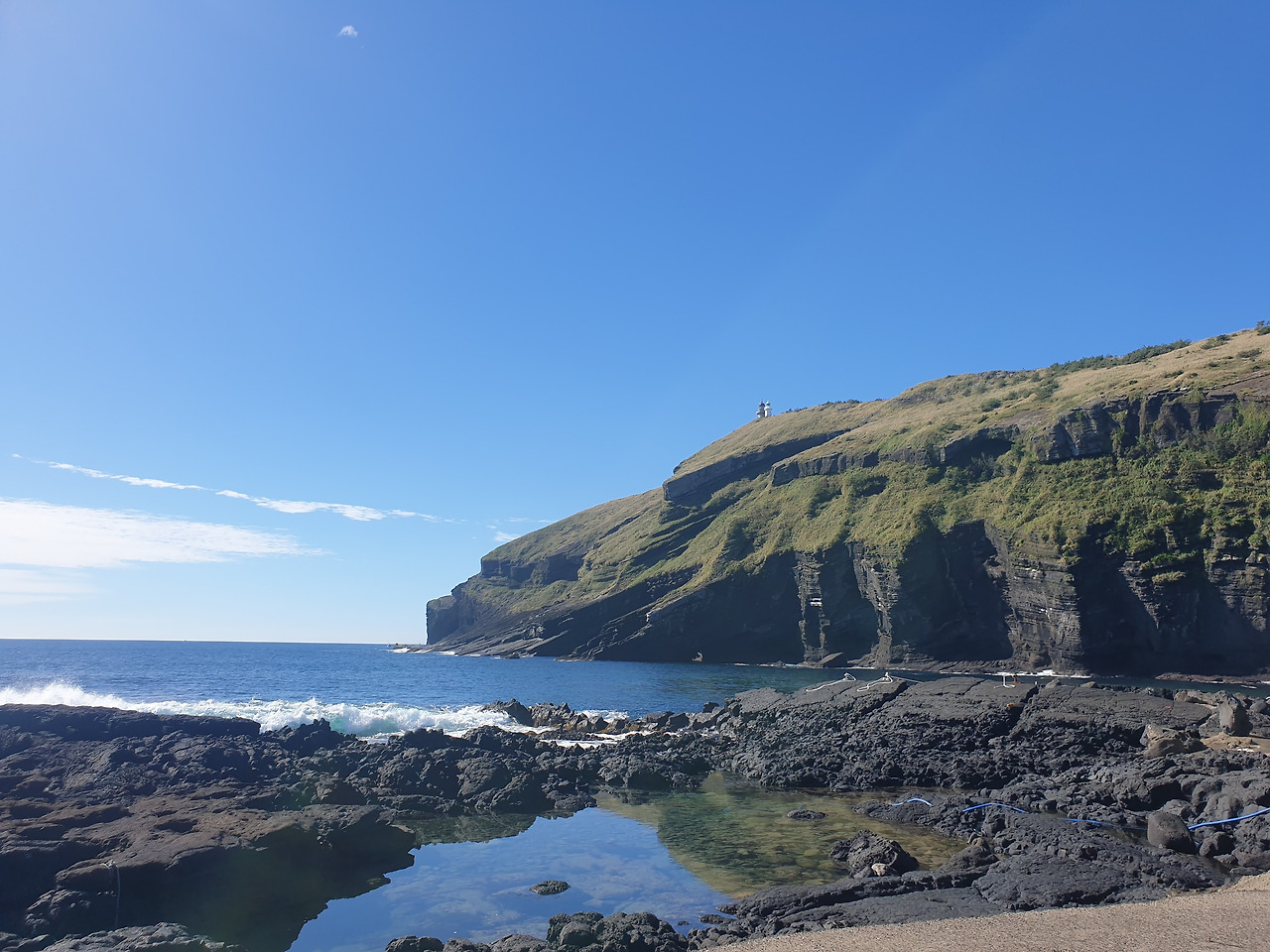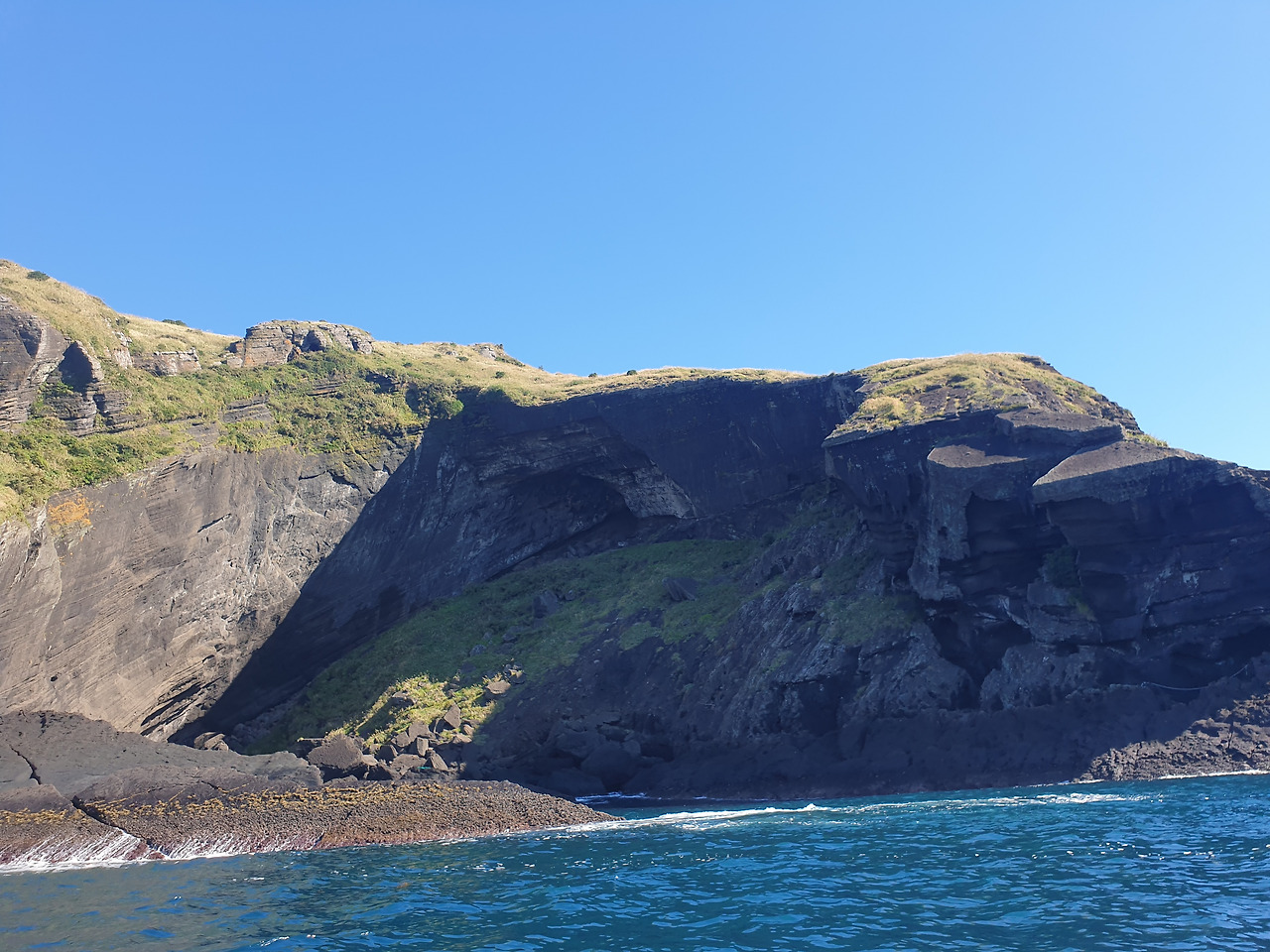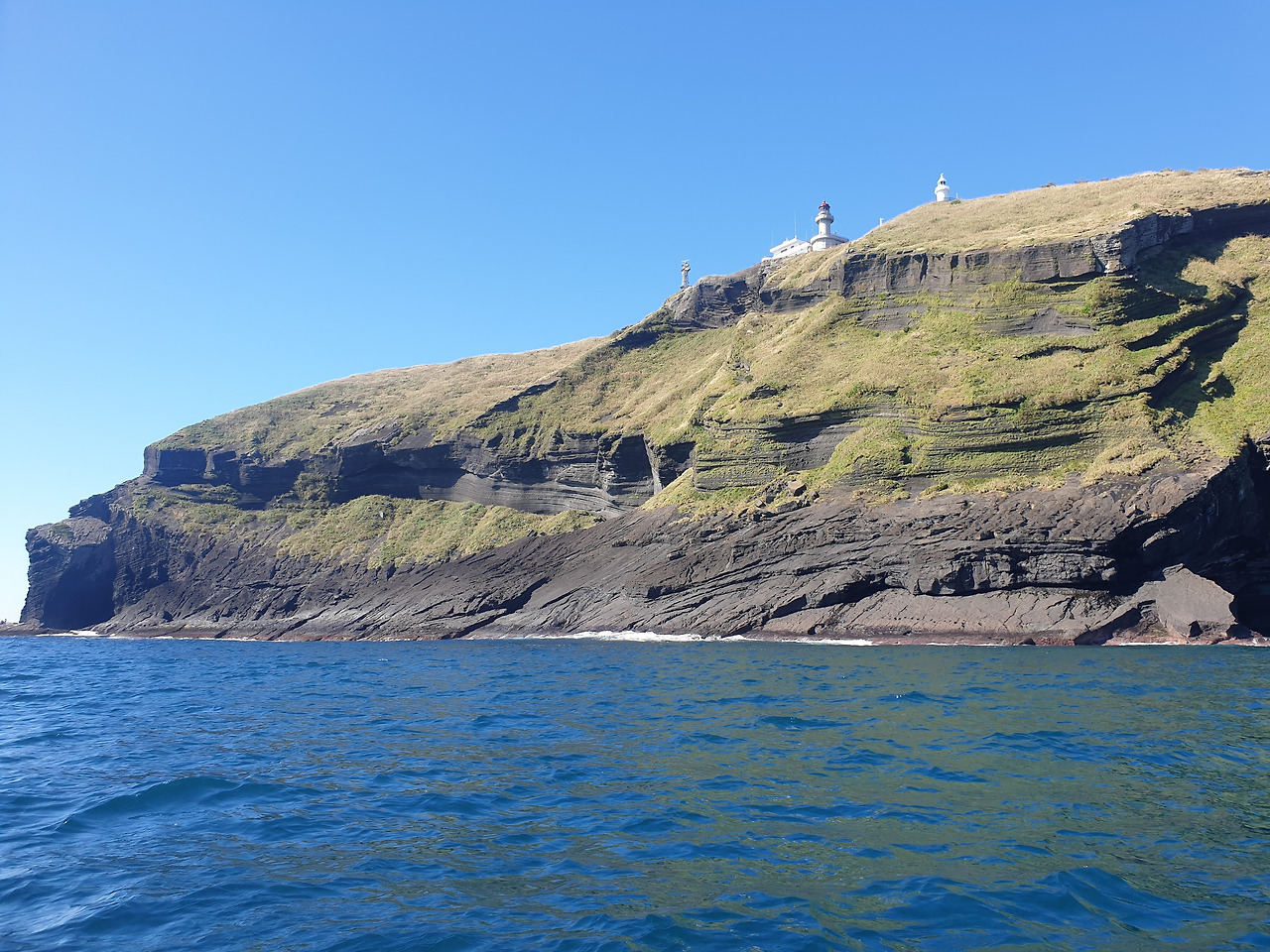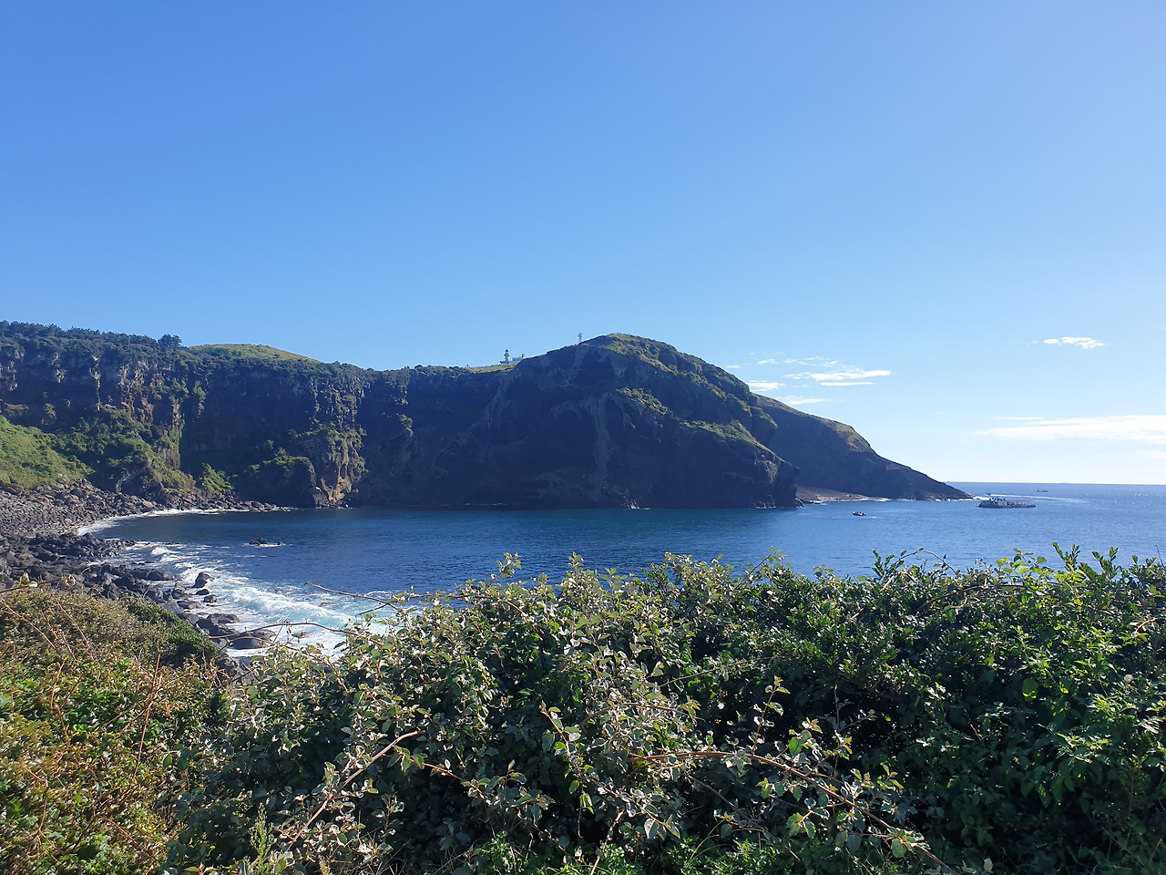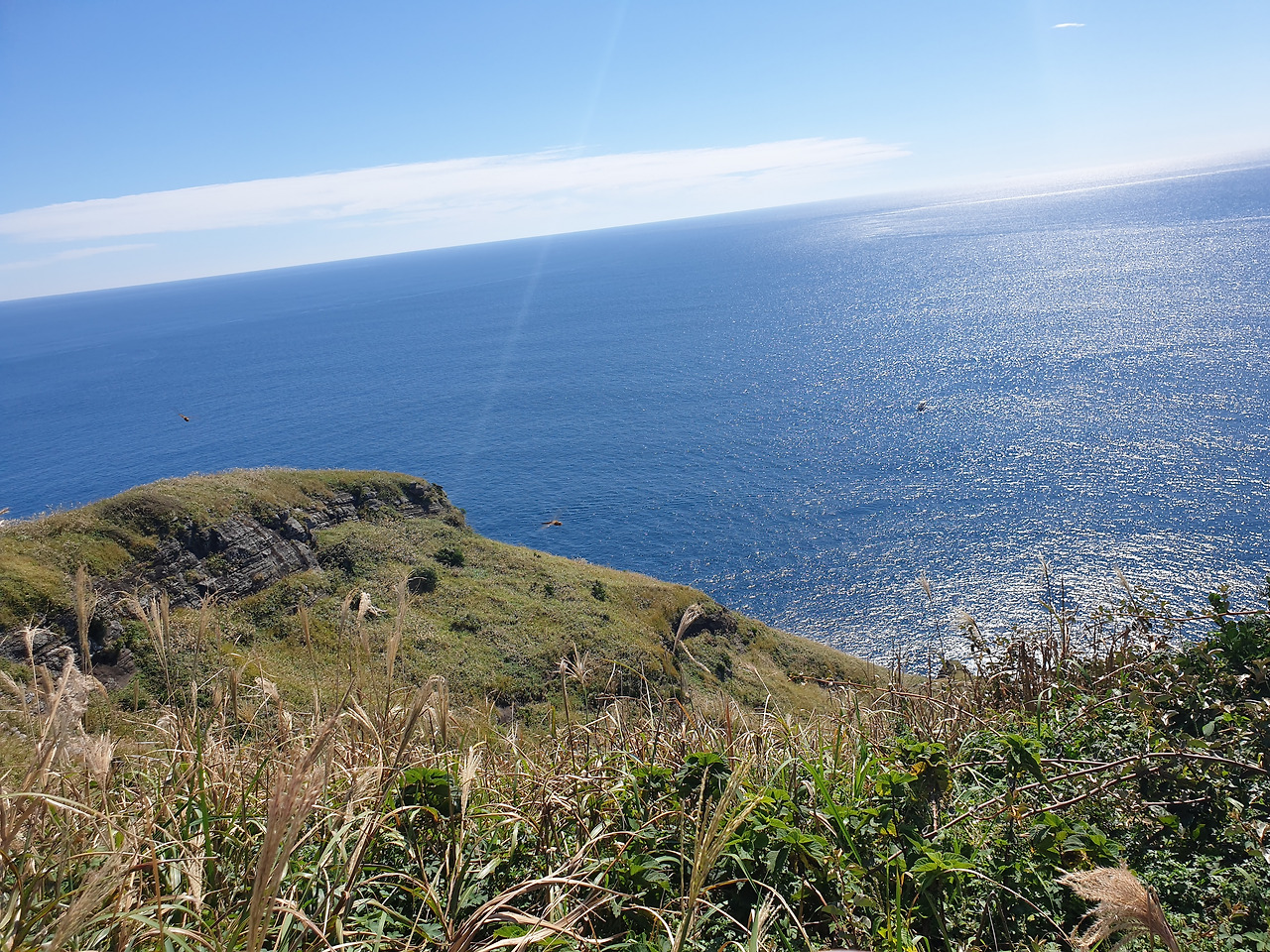 한참 펼쳐진 길을 따라 오르다 보면, 검붉은 암석, 푸른 바다, 아이보리빛 갈대와 초록빛 초원... 펼쳐진 절경이 아름답고, 깨끗한 공기에 기분이 상쾌하다. 나는 마지막 날, 폐에 우도의 맑은 공기라도 잔뜩 담아가기라도 하려는 듯 깊은 숨을 들이쉰다.