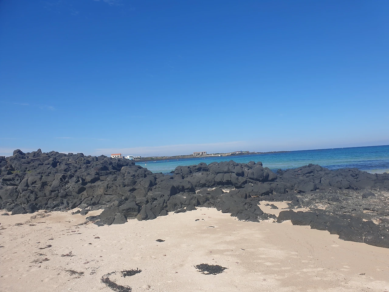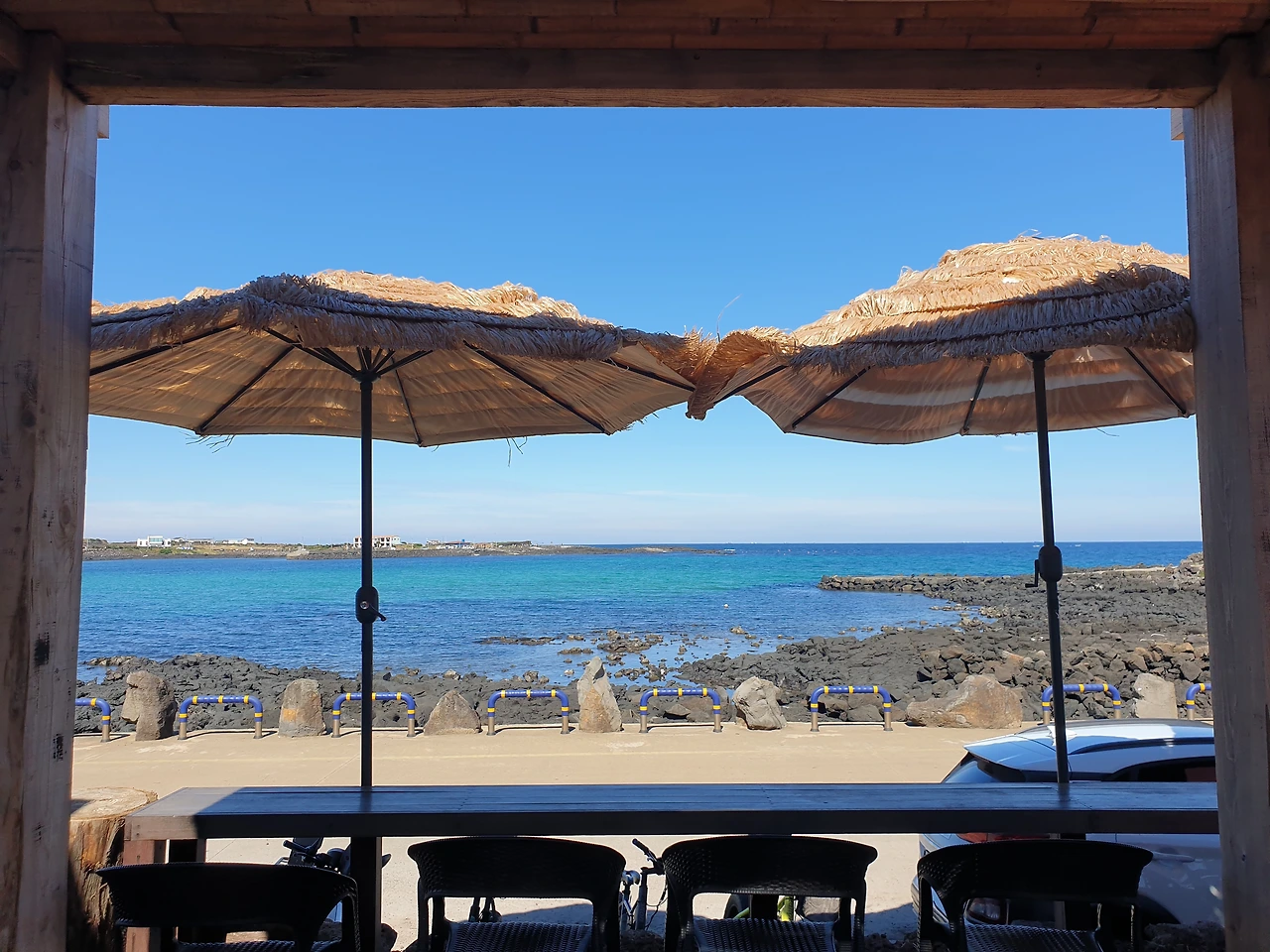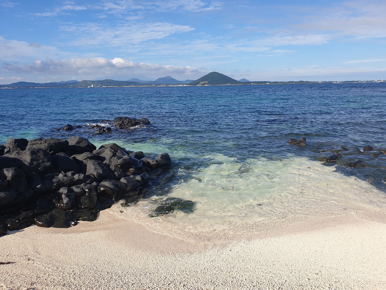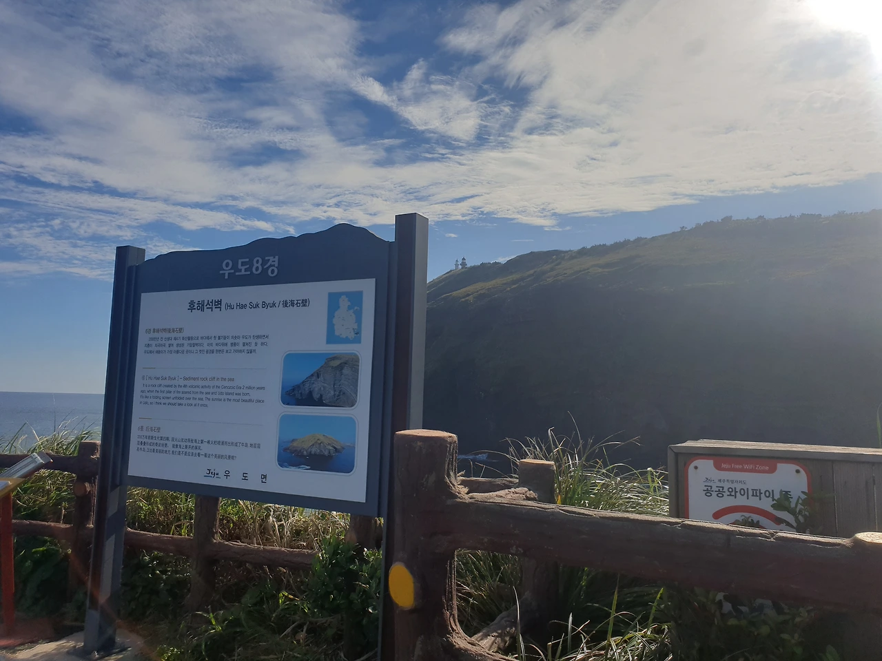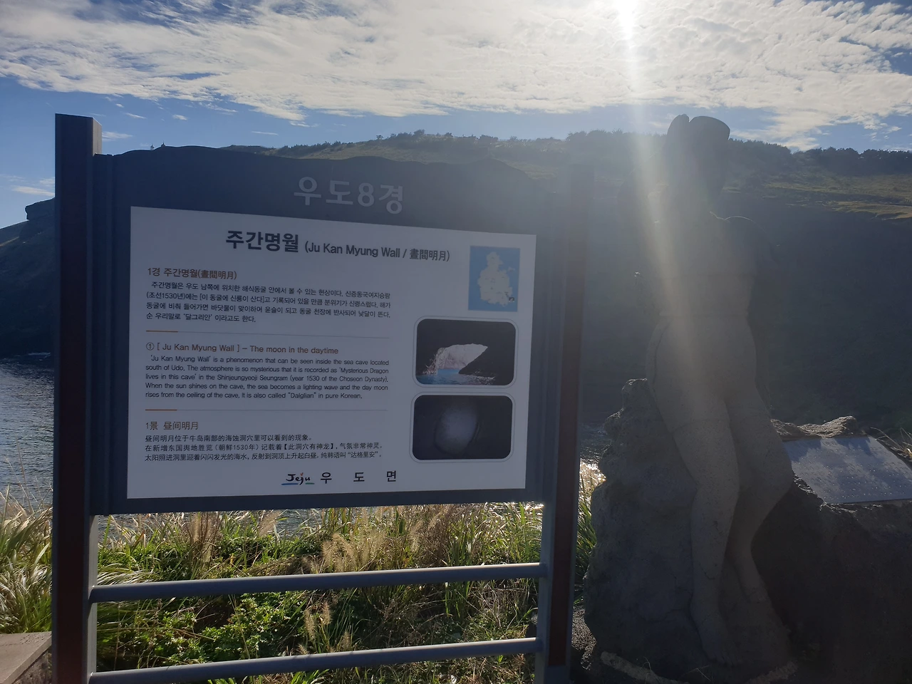 반나절이면 돌아볼 수 있다는 작은 섬 우도에서 지나가는 길에 마음에 드는 곳이 나타나면 그냥 차를 세워야지 하는 마음으로 여유롭게 드라이브 중인데, 옆자리에 앉은 엄마가 우도 배편에서 들고 온 우도 8경 안내서를 보시더니, 8경 중 첫 번째 주간명월이 10시에서 11시 사이 임을 가리킨다. 그때가 9시 반쯤 되었던 것 같다.
