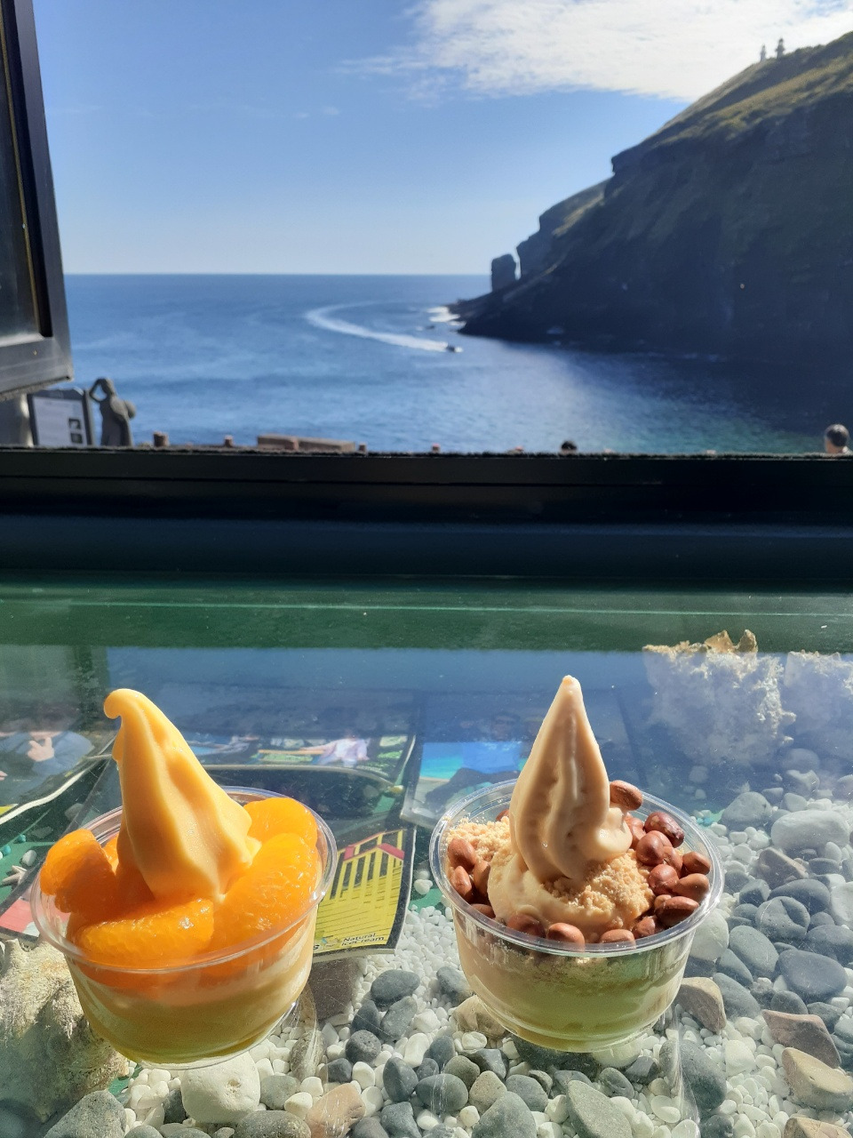 눈으로 먹어도 배부른 듯한 비주얼의 돈가츠와 우도 명물 땅콩 아이스크림. 개인적 취향으로는 땅콩 아이스크림은 땅콩 토핑이, 아이스크림은 천혜향 아이스크림이 더 상큼하니 맛있었다.