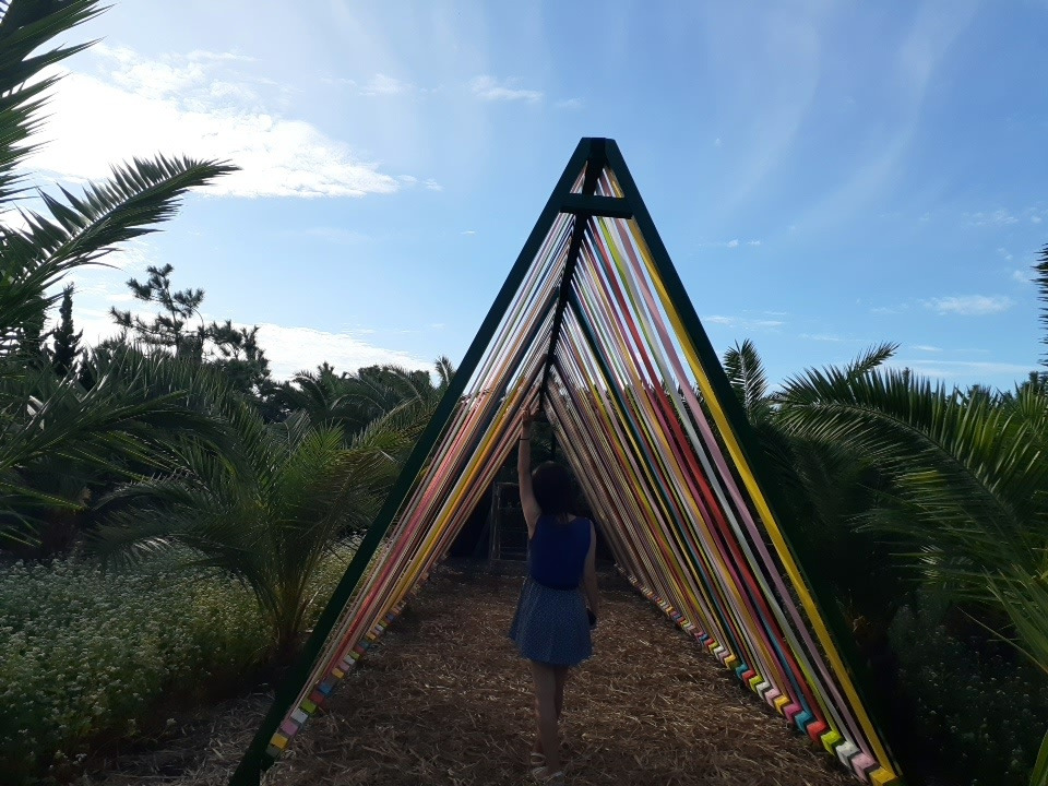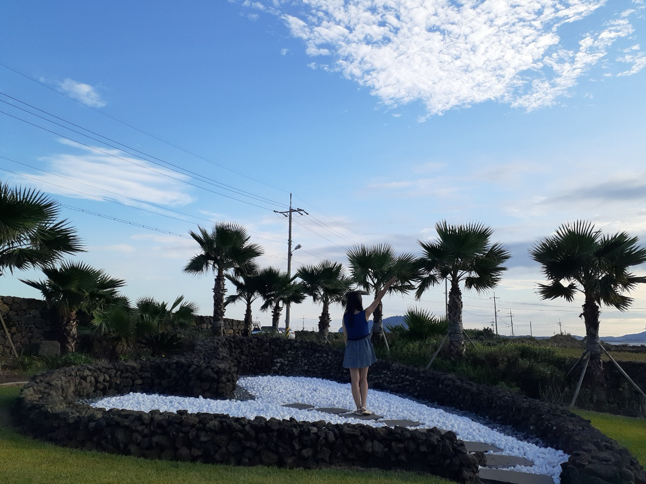소박한 크기의 우도에 꽉 찬 코스의 유명한 곳을 제법 많이 둘러보았지만, 선착장으로 가야 할 시간까지 아직 여유시간이 좀 남아 이 마저도 아까운 마음에 급하게 검색으로 가본 우도 정원. 사실 이미 예쁜 핑크 뮬리를 많이 봐서 큰 감흥을 덜 했지만 우도 정원의 명물은 야자수였다. 서쪽 제주도의 야자수를 보지 못한 아쉬움을 우도 정원에서 달래고 왔다. 덩치 큰 야자수 길에 들어서면 이국적인 정취가 물씬 풍기고 무엇보다 여름철 같은 날씨에 시원해서 좋았다.