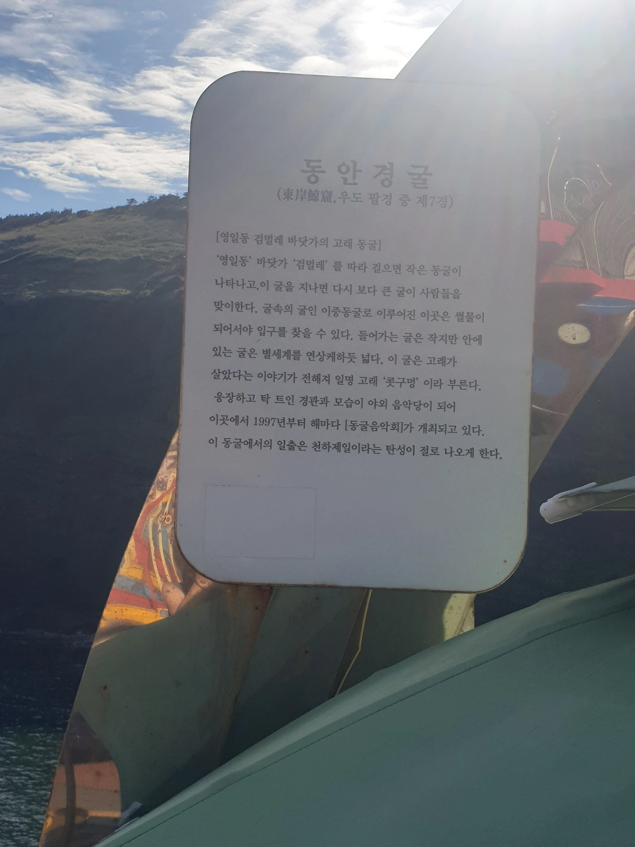 동굴 속에 뜬 달을 보셨냐는 질문에 신이나 크게 호응했더니, 딱 이 시간대에만 볼 수 있어 행운아만 볼 수 있는 거라며 가는 손님의 기분마저도 좋게 만드신다. 어제도 날씨가 좋았으나 파도가 세서 운행을 하지 않고 며칠 째 계속되는 비에 이번 주는 오늘이 처음 연 거란 말씀도 들었다.