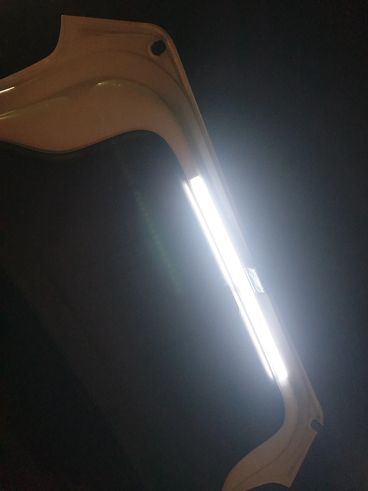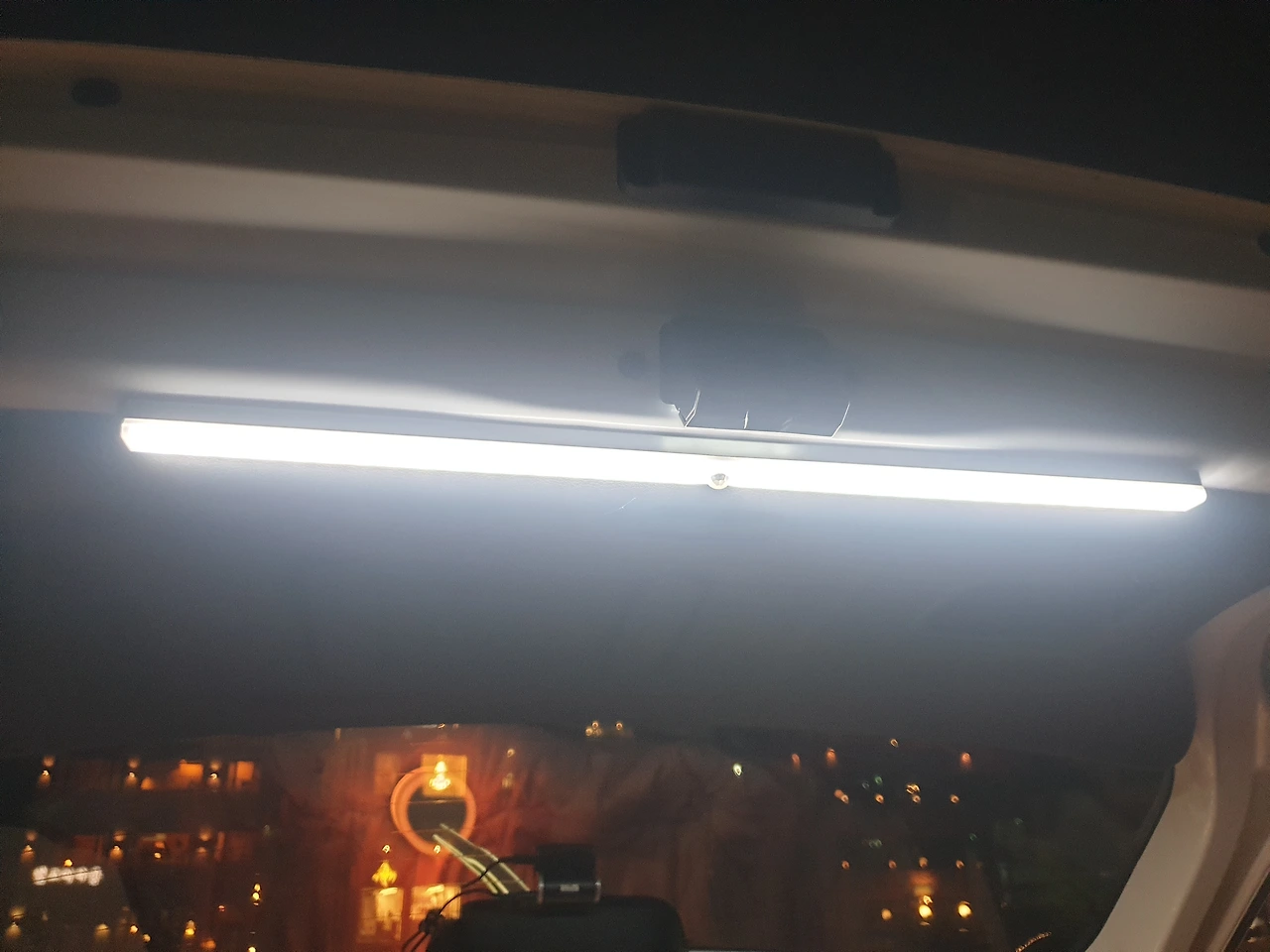 2. 이동식 조명: 밤에는 필수. 원래는 스탠드는 자리를 차지하다 보니 렌지대 안 천장에 달려고 사둔 충전식 무선 조명인데, 철에 붙는 자석이 부착되어 있다. 그래서 앉아서 집에서는 책 읽는 위치에 따라 렌지대 쪽에 붙였다가 책상에도 옮겨 붙이다가, 메뚜기 마냥 옮겨다니기만 하던 스탠드 대용 조명이다. 지금은 아예 거실 조명을 큰 걸로 바꾸면서 필요 없어져서 기억에서조차 사라졌던 아이인데, 랜턴을 찾다가 갑자기 떠올랐다. 철에 달라붙을 수 있도록 자석이 달려 있어 차량에 여기저기 옮겨 붙여 놓을 수 있어 차박시 편하다.