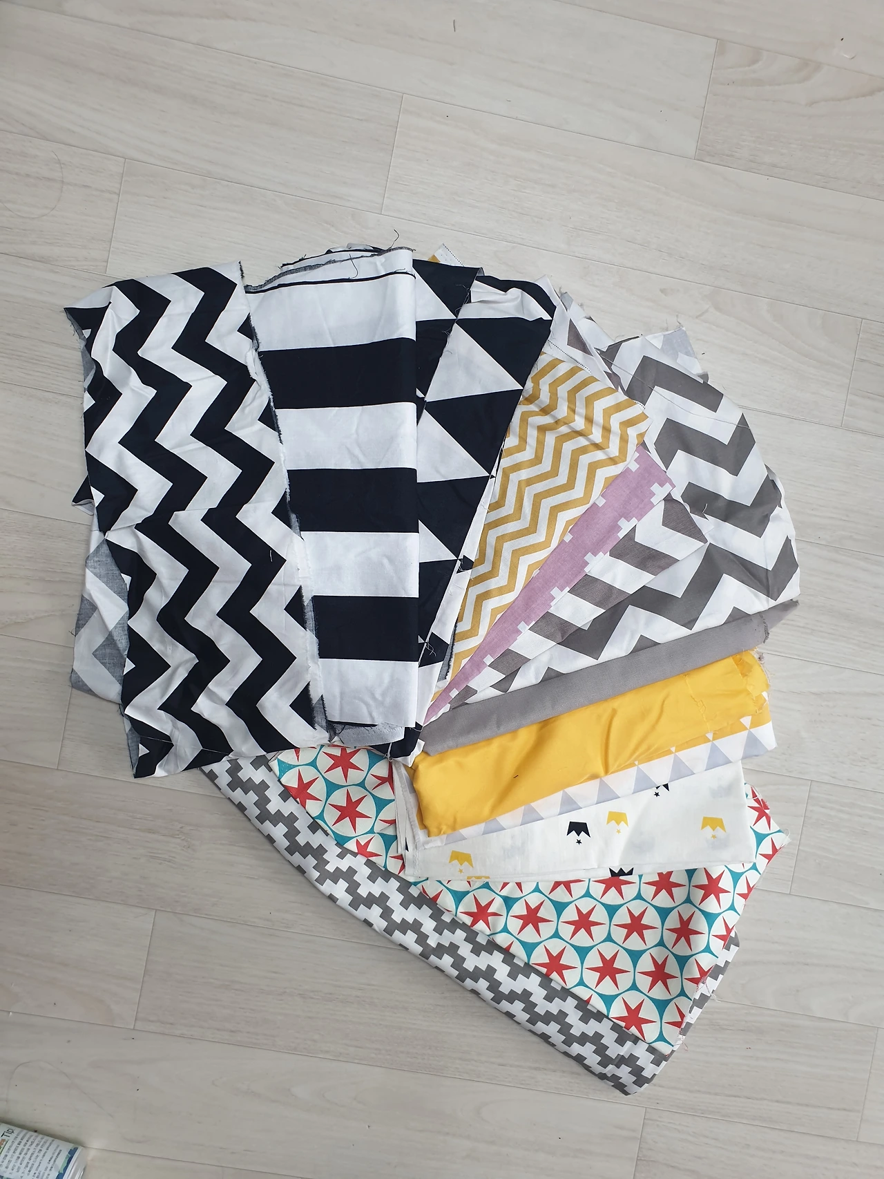 6. 식탁과 식탁보: 막상 써보니 사실 생각보다 차체가 낮아 앉아 있기란 불편해 좌식 테이블보다는 차량 종류에 따라 야외 테이블과 의자를 가져올 것을 더 추천. 나무 테이블을 더럽히는 것도 막고, 사진도 이쁘게 찍고 싶다면 식탁보까지 챙겨 오는 센스! 사둔 식탁보가 없어 쿠션과 커튼을 만들려고 예전에 사뒀던 유럽풍 천을 하나를 테이블 위에 놔뒀더니, 좀 더 감각적이 된다. 맥시멀 리스트답게 유럽풍 천도 다양하게 있는데, 그날그날 차박 컨셉에 따라 혹은 기분에 따라 식탁보 대용 천을 바꿔 들고 가서 꾸며볼 예정이다.
