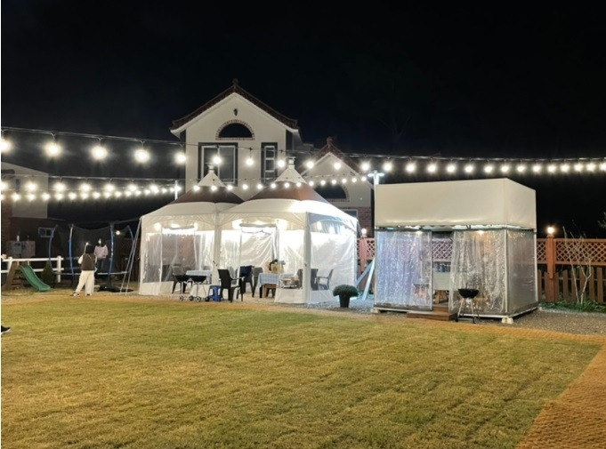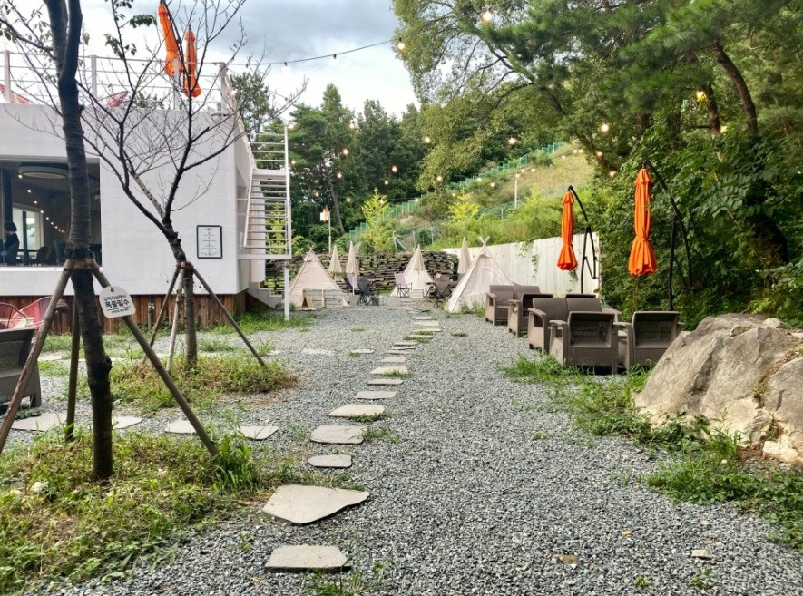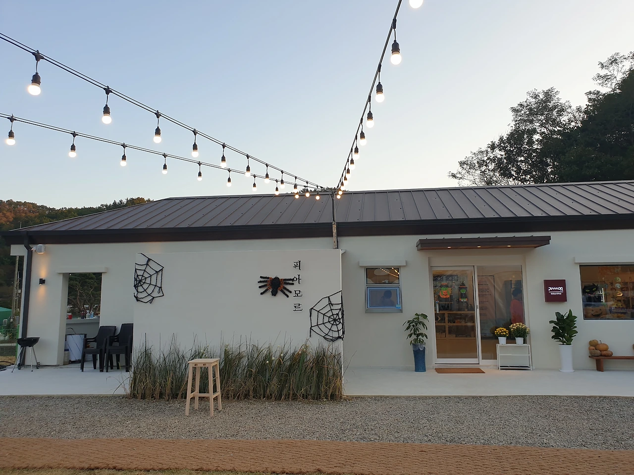 2. 부산 제이스펜션 & 글램핑: 아쉽지만 베이스 캠프는 내년 초까지 공사 진행 예정이라고 하네요. 글램핑장은 계속 운영하고 있고 북카페도 열려있어서 내년초까지는 글림핑장 구경과 북카페로 만족해야 할 것 같네요. 북카페는 인테리어가 모두 나무라 앉아 있으면 원목 향기가 은근하게 나고 조명이 켜졌을 때 더 예쁩니다.