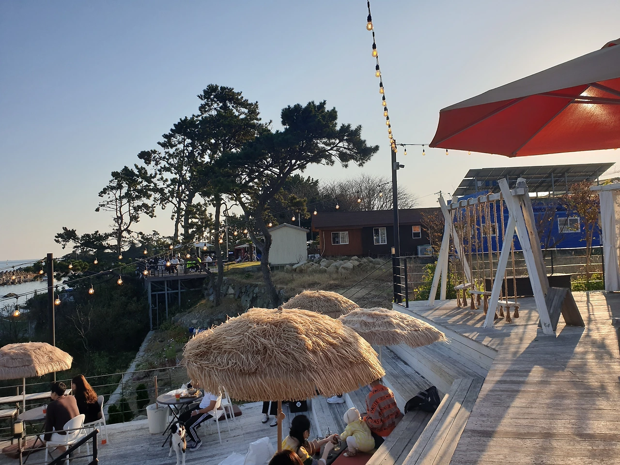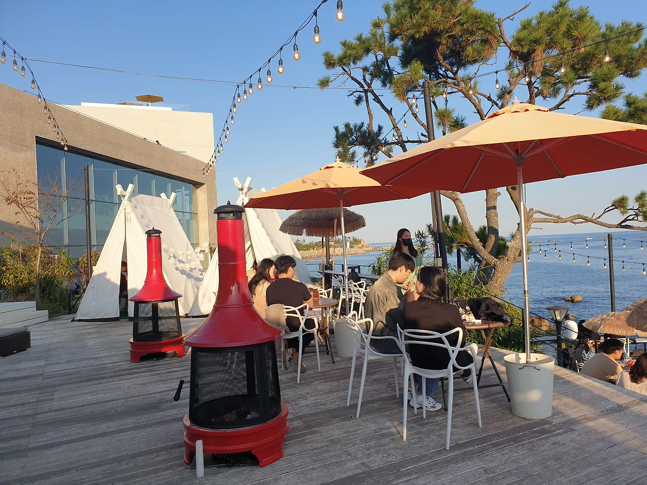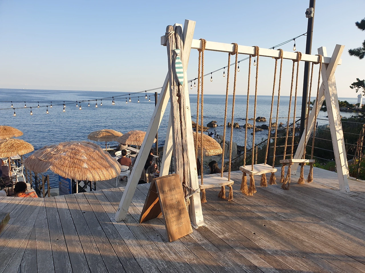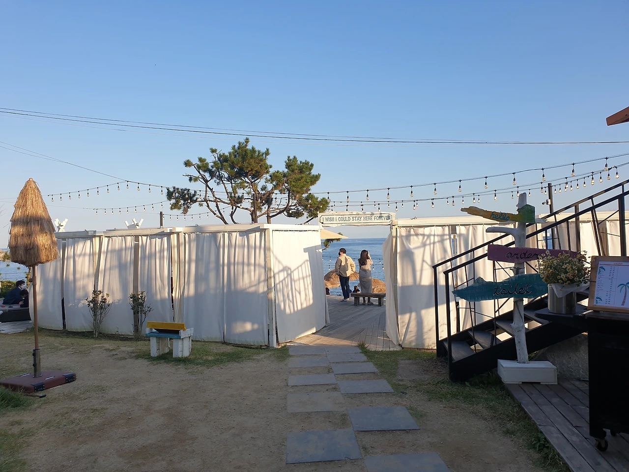 5. 울산 시선 310: 흰색 천막과 군데군데 장작불, 화로, 그네, 특히 동남아 감성까지 자극하는 파라솔이 특색있는 카페. 코앞에서 들려오는 바다소리와 바다내음, 계단만 내려가면 맞볼수 있는 해변 모래사장과 바다로 가족단위 손님도 꽤 많이 보입니다. 라면과 브런치, 양갈비구이와 맥주 등 커피 외에도 함께 즐길 수 있는 다양한 메뉴가 있습니다.