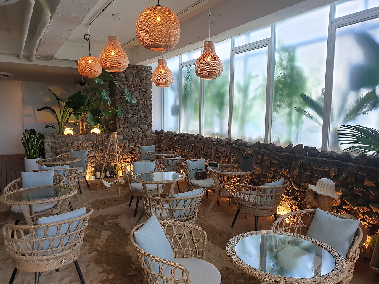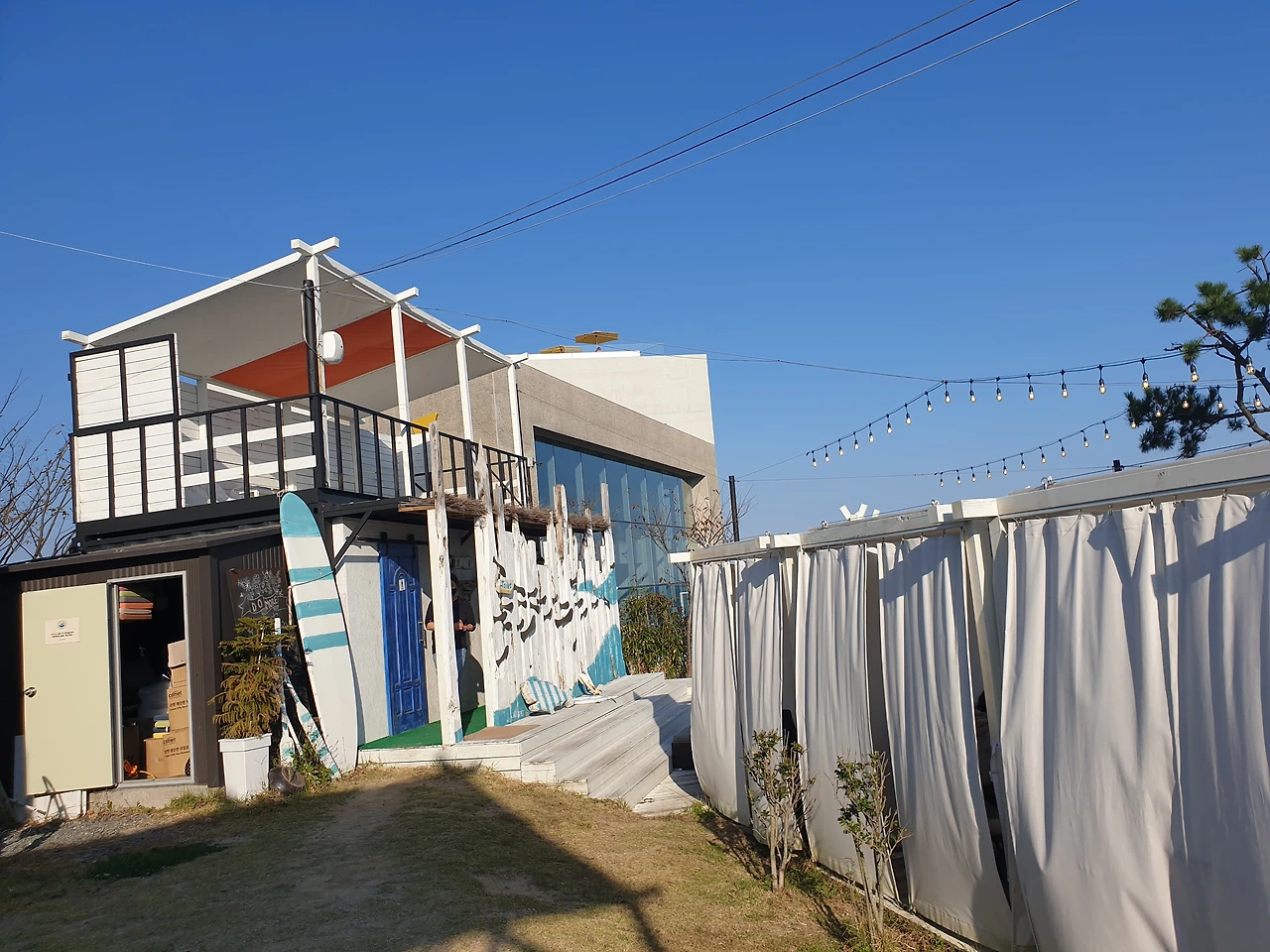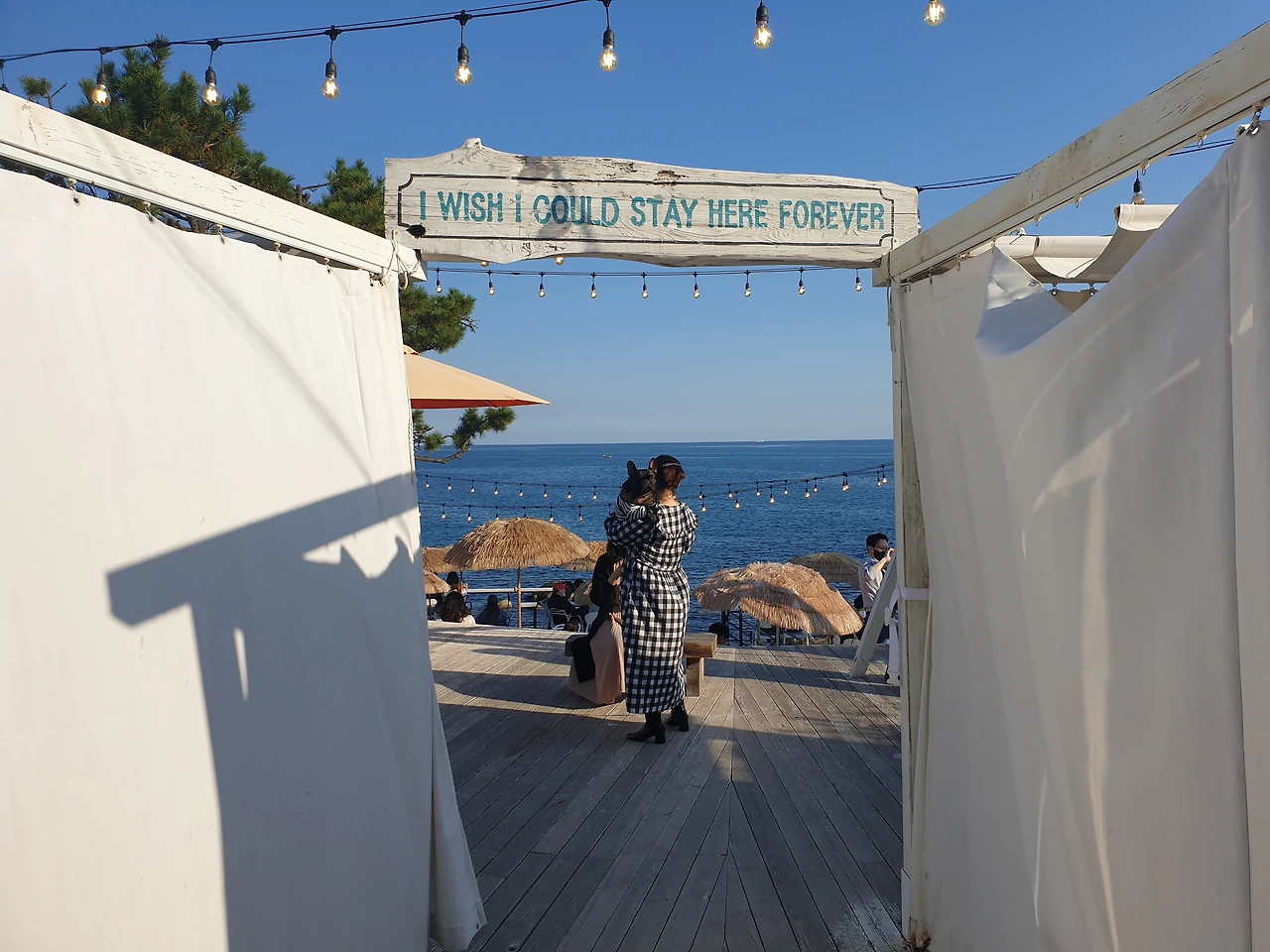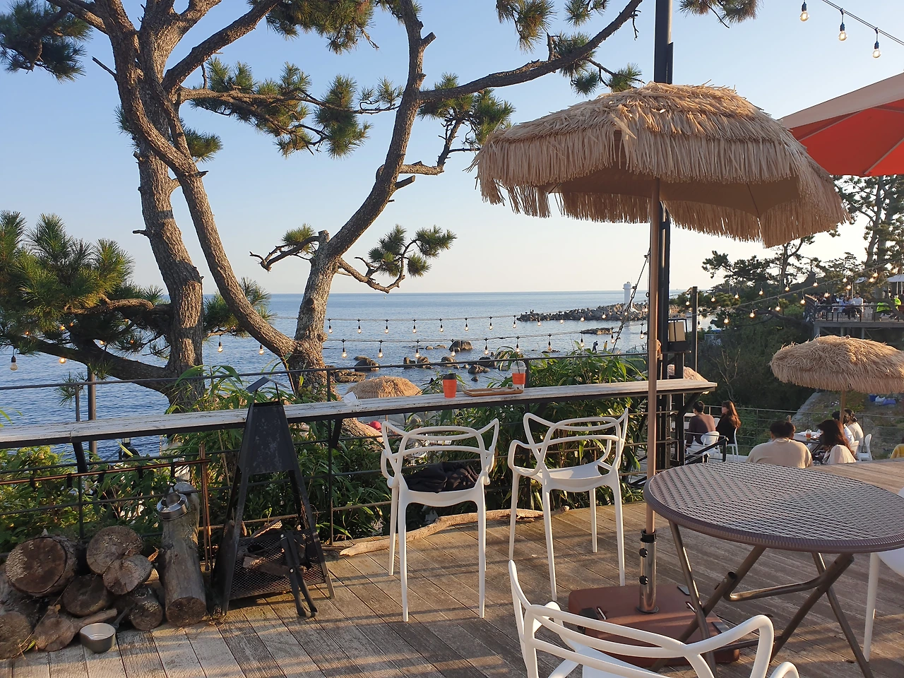 5. 울산 시선 310: 흰색 천막과 군데군데 장작불, 화로, 그네, 특히 동남아 감성까지 자극하는 파라솔이 특색있는 카페. 코앞에서 들려오는 바다소리와 바다내음, 계단만 내려가면 맞볼수 있는 해변 모래사장과 바다로 가족단위 손님도 꽤 많이 보입니다. 라면과 브런치, 양갈비구이와 맥주 등 커피 외에도 함께 즐길 수 있는 다양한 메뉴가 있습니다.