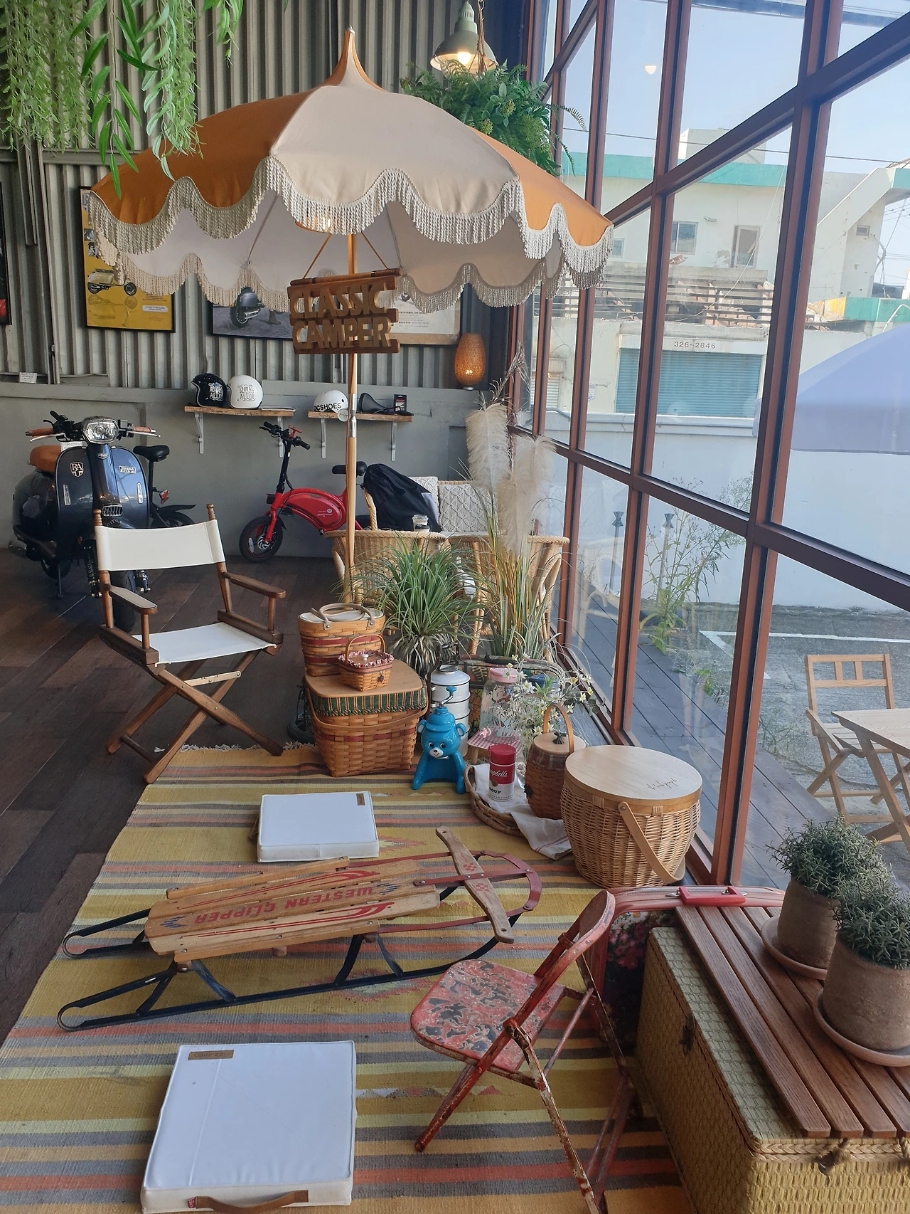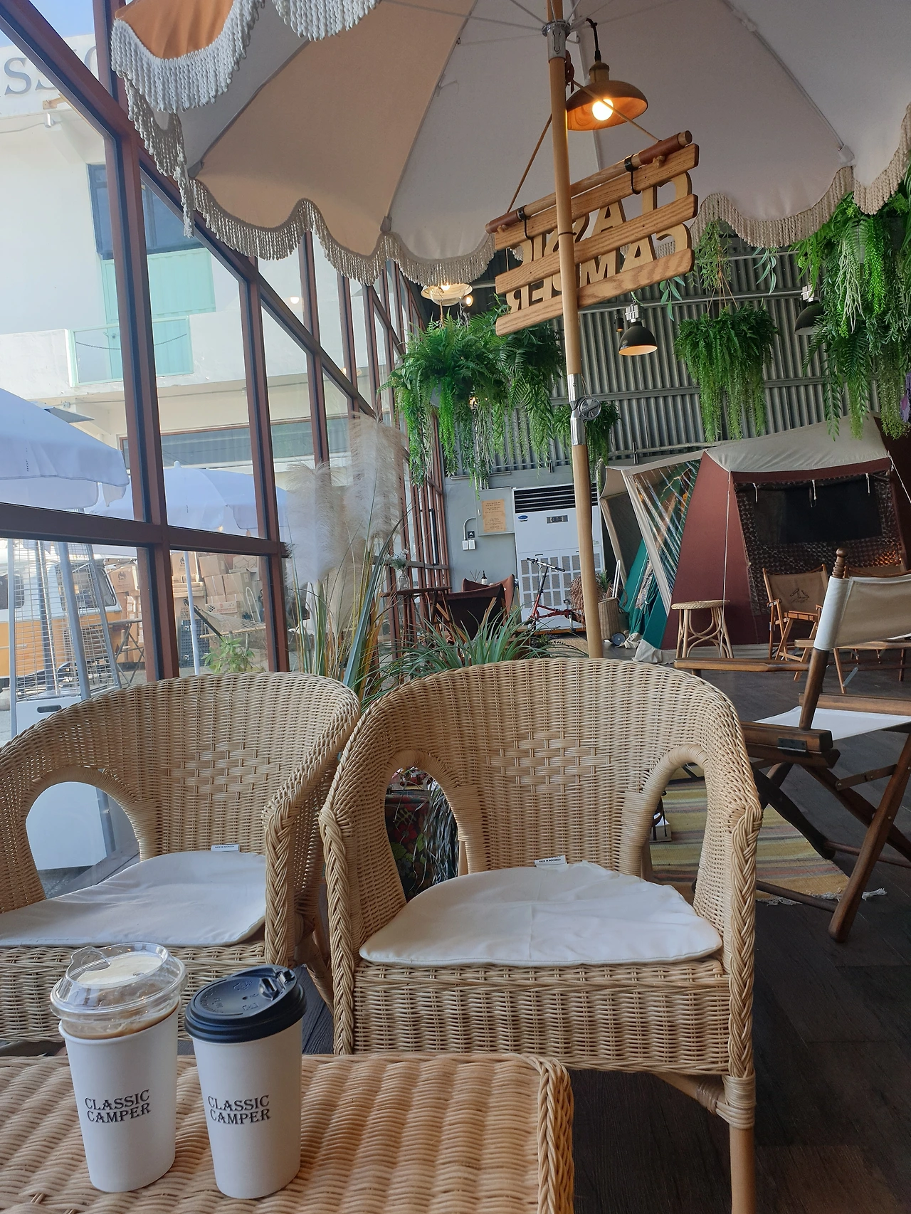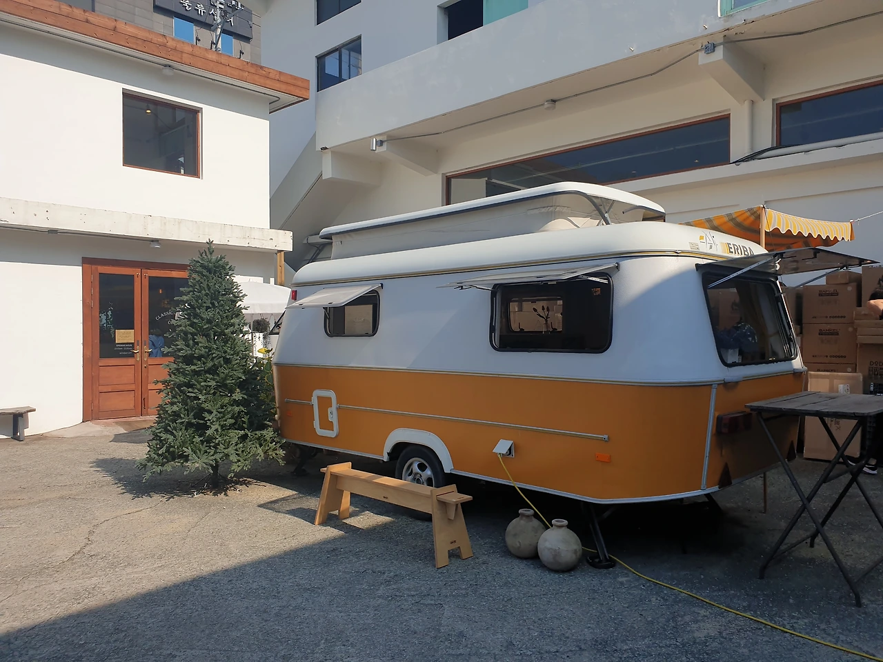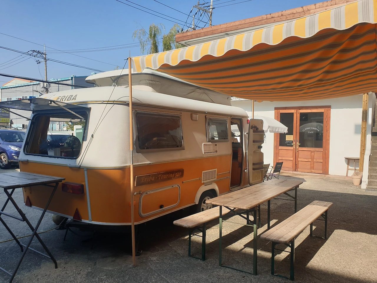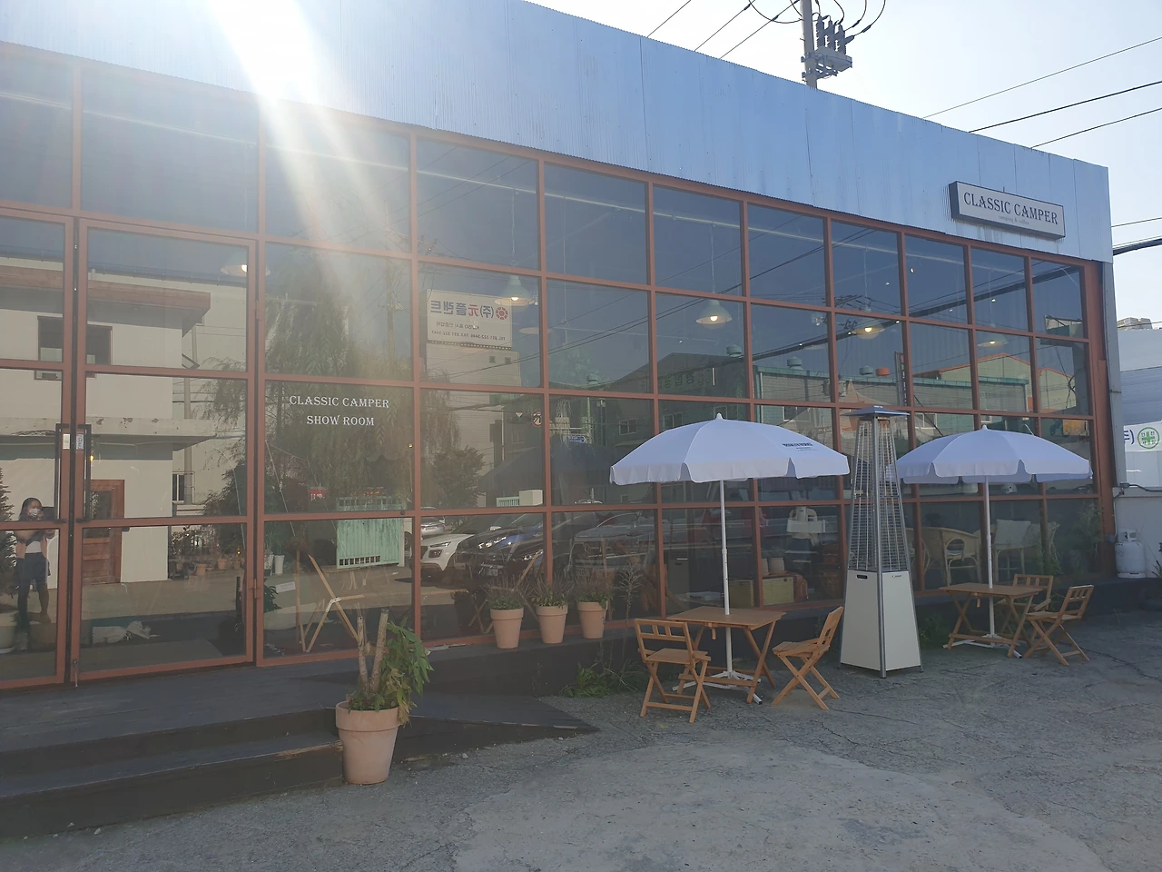 3. 부산 클래식 캠퍼: 추운 한 겨울 도심 한가운데에서도 따뜻한 커피 혹은 차 한잔으로 실내에서 캠핑 감성을 제대로 느껴볼 수 있는 곳. 이런 곳에 카페가 있을까싶은 공장 단지 안 자리잡은 카페가 이색적이면서도 묘하게 어울립니다. 바로 옆과 위층에는 캠핑용품도 함께 전시되어 판매 중이라 카페 손님 보다 오히려 용품점에 구경온 손님이 더 많을 정도로 다양한 물품을 구비한 캠핑용품점이에요. 캠핑카 안에서 음료는 마실 순 없지만, 사진 촬영은 가능합니다.