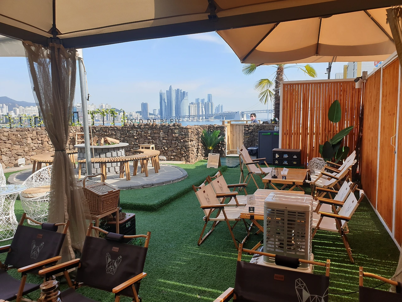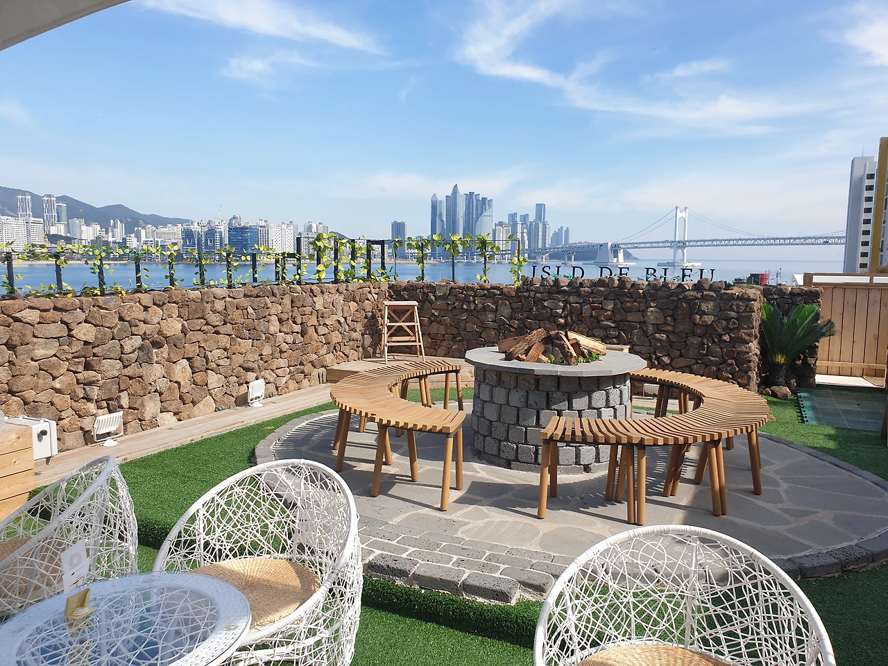 1. 부산아일드 블루 (광안리, ISLD DE BLEU): 루프탑의 캠핑 파라솔 아래 테이블과 의자에 앉아 탁트인 전망을 바라보면해변 캠핑장을 찾은 듯한, 아니 어쩌면 광안대교가 보여 그보다 나은 뷰를 제공하는 카페. 광안리 해수욕장이 내려다보이고, 광안대교와 서로 눈맞춤을 하면서 커피와 브런치, 혹은 맥주 한 잔을 즐길 수 있습니다.