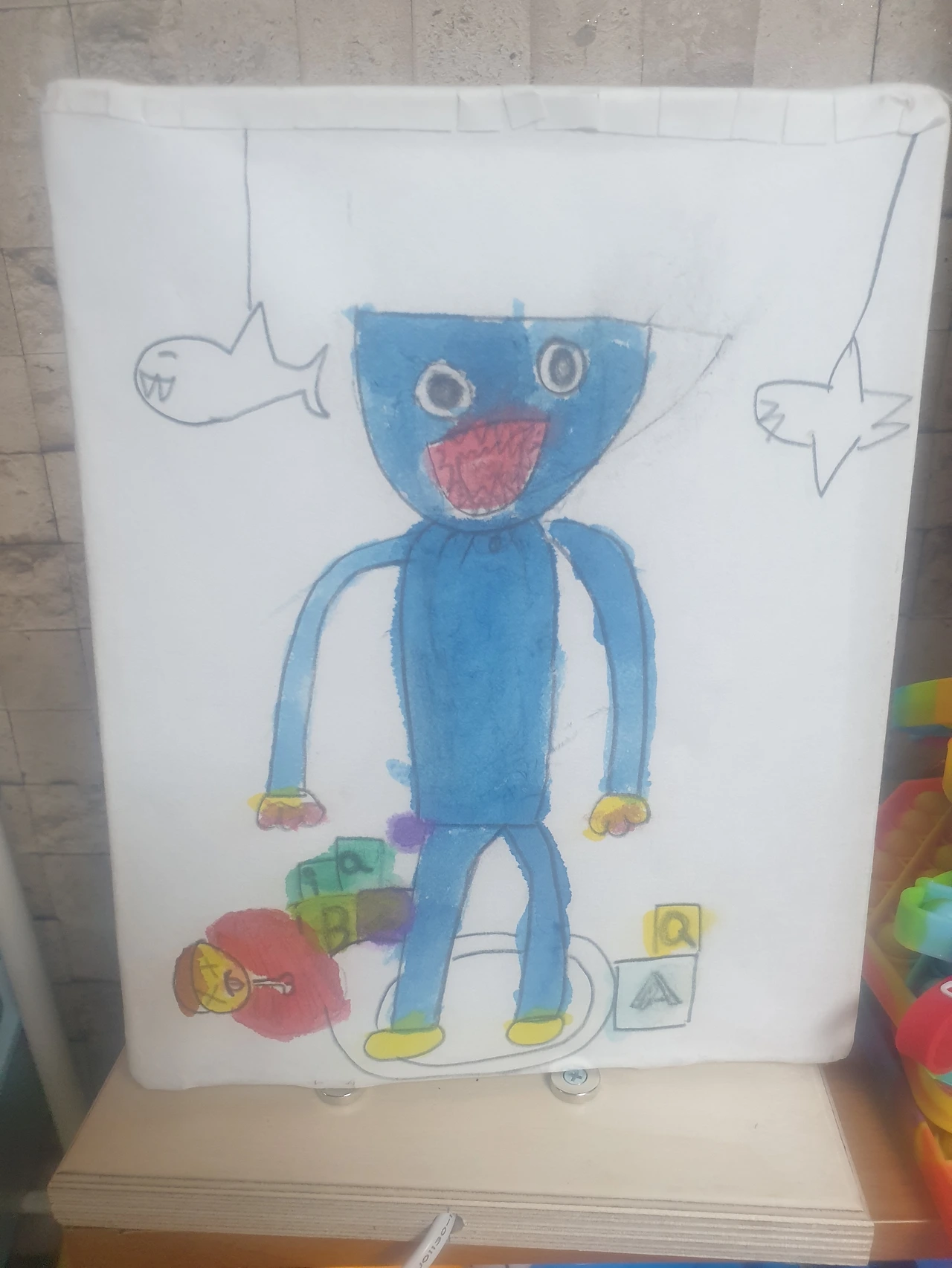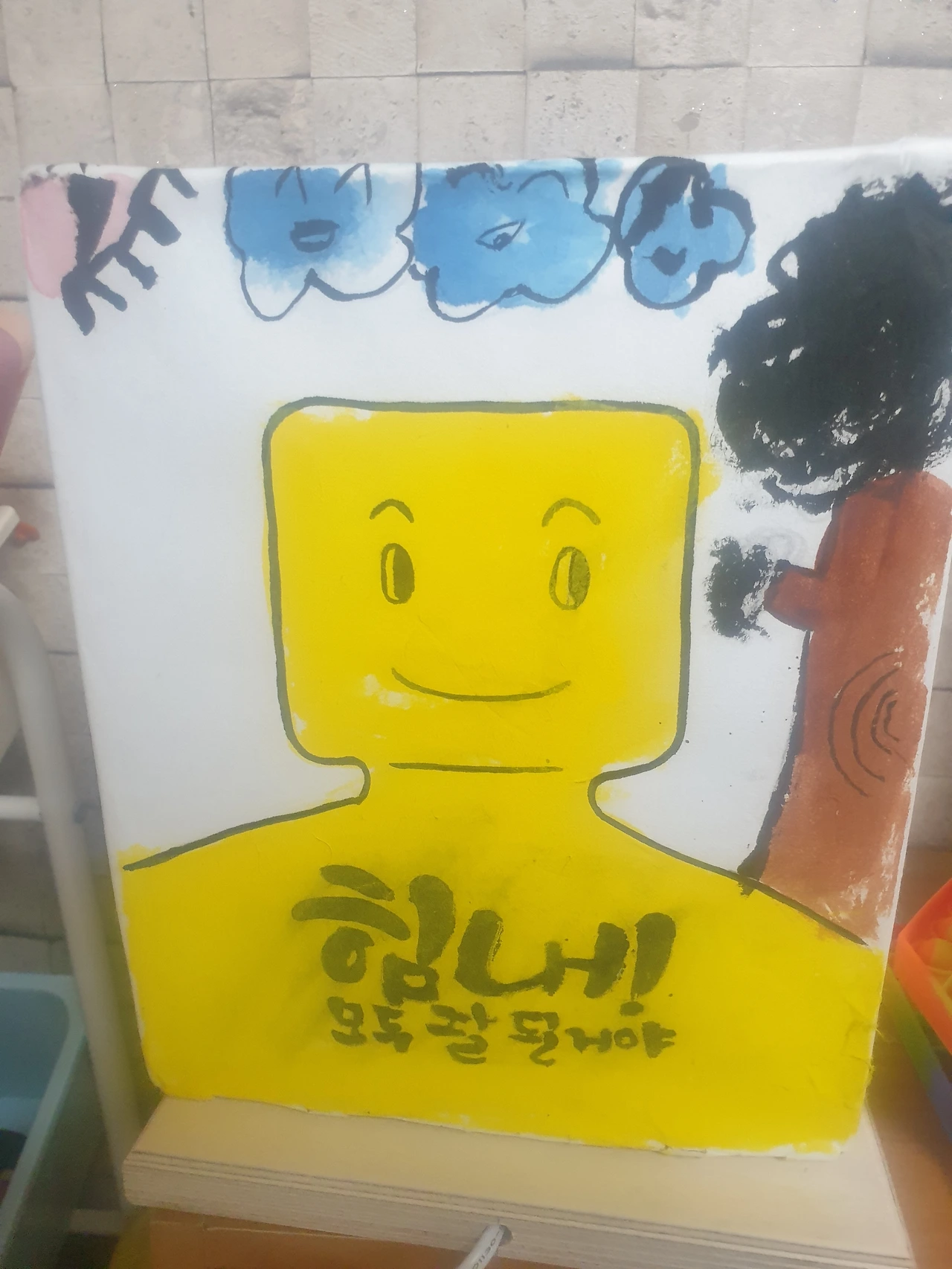 조카들 작품, 개인적으로는 먹지를 따라그려 매끈한 그림보다는 자유롭게 그린 오른쪽 허기워기 그림이 제일 마음에 든다.