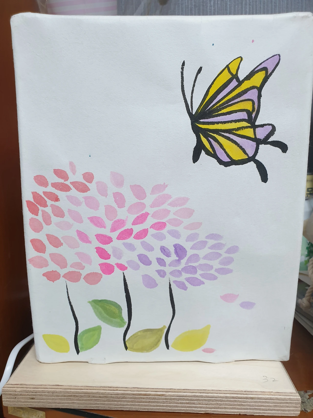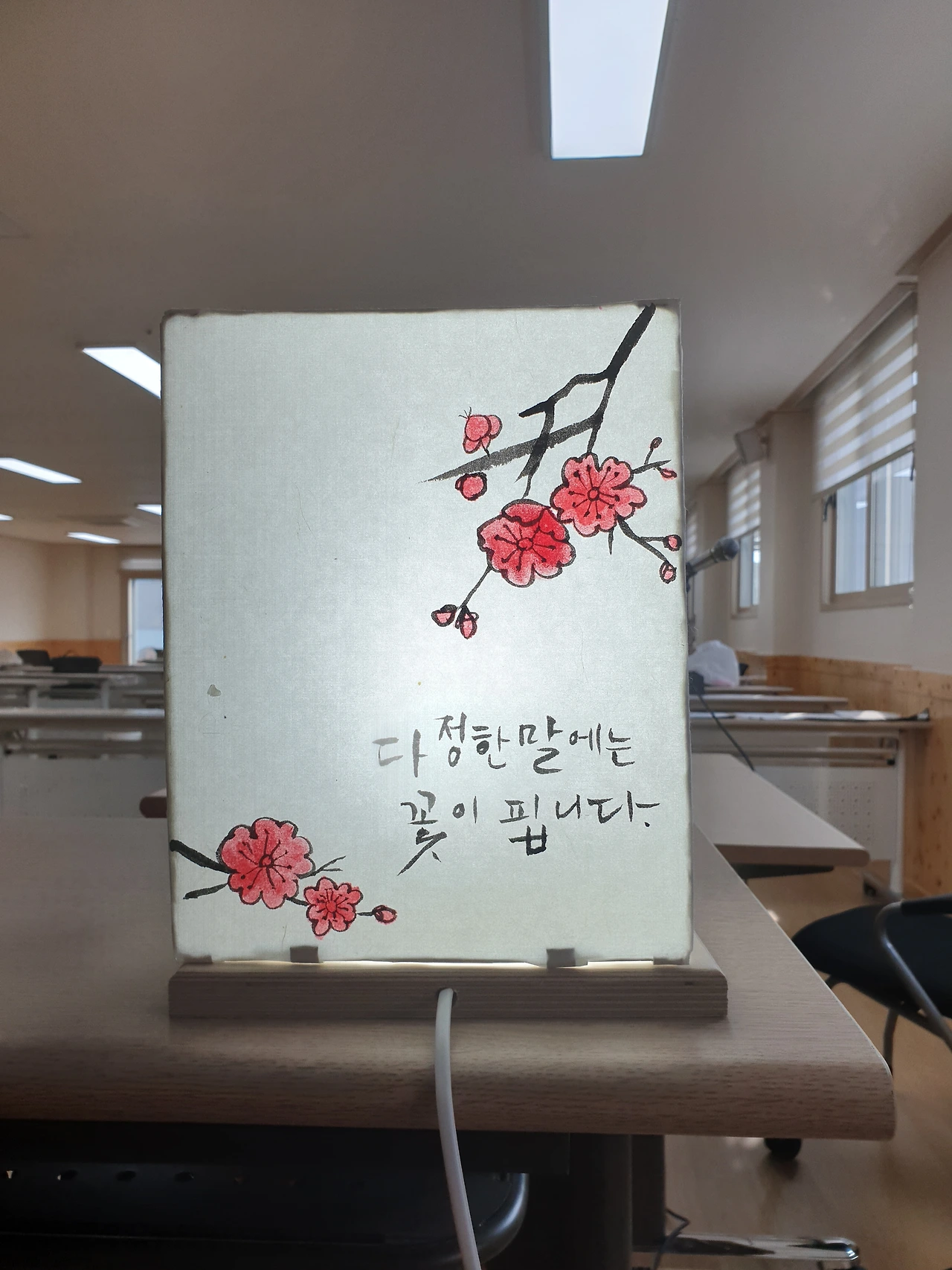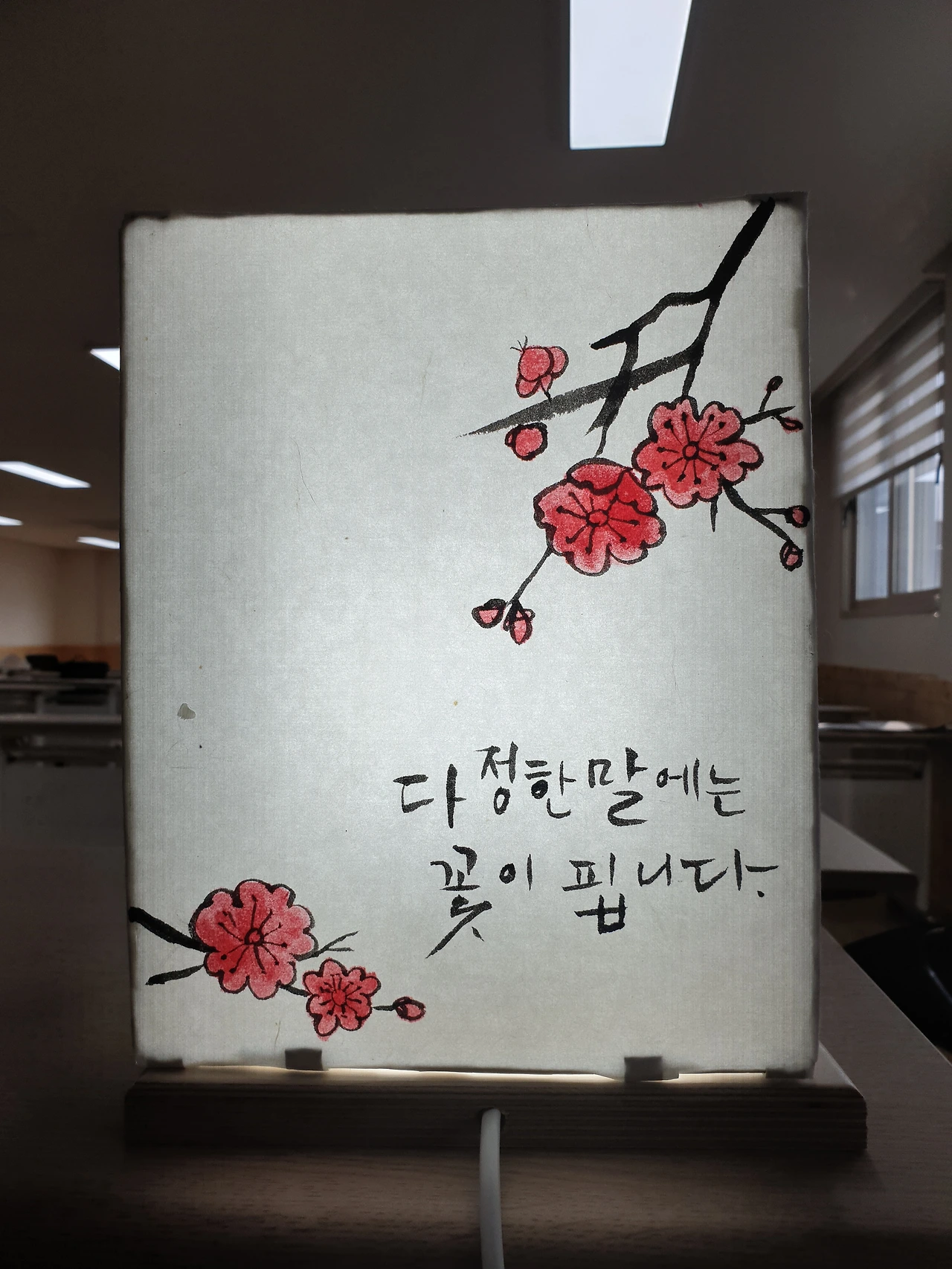 그렇게 그 순간 내 마음이 그림으로 박제되었다.그래서인지 등불에 전등을 밝히자, 내 마음도 덩달아 함께 밝아지는 듯했다. 집에서 나의 시선이 잘 머무는 티브이 옆에 놓아두니 어지럽게 휘몰아치는 듯한 내 머릿속과 새까맣게 타들어 가는 듯한 내마음속에서 흩날리는 어둠 뒤 숨겨진 곱고 밝은 빛깔이 잠잠해진 폭풍우 뒤 가만히 고개를 드러내듯, 나의 눈길이 그리고 시선이 머물 때마다 내 머릿속에서 점차 어둠이 고요히 가라앉으며 그 뒤로 감춰둔 흐릿한 실루엣이 점점 선명하게 밝아온다.요즘 여러 가지 일들로 머리가 아파 머릿속이 마냥 암흑일 줄 알았는데 내 머릿속 한편에는 지난 휴직 기간 실컷 봐온 예쁜 꽃들과 나비가 아직 날아다니고 있었음을 그림으로 꺼내 박제시켜놓고서야그 존재를알 수 있었다.그림을 보다 보면 머리 아픈 일은 희미해지고 나의 기억 한편의 좋은 추억이 점점 더 크게 자라나는 느낌이라 어떨 때는 그림 멍을 때리며 가만히 들여다보고 있기도 한다.마치 내 마음에서 오직 좋은 단편만을 가만히 꺼내놓고 들여다보는 기분이랄까. 이래서 그림을 그리며 힐링을 하나보다.