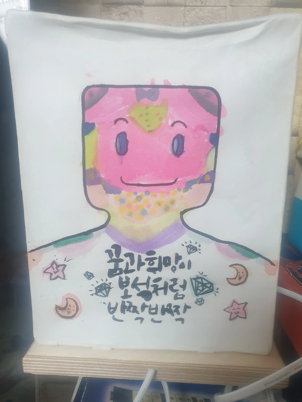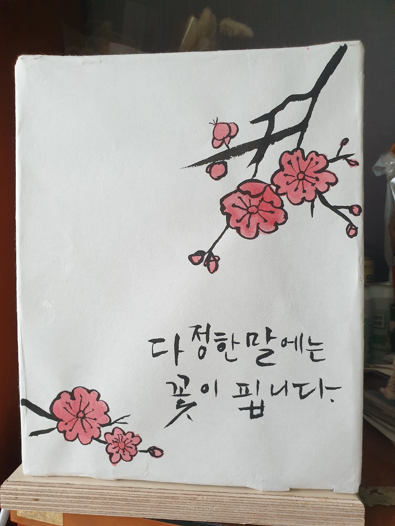 바쁘게 앞 뒤 테이블을 오가며 조카 둘과 내 한지까지 세 명분의 폭풍 가위질을 끝내고 두 조카들의 먹지와 먹물 그리기 릴레이 바통을 선생님께 토스된 후에야 비로소 내 작품에 집중하기 시작했다.