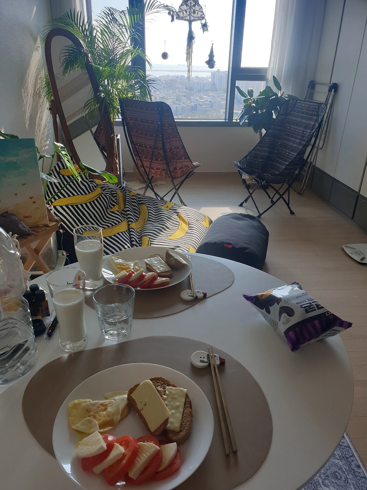 친한 동생이 드디어 기숙사를 벗어나 오피스텔로 독립을 했습니다. 진정한 나혼산 라이프를 축하하기 위해 많은 이들이 방문 러브콜을 보냈지만 퇴근 후 짬짬이 집 꾸미기가 아직도 진행 중인 터라 공식적인 초청은 미처 못하던 찰나에 영광스럽게도 첫 방문 손님이 되어 그녀의 집의 방문했네요. 코로나 덕에 오갈 데 없는 요즈음은 부쩍 그녀의 집에서 자주 약속을 잡게 되었습니다. 이미 그녀의 기숙사도 몇 차례 방문해보았지만, 오롯이 본인의 공간이 생기자 그녀만의 센스와 감각이 돋보이는 인테리어가 비로소 살아나는 듯했습니다. 새 집 감성에 잘 어울리는 요즘 핫한 잇 아이템으로 꾸며진 집을 여기저기 둘러보다 보니 저도 갑자기 샘솟는 인테리어 열정에 뜬금없이 이사 가고 싶어 지네요.