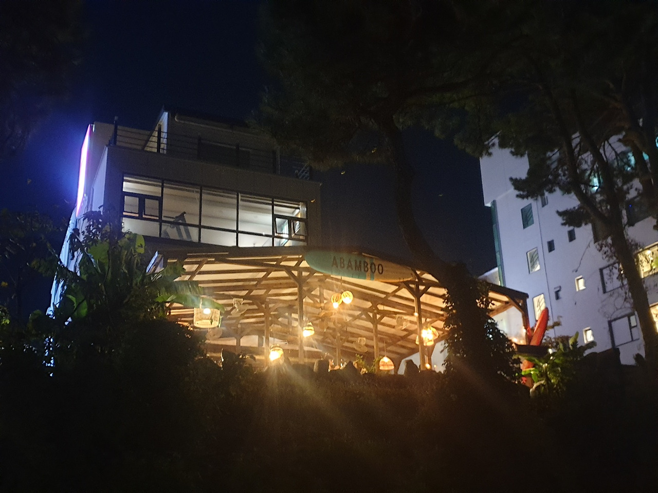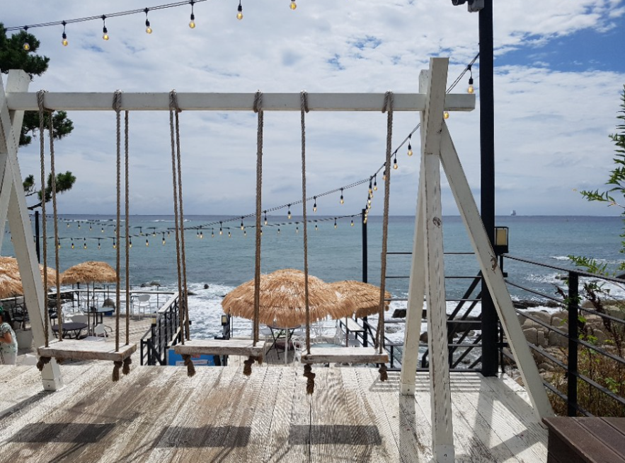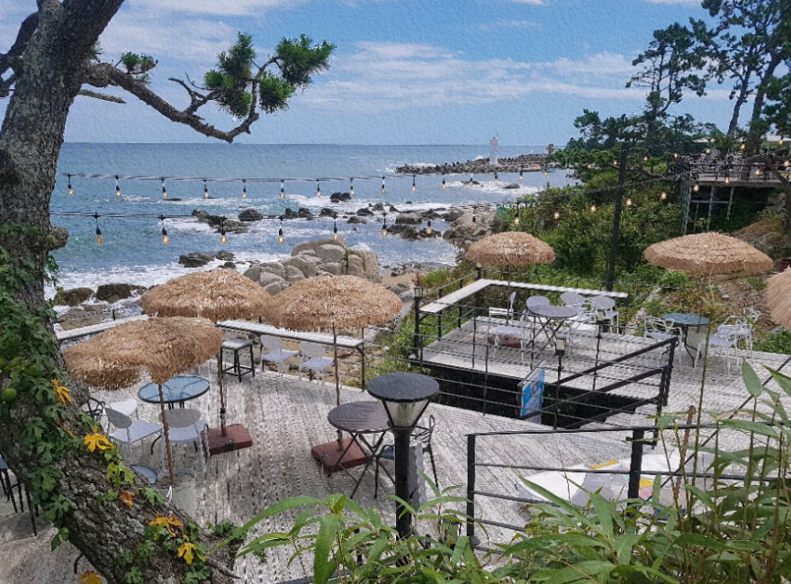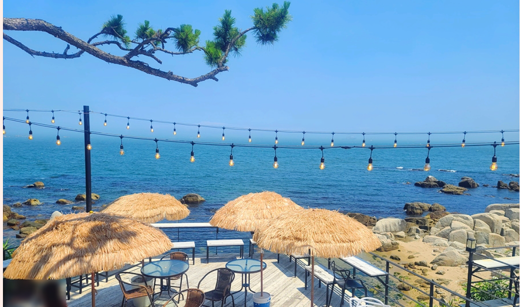 야외에서 해물라면도 맛볼 수 있는 울산 간절곶의 한 카페는 발리에서 볼 수 있을 법한 풍경을 자아낸다.