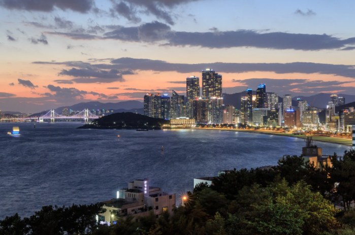 달맞이 고개에서의 광안대교와 누리마루 및 해운대 해수욕장 뷰