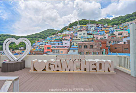 10) 부산 감천문화 마을 (=이탈리아 포지타노)과 부네치아 (장림포구 = 이탈리아 베네치아) : 포지타노의 깎아내리는 듯한 산기슭에 옹기종기 자리 잡은 집들의 구성이 남부럽지 않을 듯한 뷰를 자랑하는 감천 문화마을. 포지타노 같은 바다 뷰가 인접해 있지 않아 다소 아쉽다면, 근처 장림포구로 이동해 부네치아를 맛보면 된다. 알록달록 색깔로 감성을 자극하는 장림포구는 사진 명소이다.