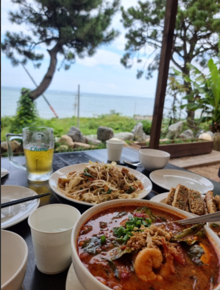(2) 태국 뷰 송정: 웨이팅이 기본인 핫플레이스 식당. 웨이팅 하는 입구에서부터 코를 자극하는 향신료 향으로 태국 여행의 향수를 불러일으키고 식당에 들어서면 눈에 들어오는 이국적인 인테리어부터 태국 느낌이 물씬 난다. 캐나다, 미국 뉴욕, 서울의 이태원, 태국 현지에서 모두 똥얌국을 먹어보았는데, 여행에 대한 오랜 갈망 탓인지 매콤 상큼한 이 맛에 오랜 시간 굶주린 탓이었는지도 모르겠지만, 이곳 똥얌국 쌀국수가 가장 내 입맛에 잘 맞았다. 향신료를 많이 썼지만, 한국인이 먹기에도 부담스럽지 않은 맛. 동남아 여행 가면 향신료 때문에 항상 고생하던 같이 간 친한 동생도 요 몇 달새 먹어 본 음식 중 단연 최고였다 이야기한다. 이국적인 느낌과 음식만으로도 여행을 떠나온 듯한 느낌을 줄 수 있는 곳이면서, 일단 음식을 먹어보면 그 많은 웨이팅이 납득 가는 곳. 웨이팅이란 지겨운 기다림이기도 하지만 동시에 일단 실패 없는 기다림일 것을 보장하기도 한다.