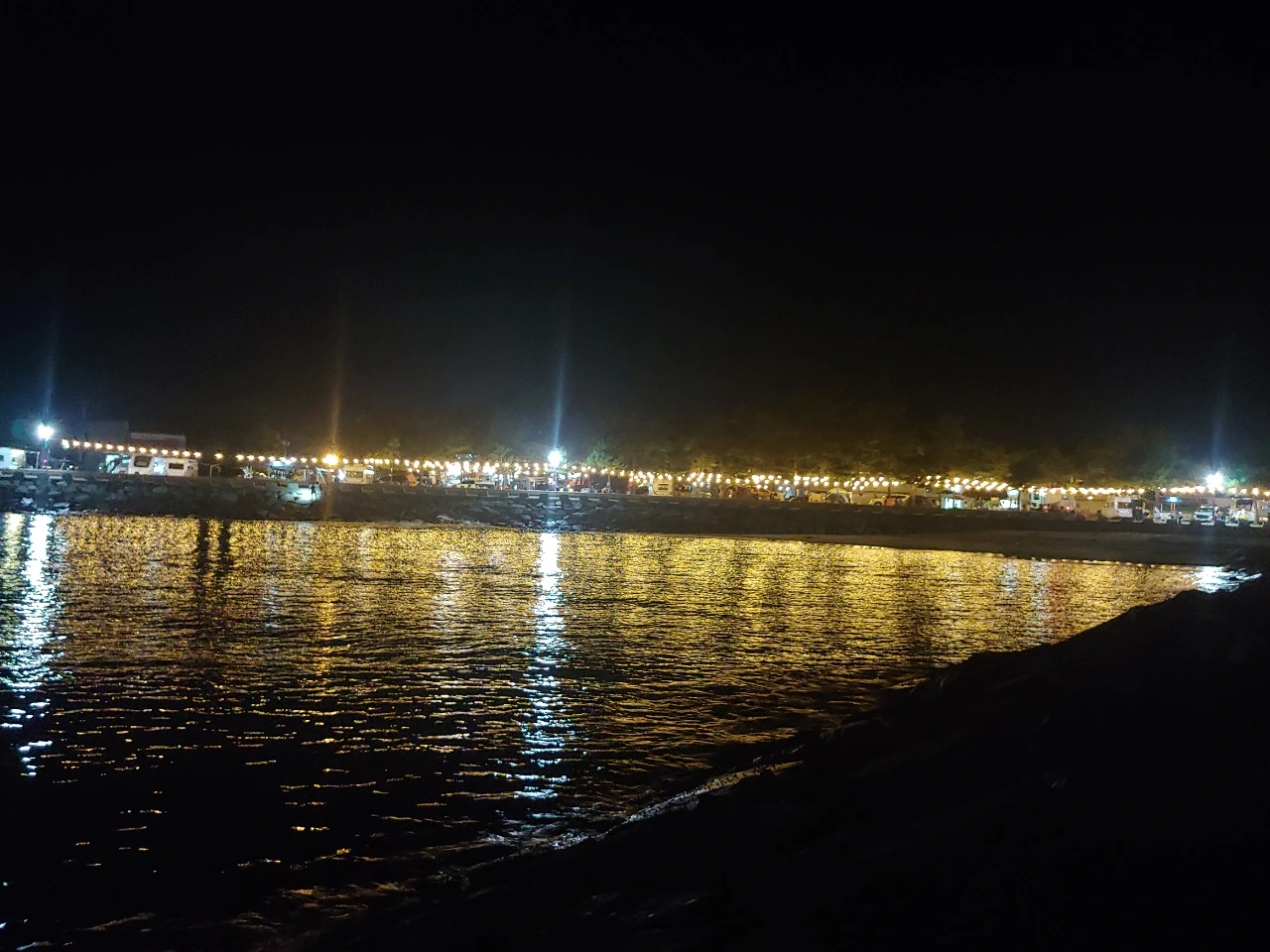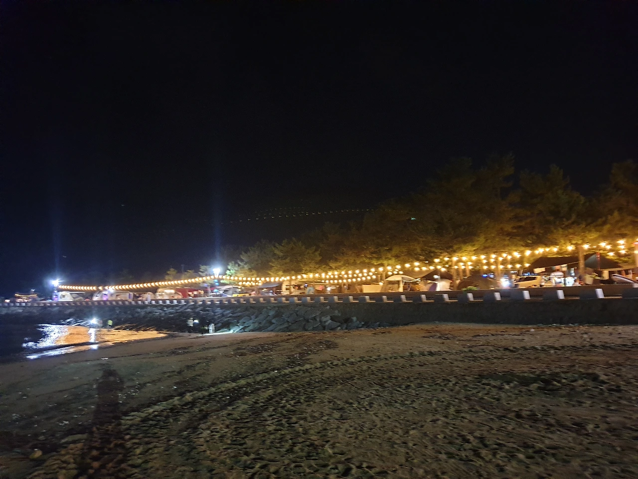 (3) 상주해수욕장 야경 = 동남아 야시장: 상주해수욕장은 밤이 되면 전구 하나만으로도 언뜻 동남아 야시장 느낌으로 변신한다. 곳곳에서 불꽃놀이 폭죽 소리도 들려온다.
