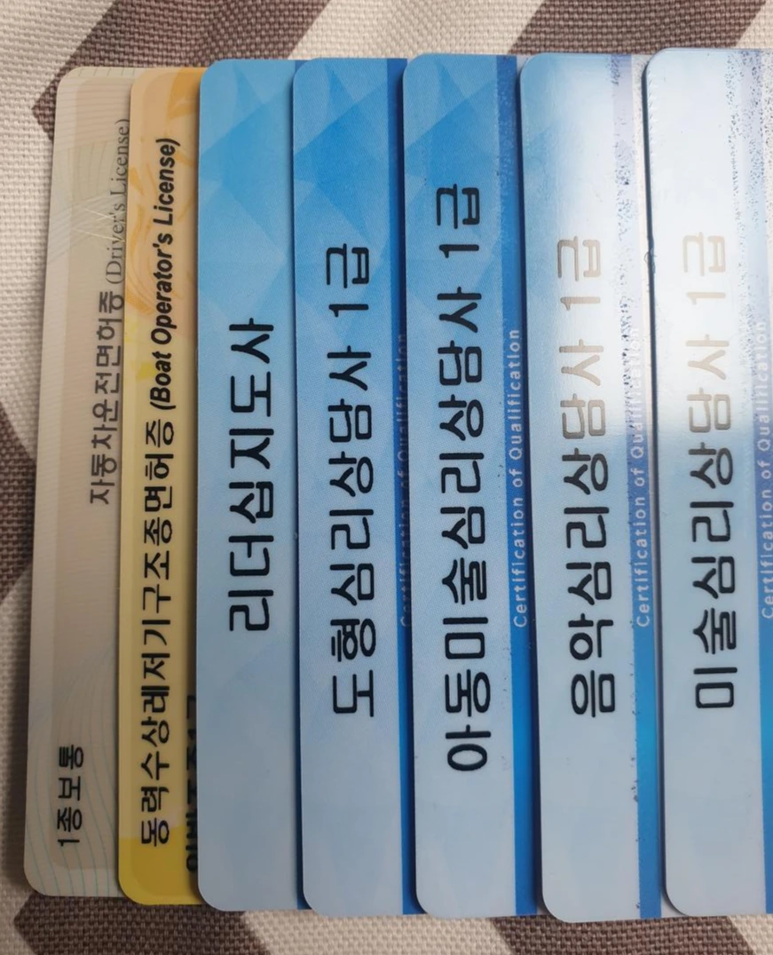 대중없는 나의 자격증 목록에서 그래도 나름 맥락이란 걸 눈 씻고 찾아보면 주로 심리상담과 연결고리가 있다는 것이다. 나는 아이들을 좋아하는 편이라, 평소 아동 교육에 관심이 많은 편이었다. 아이들은 어른보다 상처나 트라우마를 말로 표현하는 것이 서툴고 힘들다. 그래서 음악, 미술, 도형 등 친숙한 것으로부터 아이들의 심리를 읽고 상처 받은 감정을 표출하는 것을 도와줌으로 상처를 치유하는 과정을 겪도록 돕는 것이다. 그래서 내가 나중에 아이를 낳는다면 아이들이 미처 언어로 전달하지 못하고 무의식 중에 나오는 생각들을 읽을 필요가 있다는 생각에 관련 각종 심리상담사를 획득하게 되었다.