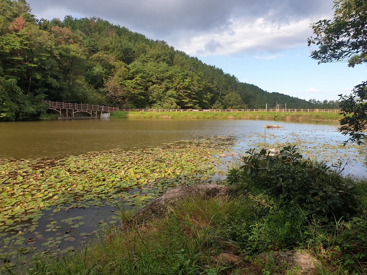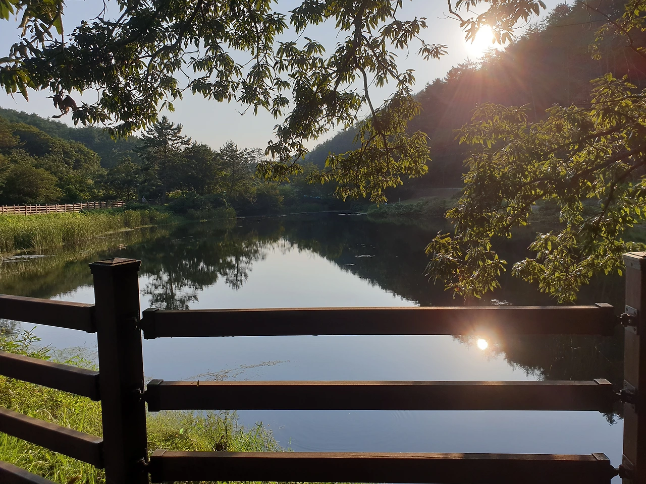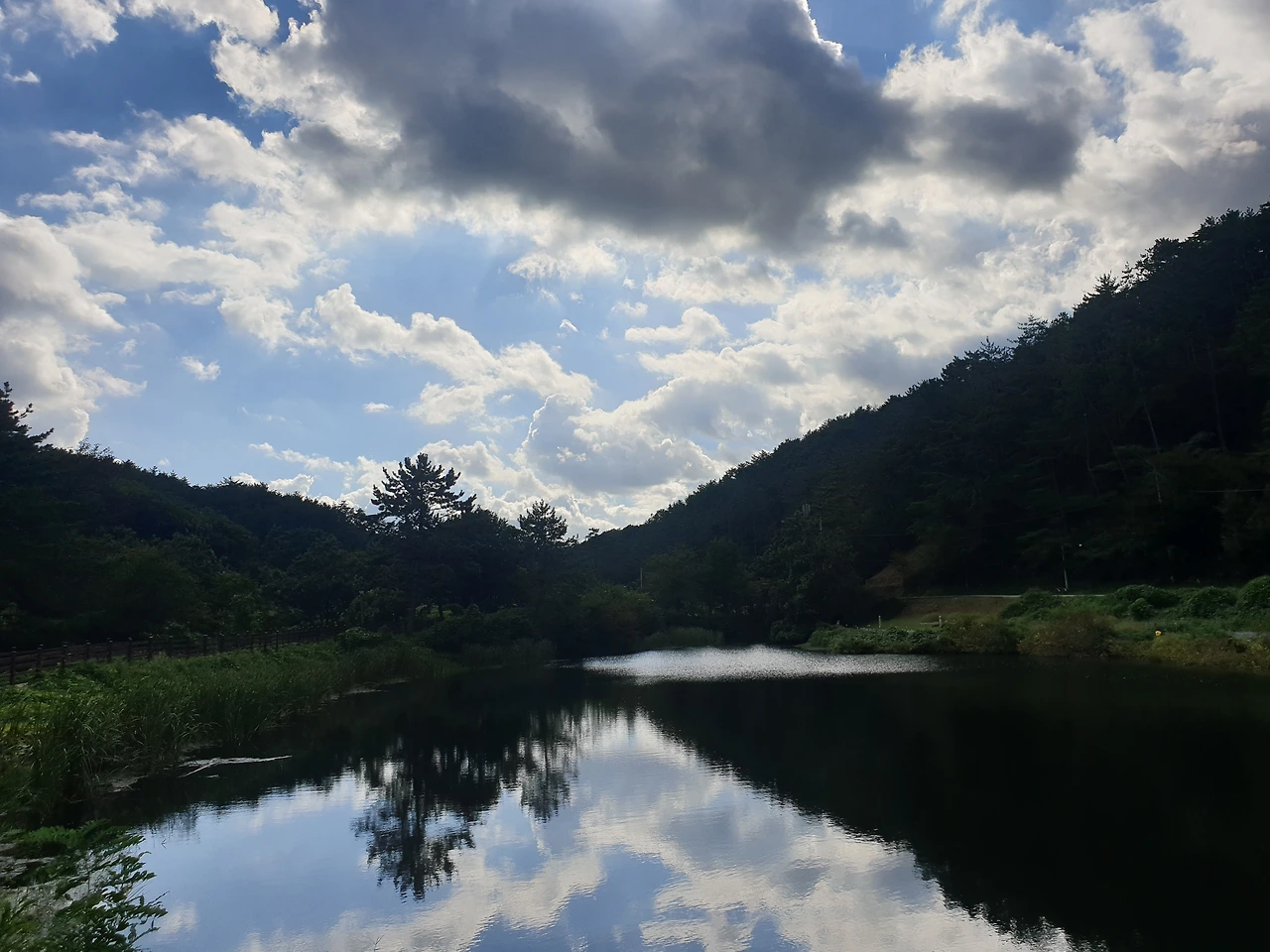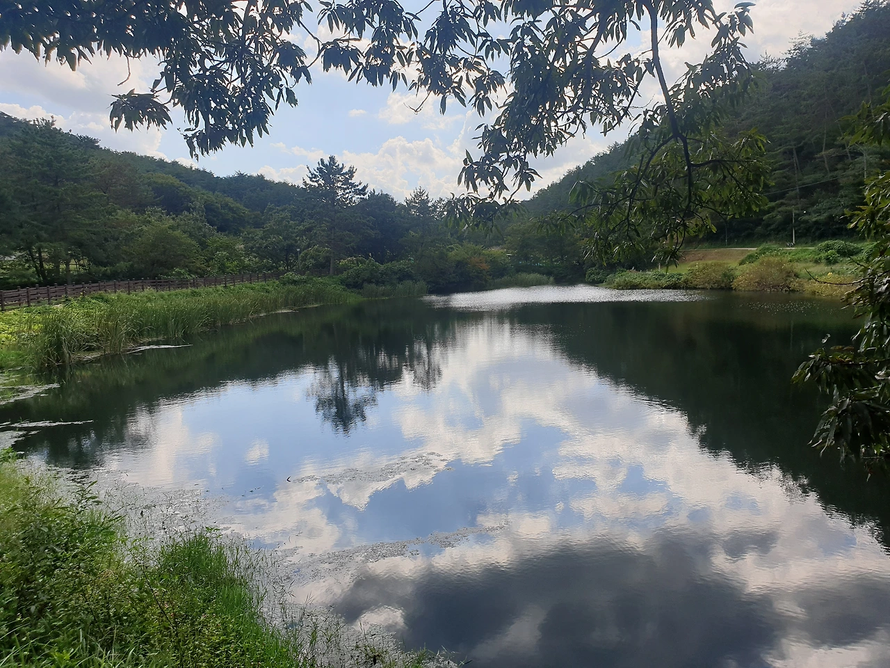 경산 반곡지가 여기 있었나 싶은 하늘을 거울삼아 비춰주는 예쁜 저수지가 있다. 이보다 고운 스케치북이 있을까 싶을 정도로 자연의 물감을 곱게 풀어 산과 하늘을 데칼코마니처럼 그려 넣은 듯한 저수지다. 여기까지 닿는데 느린 내 걸음으로 10~15분 정도 소요된다. 한창 아프던 겨울의 끝자락에는 이 짧은 거리의 저수지까지 걸어오려다 그만 오른쪽 다리가 아파와 이내 저수지 구경도 못한 채 포기하고 돌아간 적도 많았다. 겨우내 밖에만 나가도 추위에 어깨가 움츠려 들어 그런지 목, 어깨가 아려와 한참 아픔으로 고생한 기억에 나는 지금도 겨울이 다가오고 있음이 두렵다. 그래서 였을까. 나는 항상 이 저수지까지만 돌고 정자가 보이면 다시 발길을 되돌려 집으로 향한다.