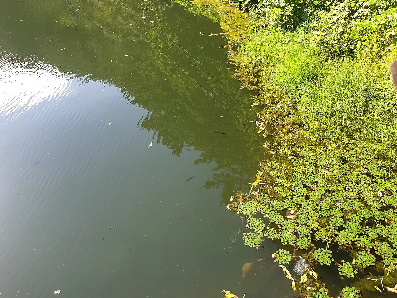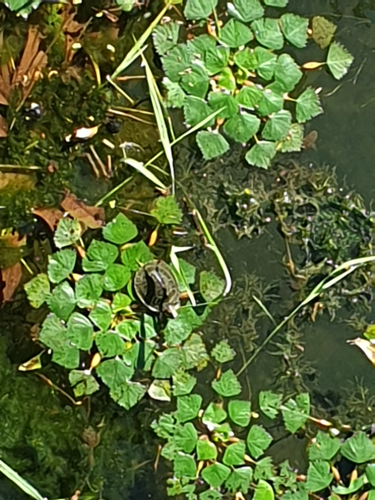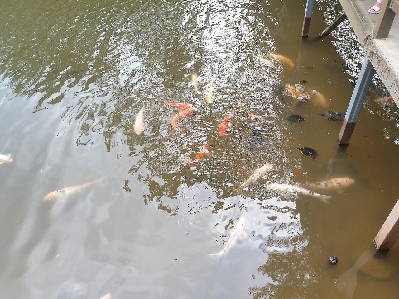 벤치도 앉아보았다가, 처음 보는 풍경들을 찬찬히 훑어가며 천천히 걷다 보니 큰 저수지는 생각보다 가까이 있었다. 저수지는 아이들 놀이터나 어르신들 운동기구 화장실 테이블과 벤치, 테니스, 배드민턴 네트 등 편의시설이 꽤 잘 되어있다. 자라의 태닝 포인트는 볼 때마다 항상 같은 바위다. 좋은 햇살을 알아보는 건 사람이나 동물이나 매한가진가보다. 놀이터 부근에서 한 아이가 잉어와 자라에게 먹이를 주고 있자니 물에 숨어 있는 줄도 몰랐던 잉어 떼와 자라 떼들이 얼굴을 빼꼼히 내밀어 존재감을 부각한다.