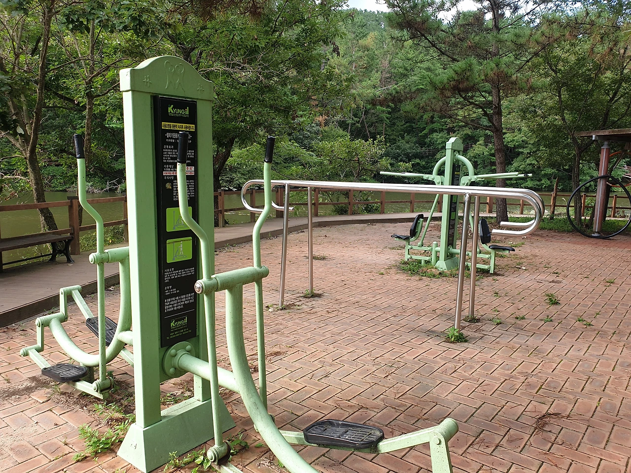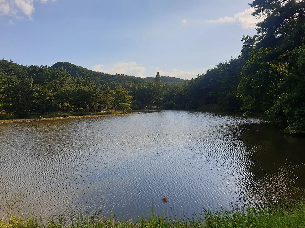 그래서 나는 항상 이 저수지 이상을 나아가 보지 않아서 그다음 길은 무엇으로 이어지는지 모른다. 카페 가는 길을 차로 몇 번 이동하며 지나가면서 돌아본 큰 저수지가 하나 더 있다는 것 정도만 안다. 이 작은 저수지는 벼룩인 나에게 언제나 유리천장과도 같았다. 하지만 오늘 청아한 하늘과 청량한 날씨가 내게 용기를 북돋아, 곧 예정된 해양스포츠 일정과 복직을 앞두고 본격적으로 체력을 끌어올려야겠다는 새롭게 끓어오르는 의지로 유리천장을 한번 뛰어넘어보자 결심했다.