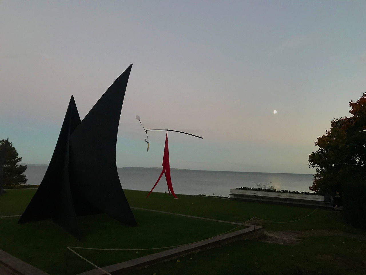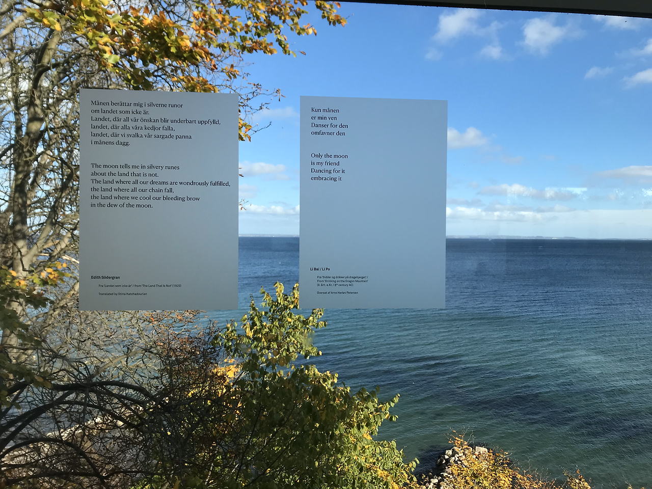 갑자기 눈 앞에 펼쳐진 깊고 차가운 북해의 바다, 그 검푸른 결 위로 느껴지는 바람, 점점이 흘러가는 흰 구름과 배들, 멀리 보이는 스웨덴 땅... 바다 건너 풍경은 늘 떠나온 자리를 생각나게 한다. 작품을 보며 상상 속에 빠져들었던 마음이 현실로, 그리움으로 바뀌는 순간. 마침 미술관에는 달을 주제로 한 전시가 열리고 있었다. 오래 전부터 달은 동경의 대상, 잡을 수 없는 그리움이었고, 그 짙은 마음을 노래한 시들이 저 바다를 배경으로 걸려 있었다. 이보다 더 강력한 서사가 또 있을까.